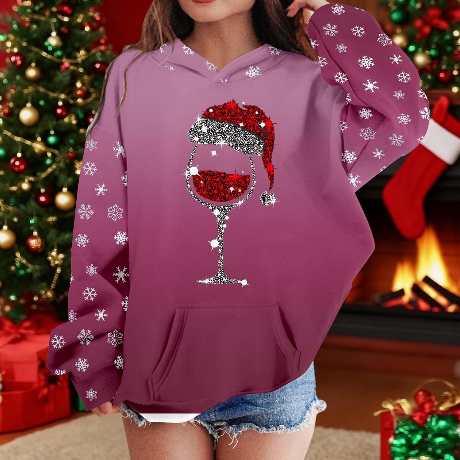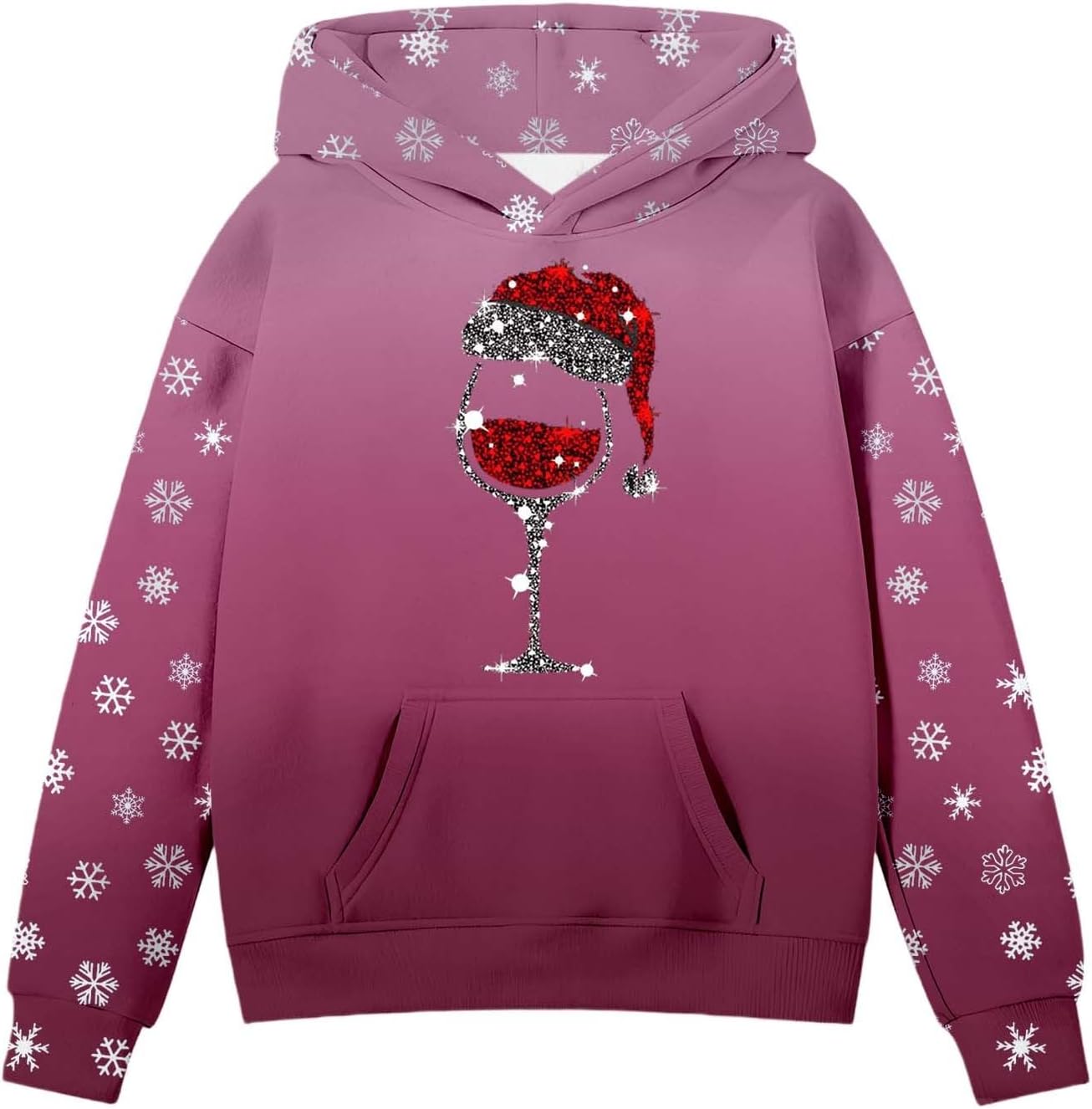 Generico Maglione natalizio per bambini a maniche lunghe con simpatica stampa animalier Felpa con cappuccio ampia e comoda Felpa elegante casual quotidiana Felpa per la scuola dei bambini