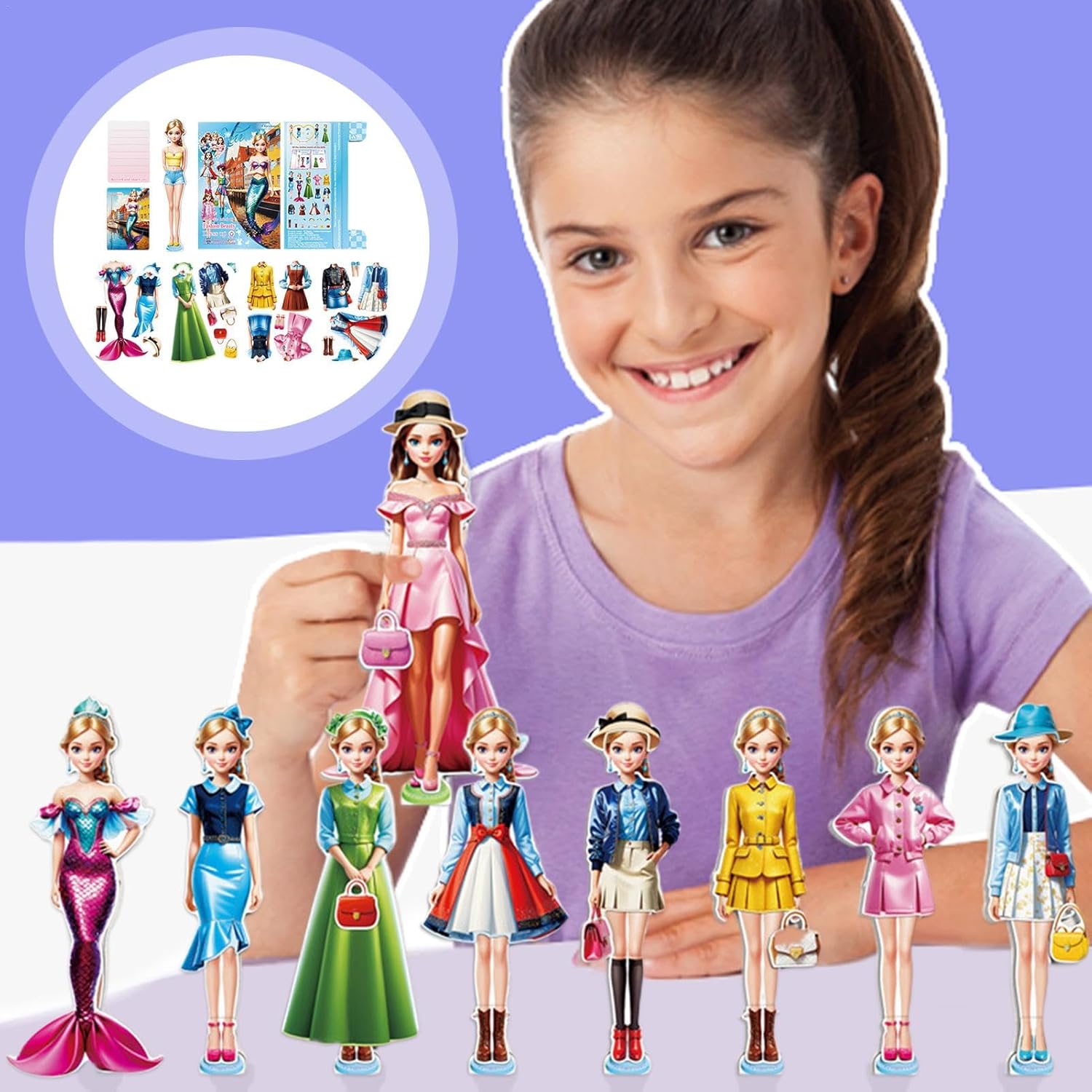 Interactive Dress-Up Fun: This magnetic paper doll set lets children explore creativity by dressing up magnetic dolls with various outfits and accessories Ideal for hours of engaging and imaginative play at home or the go Educational and Developmental: This toy encourages fine motor skills, hand-eye coordination, and creativity in young children as they mix and match different outfits for their princess dolls Perfect for early childhood learning and development Portable and Travel-Friendly: Packaged in a convenient, compact book form, this magnetic dress-up set is perfect for travel activities Keep kids entertained road trips, plane rides, or even at restaurants Durabled and Safe for : Made from high-quality materials with smooth edges, this magnetic dress-up game is safe for young children The magnets are strong enough to stay in place but easy to move and reposition for Girls: This magnetic dress-up set is a wonderful gift for birthdays, holidays, or any special occasion A charming addition to any girl’s toy collection that promises fun, learning, and endless creativity