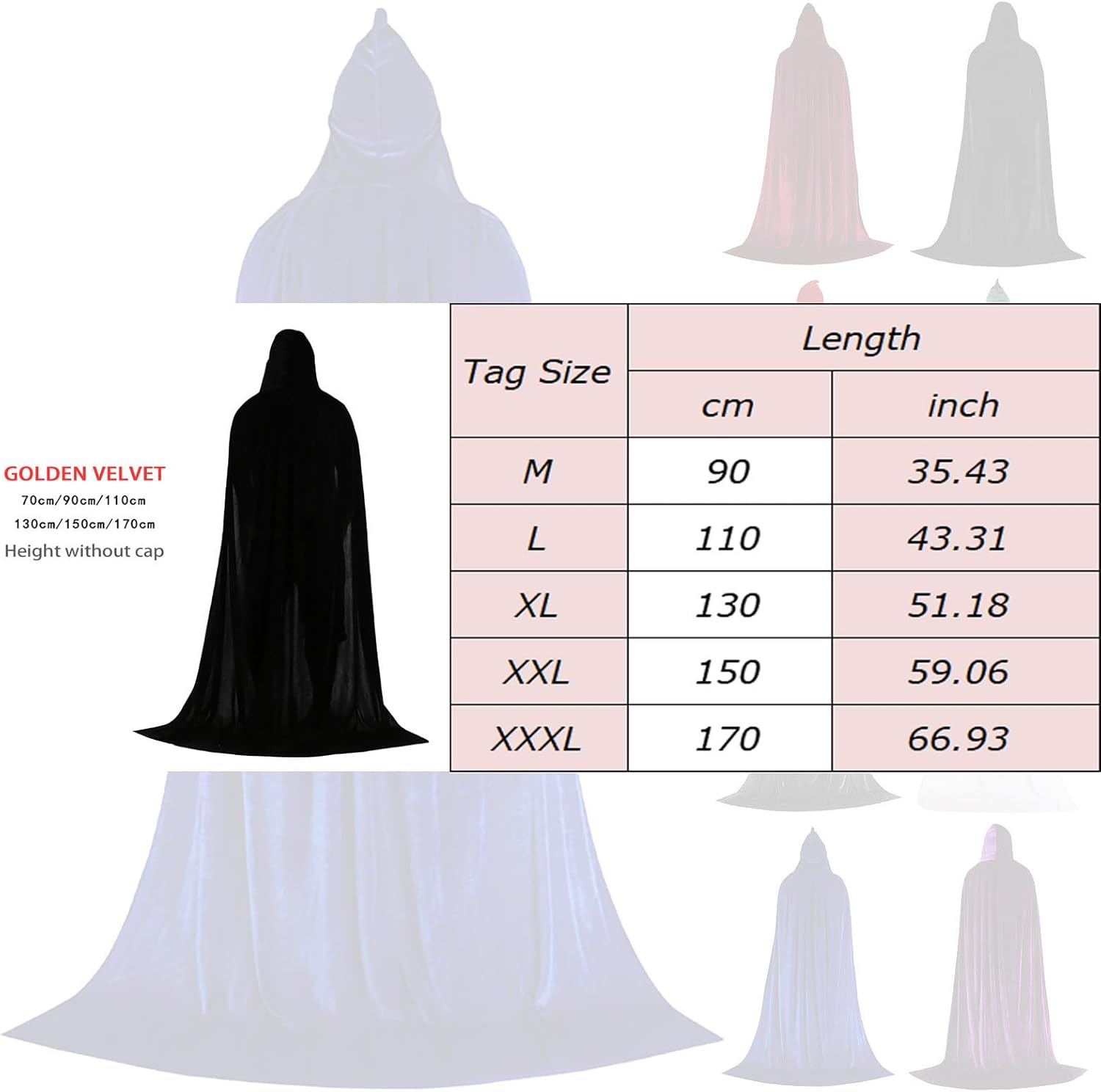 VELLUTO DI ALTA QUALITÀ: il mantello è realizzato in un tessuto molto piacevole e morbido. Il tessuto è sottile e luccicante quando lo proteggi dalla luce, ma quando viene indossato è completamente opaco e ti tiene caldo. CADUTA LUNGHEZZA: vedere le dimensioni nelle immagini per riferimento. Se preferisci un mantello che cade a terra, scegli la dimensione consigliata nella tabella delle taglie. Se preferisci un mantello al ginocchio, puoi scegliere la taglia più piccola di quella consigliata. CRAVATTA RINFORZATA: le fascette sono rinforzate e abbastanza lunghe da lasciare abbastanza spazio per altri elementi del costume. Il cappuccio è abbastanza grande da poterlo tirare in profondità nel viso. LAVABILE SENZA DEFORMAZIONE: lavare a mano e mantello sembra sempre lo stesso di prima e si sente meglio. VAMPIRE O MAGICIAN CAPE: perfetto per Carnevale, Halloween, Natale, un ballo in maschera, vacanze e così via.