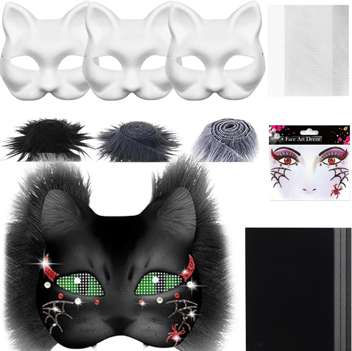 Generico Maschera Gatto Bianco | Kit Materiali per Maschera,Prodotto per Costumi con Mesh e Feltro per Creazioni Fai Da Te Donne Uomini Feste Carnevale Masquerade
