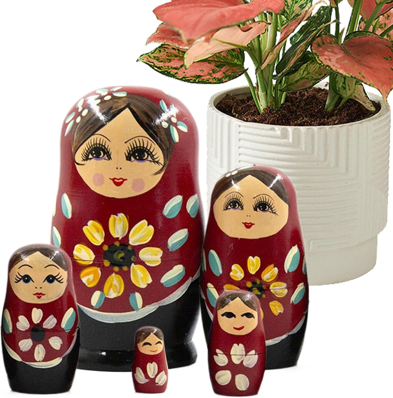 Opzioni espositive adattabili: Si abbinano con eleganza a zone come la cameretta, la camera adulti, l'ingresso, il salone, il centrotavola e feste, il o le mensole decorative, donando carattere a ogni spazio Decorazione Artistica per la Casa: Queste matriosche presentano dettagli dipinti a mano, una struttura annidata multistrato e il fascino senza 'arte folk, ideali per arricchire l'estetica degli interni con un tocco unico e artistico Arte collezionabile dettagliata: Motivi intricati e brillanti, esaltati da una lucentezza uniforme e stratificazioni di lacca, trasformano queste matriosche in pezzi artistici perfetti per aggiungere carattere agli spazi e conservare valore nel Designo artistico da esterno: Unisce il fascino artistico a una forma compatta e pratica, permettendo di trasportare e esporre facilmente le matriosche in qualsiasi ambiente outdoor, condividendo la gioia di queste bambole in modo coinvolgente e senza sforzo Attività genitore figlio: Combina divertimento ed educazione sfidando gli utenti a smontare e riassemblare le matriosche russe, migliorando il pensiero logico e la coordinazione occhio-mano mentre favorisce un'interazione significativa tra genitori e figli senza sforzo