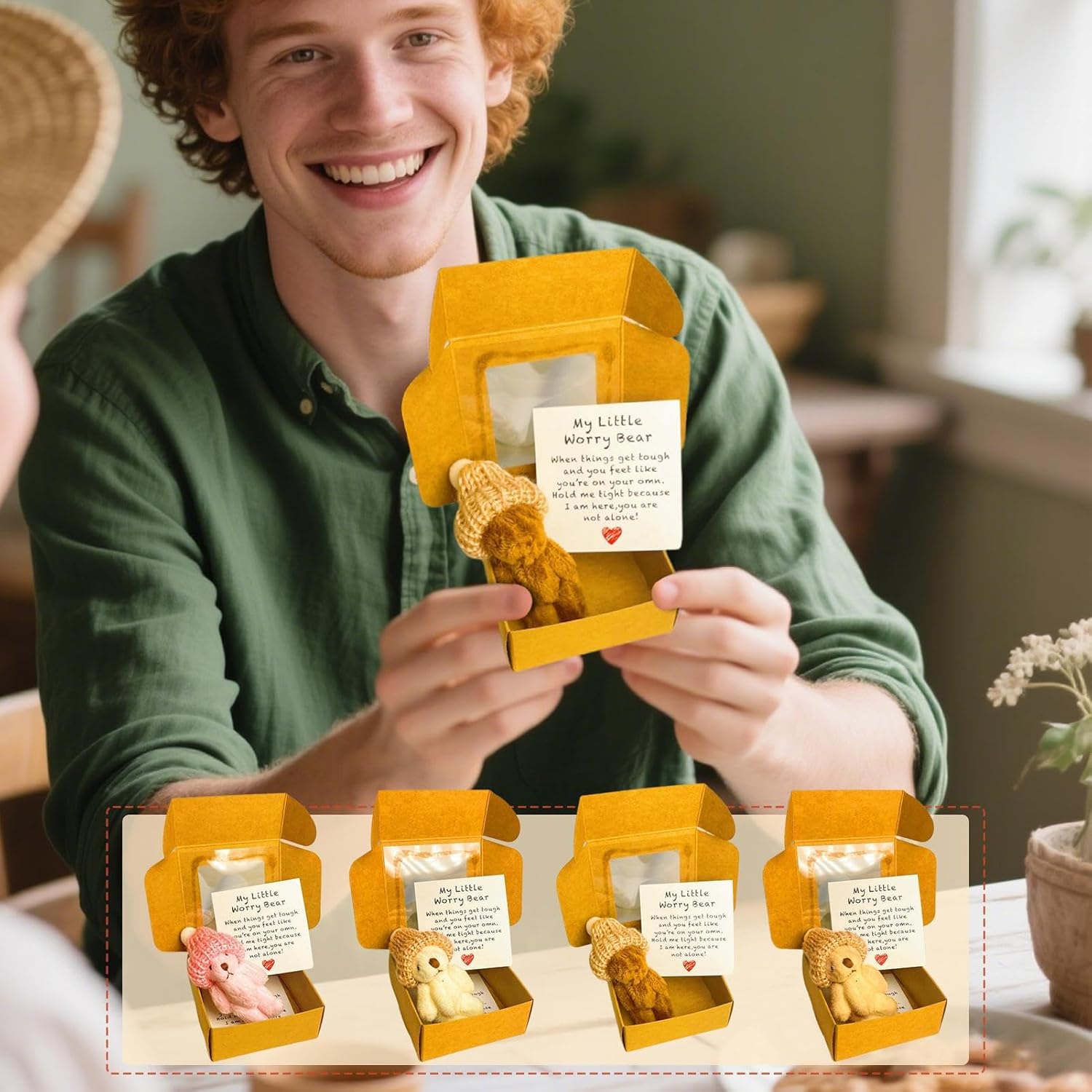 Condividi con la famiglia: questo orsacchiotto in una scatola funge da soluzione ideale per la presentazione delle vacanze combinando l'emozione dell'unboxing con un design premuroso, creando momenti memorabili durante il compleanno o altre occasioni speciali attraverso la sua presentazione pronta a presente elaborata per adattarsi a vari eventi di celebrazione. Rilassamento di rottura di lavoro: realizzato con un design dalla consistenza morbida, il piccolo orso in una scatola offre sensazioni tattili, agendo come un giocattolo calmante che sostiene il relax durante gli intervalli di lavoro o mentre si esaurisce la notte Carte motivazionali della rivista: progettate come un pensiero di stile di vita positivo premuroso, la scatola di orsi con un cappello include set di carte di affermazione e carte motivazionali di riviste che incoraggiano l'ottimismo, perfetto per le persone amate che cercano ispirazione durante i tempi difficili Portabilità al suo meglio: con un piccolo orso in una scatola, questo lussuoso funge da mini giocattolo di comfort per alleviare lo stress dei viaggi e fornire sicurezza di viaggio, offrendo agli utenti un senso di tranquillità e tranquillità ogni volta che ne hanno più bisogno. Con una selezione di orsi di lusso, questo prodotto consente agli utenti di personalizzare il proprio spazio con variazioni colorate, rendendolo decorativo e funzionale per creare ambienti caldi e accoglienti.
