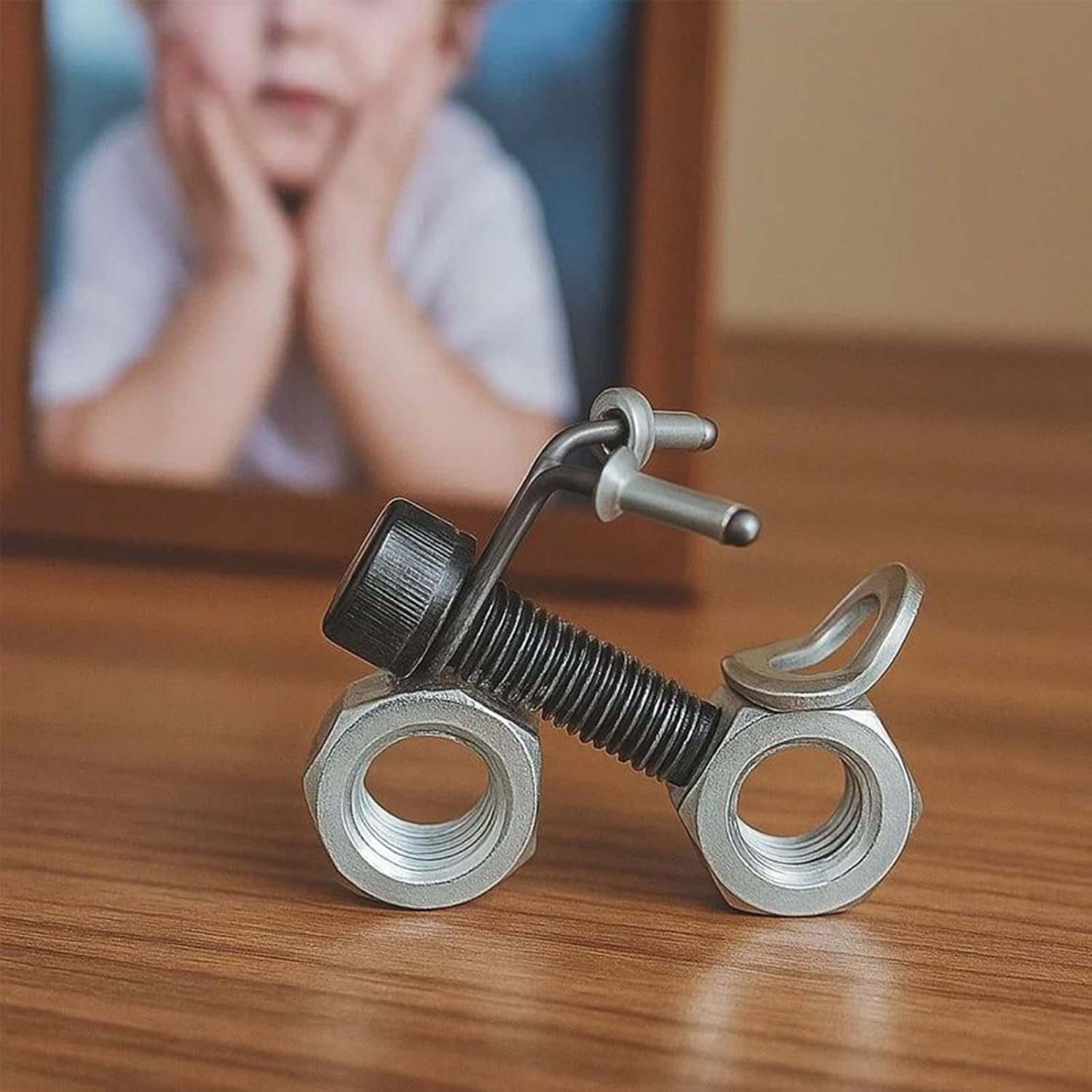 Pezzo da collezione antiscolorimento: Realizzato in modo esperto per prevenire lo scolorimento e resistere ai , questo modellino da collezione offre valore duraturo come articolo decorativo da esposizione con colori sempre vivaci Opzione Ispiratrice: per legami genitore-figlio ed appassionati di meccanica, questo modellino serve come regalo premuroso con una lavorazione dettagliata e un design classico che cattura lo spirito motociclistico Compatt o e Portatile: Le dimensioni ridotte di questo modellino di moto garantiscono un notevole risparmio di spazio, rendendolo facile da riporre, esporre e trasportare ovunque grazie alla sua praticità e mobilità, ideale per appassionati che cercano funzionalità e convenienza senza ingombro Riutilizzo artigianale di componenti: Realizzato con tecniche e materiali riproposti inclusi , dadi, bulloni e chiavi inglesi riciclati, garantisce un aspetto esclusivo e responsabilità ambientale nel design Decorazione perfetta: Un'aggiunta di gusto per qualsiasi spazio, questo modellino di moto permette il posizionamento versatile su scrivanie o librerie, creando un'atmosfera accogliente e raddoppiando come elemento decorativo raffinato per l'ambiente domestico