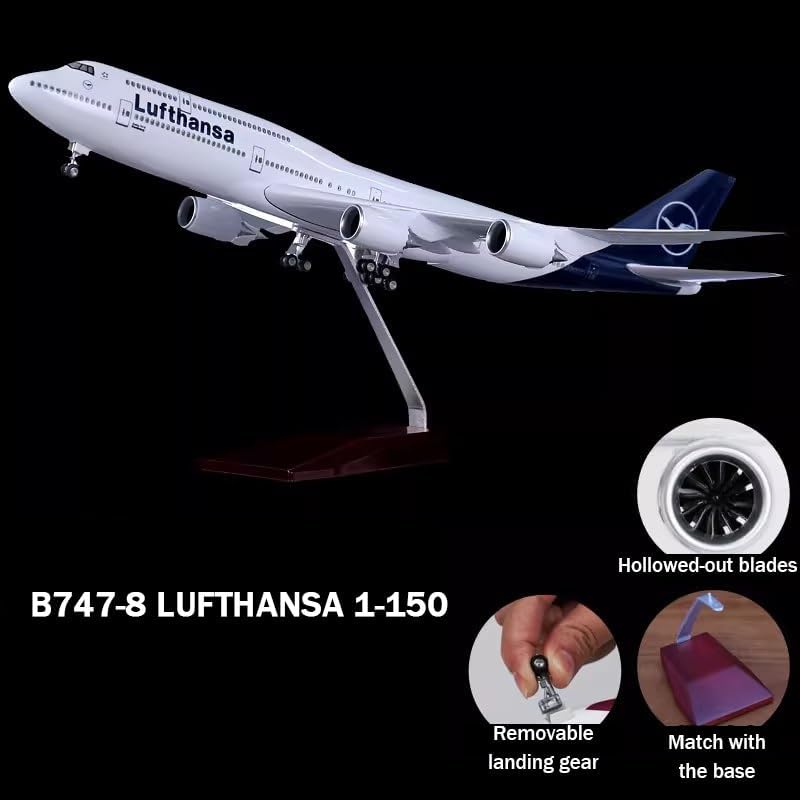 Dimensioni e design dettagliati: questo kit di modellismo aereo misura 47 cm di lunghezza, 45 cm di apertura alare e 18 cm di altezza, meticolosamente riprodotto in scala rispetto all'aereo B747-8 originale, il che lo rende uno straordinario pezzo da esposizione for qualsiasi appassionato di aviazione. Costruzione con materiali di alta qualità: realizzato in resina di alta qualità con una robusta base trapezoidale in legno e supporto in metallo, questo modello offre stabilità e durevolezza, dimostrando al contempo una squisita fattura. Utilizzo versatile: perfetto for l'arredamento dell'ufficio, la decorazione della casa o l'esposizione nei negozi; questo modello di aereo è anche un eccezionale regalo aziendale, un regalo di compleanno o una sorpresa for le vacanze, poiché riproduce i dettagli intricati che rispecchiano il vero aereo. Confezione elegante: ogni modello è confezionato in una scatola protettiva e dal design accattivante, che garantisce che il tuo oggetto da collezione arrivi in perfette condizioni, pronto for essere regalato o esposto. Dettagli autentici: la fusoliera e le ali sono realizzate in resina rinforzata, con linee morbide e una finitura realistica. Ogni dettaglio, dalle pale del motore ai colori della vernice, è realizzato con precisione for un effetto visivo senza pari.