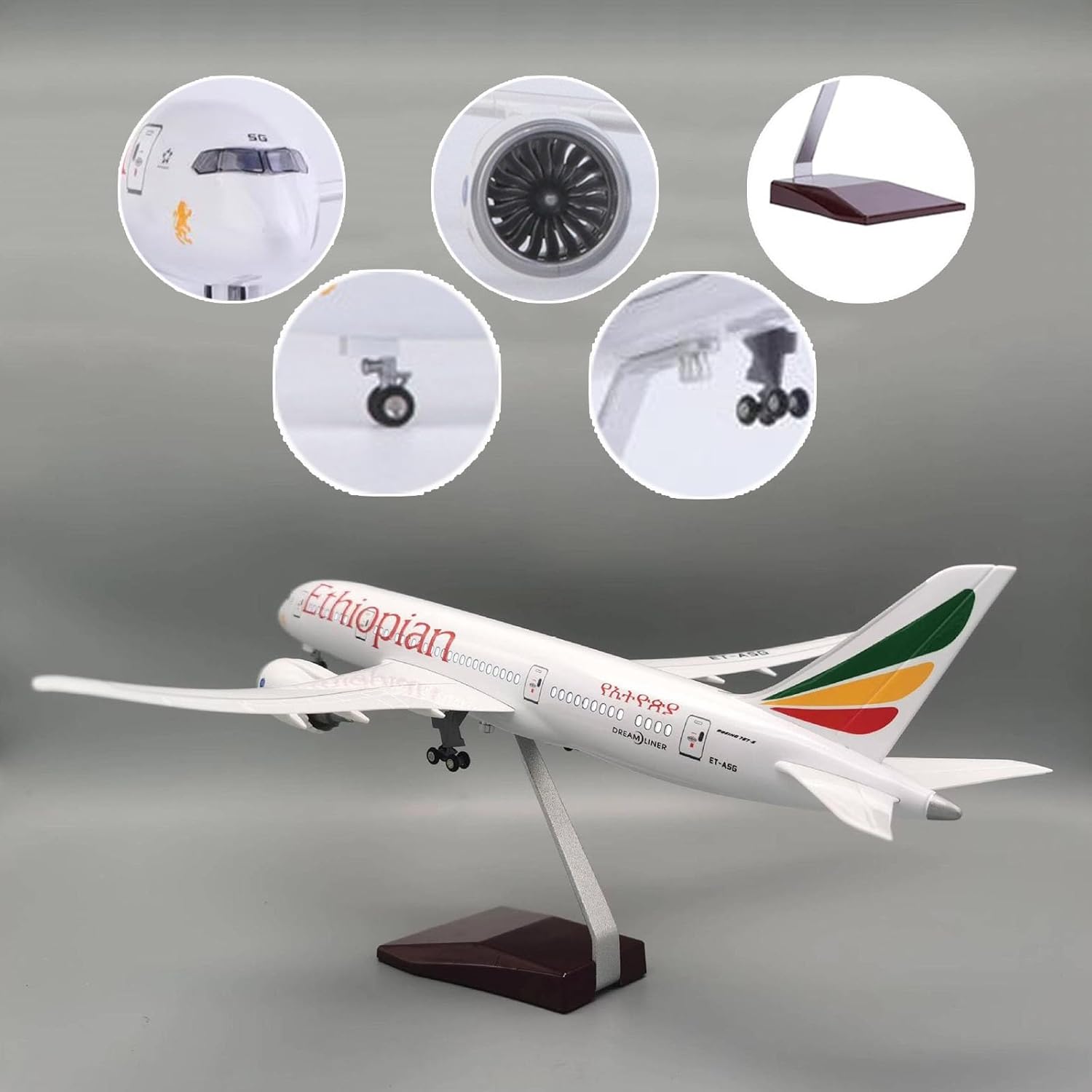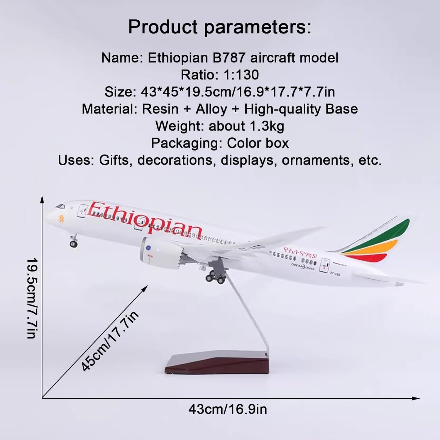 Aeroplano modello in scala realistico: modello di aereo a reazione Ethiopia B787 in scala 1:150 da 16,9 pollici con ruote, 16,9 x 17,7 x 7,7 pollici. Artigianato raffinato: il modello dell'aereo Ethiopian B787 adotta una fusoliera in resina di alta qualità, una base solida e una staffa in lega metallica. Il modello dell'aereo è molto aerodinamico. Inoltre, il colore della carrozzeria è ricco e mette in risalto la bellezza di molti dettagli. Modello di jet restaurato: modello di aereo Ethiopian B787 in scala 1:150, dimensioni: lunghezza dell'aereo (16,9 pollici), larghezza (17,7 pollici), base dell'aereo e altezza complessiva (7,7 pollici), peso circa 1 kg, la scala ridotta consente una migliore visualizzazione dei modelli di aerei in qualsiasi momento. Design semplice con fibbia: facile da montare e installare, basta inserire le ali nello slot for schede e utilizzare lo slot speciale assemblato for fissare la base e la fusoliera. L'installazione è molto semplice, rendendo la visualizzazione sul desktop più veloce e comoda. Stabile e altamente restaurato, è un'ottima scelta for chi ama collezionare modelli di aerei. Regalo da collezione: il modello di aereo è dotato di una base pronta for essere esposta, è una bella decorazione e un oggetto da collezione for l'ufficio e la casa ed è un regalo perfetto for gli appassionati di aviazione e i collezionisti.