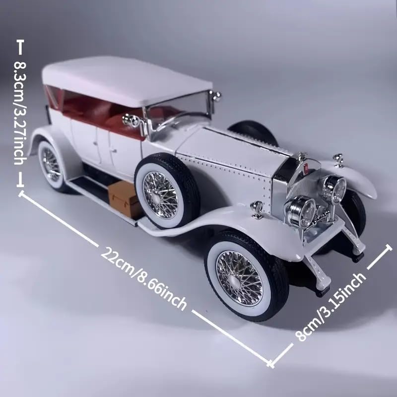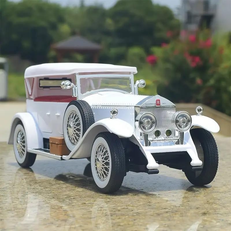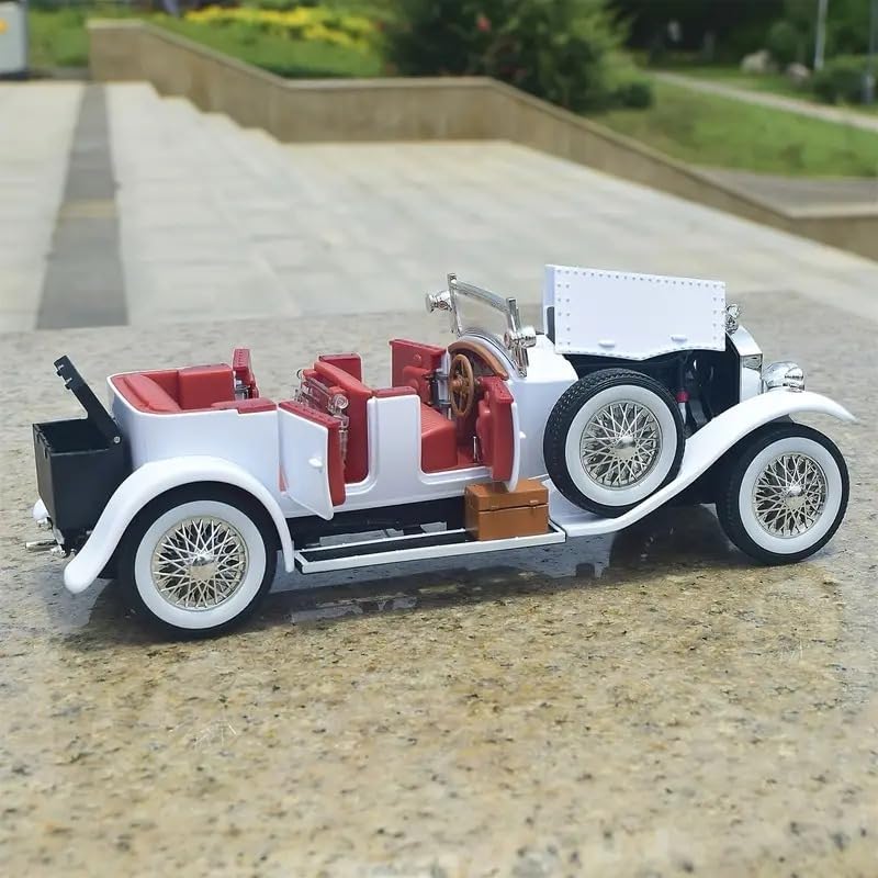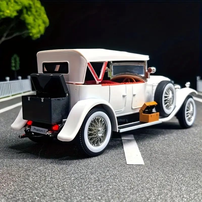 DESIGN CLASSICO: Replica dettagliata della Rolls-Royce Phantom in scala 1:24, con elegante carrozzeria bordeaux e finiture dorate distintive DETTAGLI PREMIUM: Include elementi caratteristici come griglia cromata, fari dorati, ruote a raggi neri e capote convertibile nera QUALITÀ ARTIGIANALE: Modello da collezione con finiture meticolose, compresi dettagli interni ed esterni fedelmente riprodotti DIMENSIONI PRECISE: Dimensioni proporzionali in scala 1:24, perfetto per esposizione in vetrine o scaffali da collezione VALORE COLLEZIONABILE: pezzo da esposizione raffigurante un'icona del motorsport classico, ideale per collezionisti e appassionati