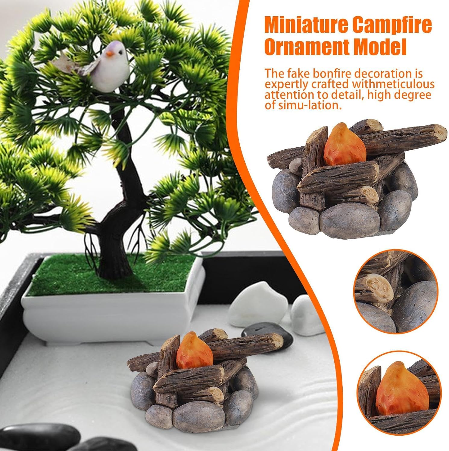 Costruzione affidabile: realizzato con un eccellente materiale in resina, il nostro fuoco in miniatura garantisce una durata sostenibile che può sopravvivere con difficili condizioni meteorologiche esterne. Non c'è bisogno di preoccuparsi dei causati da calore o acqua. Fidati della sua costruzione per il tuo prossimo soggiorno in campeggio. creativo: crea un'atmosfera di vacanza con un falò in miniatura. Approfitta del piacere del fai -da -te mentre fai le tue decorazioni uniche. Usalo per creare un confortevole per la tua scena invernale, un fuoco di gioia simulato per una festa in campeggio o un centro festivo. Lascia che la tua creatività risplenda con questo strumento di progetto fai -da -te essenziale. Atmosfera sensazionale di falò: solleva il tuo spazio con l'atmosfera sensazionale del nostro falò realistico. Questo squisito capolavoro in miniatura ha un talento artistico e attenzione ai dettagli eccezionali, creando un display mozzafiato che porta calore, comfort e fascino nel tuo ambiente in una cassaforte e seccatura. Aggiungi fascino al tuo spazio: porta calore e fascino nel tuo spazio con il nostro falò in miniatura. per migliorare la bellezza del tuo giardino, aggiungere un tocco festivo alle decorazioni per le vacanze o creare un'atmosfera invitante per le vacanze. Questo versatile ornamento si accompagna perfettamente con qualsiasi arredamento esterno o interno. Una vasta gamma di usi: questo versatile falò in miniatura aggiunge un tocco unico al tuo spazio e può essere utilizzato per più estremità, tra cui decorazioni per le vacanze, ornamenti da giardino e la creazione di .