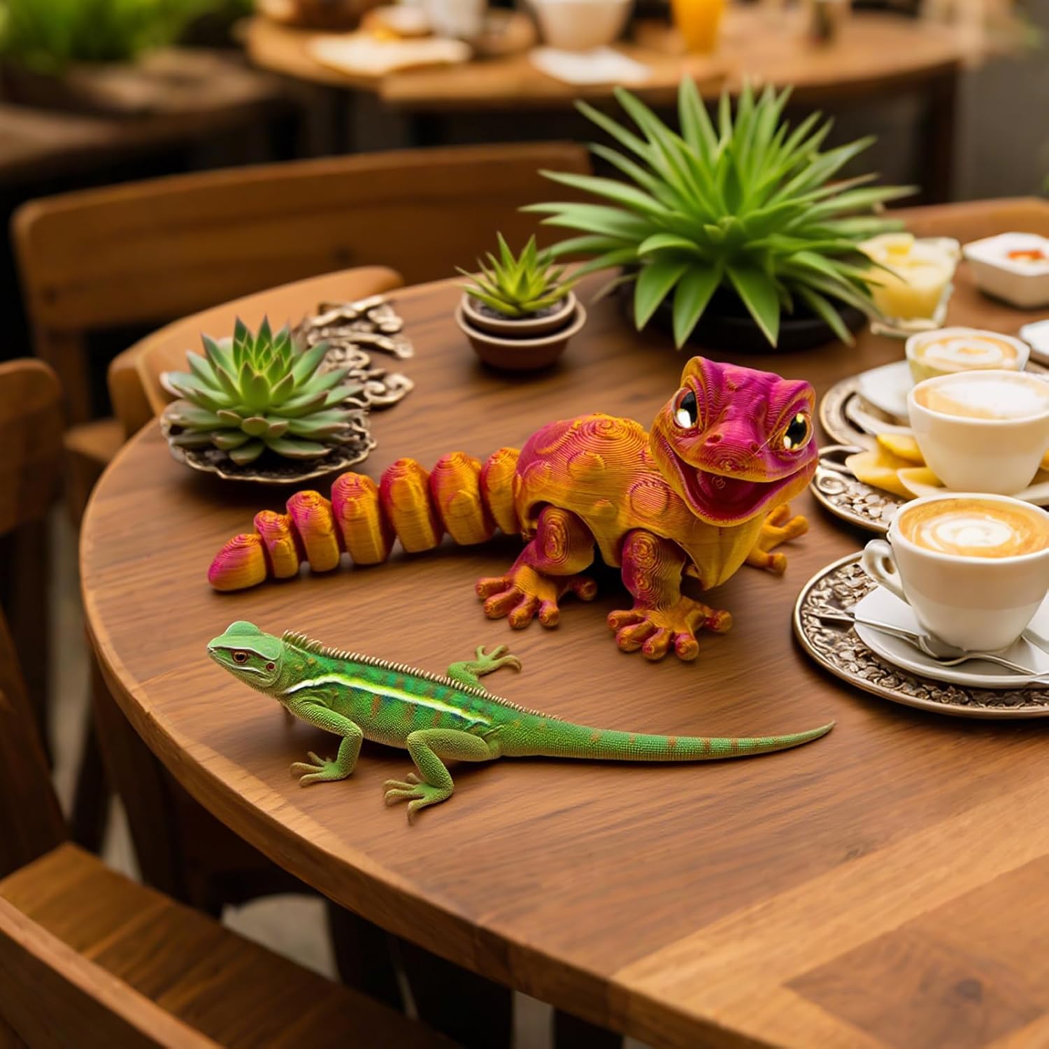 Effetto visivo radiante: Goditi il fascino di una lucentezza cangiante abbinata a un rivestimento ottico fotosensibile, offrendo un aspetto straordinario e accattivante da ogni angolazione di visuale Tocco Delicato: Questo modello di lucertola in stampa 3D offre un'esperienza tattile raffinata grazie alla tecnologia di stratificazione avanzata, che riproduce texture realistiche e dettagli degli , mentre le colazioni mobili stabilizzate garantiscono durabilità e flessibilità di posizionamento Display per Scaffale Ideale: Questo modello di lucertola stampato in 3D funge sia da decorazione compatta da scrivania che da oggetto da collezione, aggiungendo un tocco di design giocoso a spazi lavorativi o zone living con le sue forme dinamiche e accattivanti Flessibilità posizionamento: Grazie alla possibilità di disporre gli esemplari singolarmente o in gruppo, questo modello incentiva la creatività attraverso composizioni interattive e la realizzazione di mini diorami ecologici dinamici e suggestivi per appassionati e collezionisti Scultura Animale Autentica: Unisce gianato intagliato 3D e riproduzione di pose dinamiche, enfatizzando un design occhi realistico per creare una presenza lucertola vivace e coinvolgente per uso decorativo o educativo