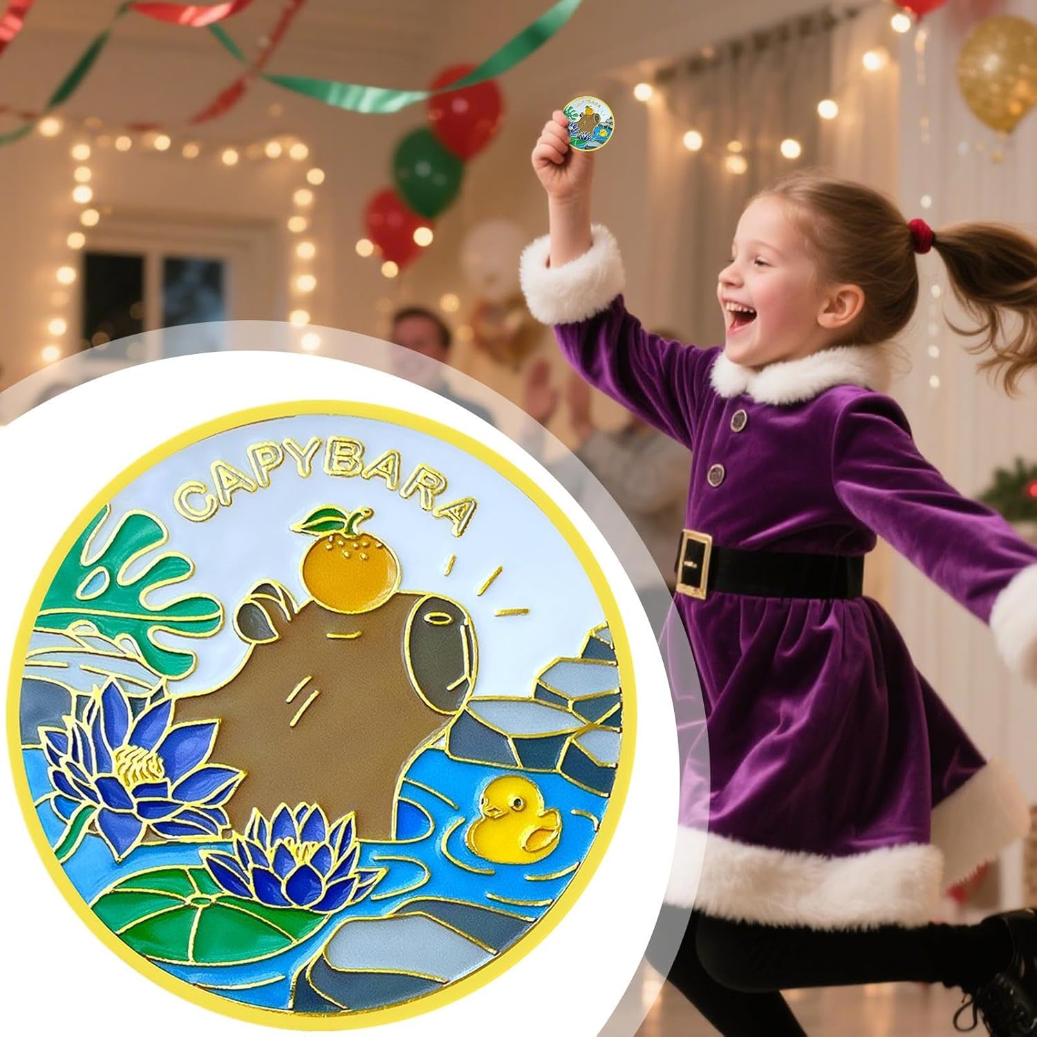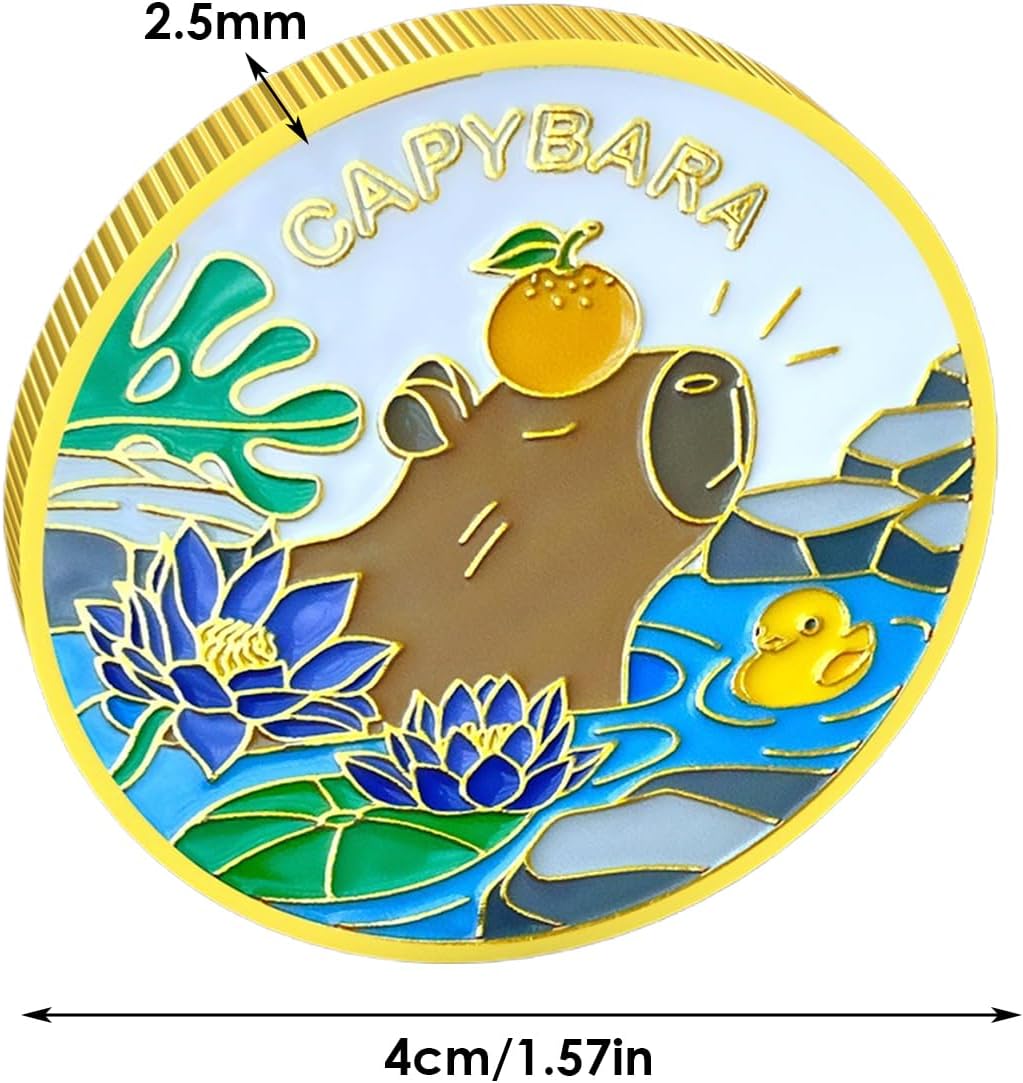 Stile Distintivo: Illustra un adorabile capibara in compagnia di un'durante il nuoto, incorniciato da elementi floreali e fogliame, arricchito dall'evidenza grafica del testo "CAPIBARA" come elemento centrale Struttura durevole: L'acciaiato trattamento anticorrosione combinato smalto ad alta resistenza crea un prodotto inalterabile che conserva peso originale e precisione dei rilievi per decenni Portabilità Assicurata: Grazie al diametro di 40 millimetri e spessore ridotto a 2,5 millimetri, la moneta si adatta a portafogli, custodie trasparenti o espositori da tavolo, diventando un oggetto da mostrare con orgoglio in ogni occasione Custodia acrilica trasparente: La protezione in acrilico ad alta trasparenza consente di ammirare tutti i dettagli della moneta, garantendo al conuna barriera efficace contro polvere e segni superficiali per preservarne lo splendore metallico Regalo emozionante: Esprimi gratitudine durante il Ringraziamento o festeggia compleanni con questa moneta commemorativa, un natalizio significativo per familiari e amici che conserva emozioni preziose e genera ricordi duraturi nel