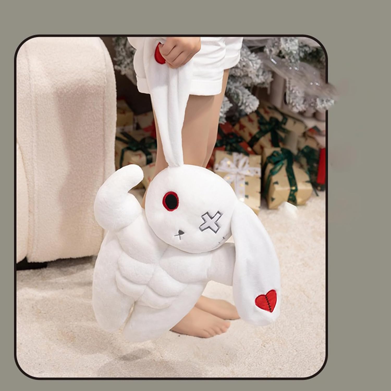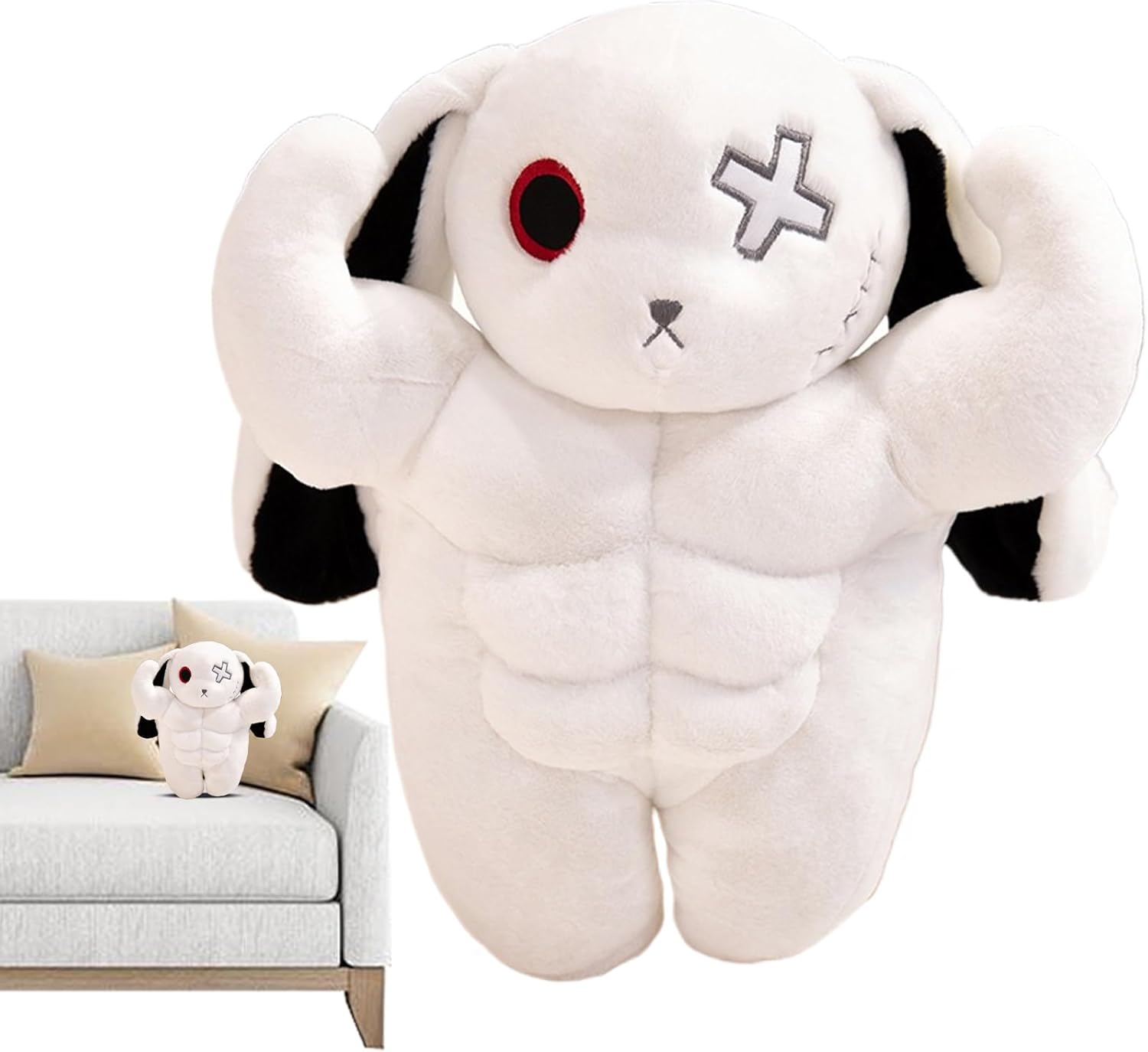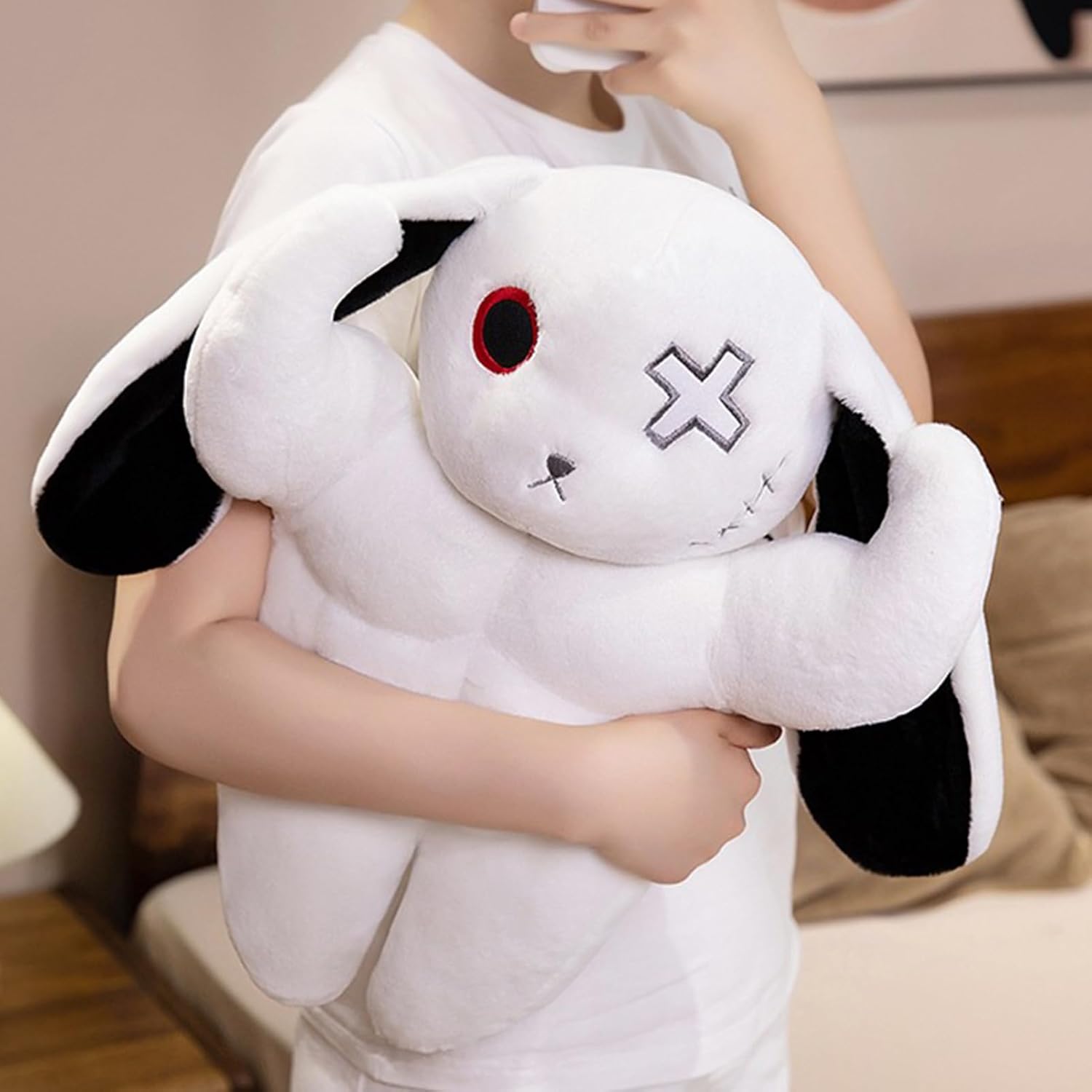 This muscle bunny plush toy combines a humorous and scary design with soft materials, making it a unique and huggable companion for bedtime, car rides, or lounging on the couch animal is perfect for adding warmth to your home decor Designed with exaggerated muscular arms and an intense expression, this rabbit plush adds personality and playful energy to bedrooms, dorm rooms, or setups for kids, boys, girls, men, or women, or as a decorative throw pillow, it blend The plush stands upright and doubles as a soft pillow or desk buddy, perfect for decorating shelves, bedsides, or desktops with a quirky, eye-catching presence seamlessly into bedrooms, living rooms, meeting rooms, and more Soft to the touch yet visually bold, this doll makes a fun surprise gift for kids, teens, or adults during holidays, birthdays, or special occasions like Christmas or Halloween Take it along while traveling, or use it to improv Lightweight and portable, the bunny plush fits easily in backpacks or on travel seats, offering comfort, conversation-starting style, and wherever you go holidays like Christmas, Easter, and Children's Day