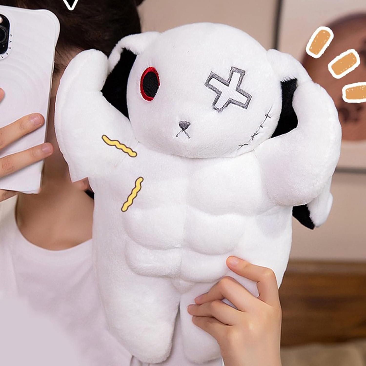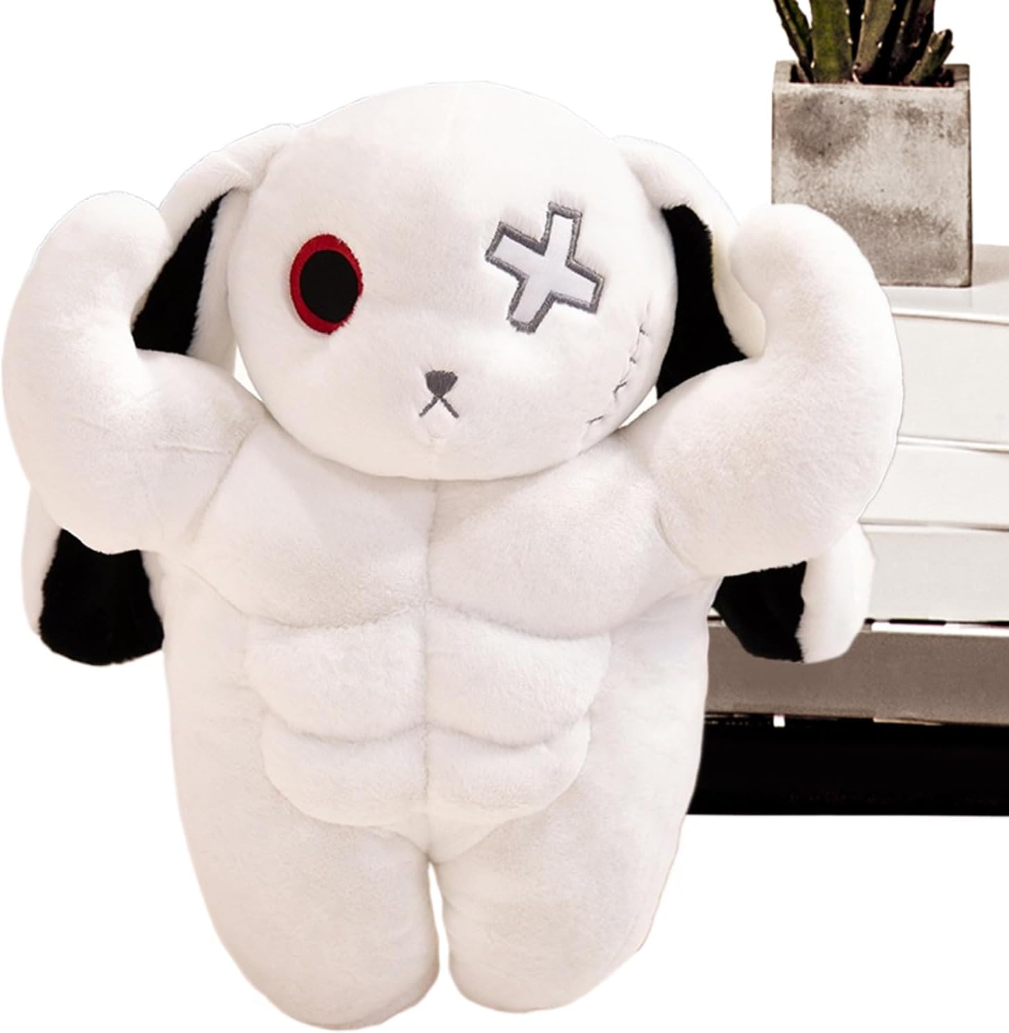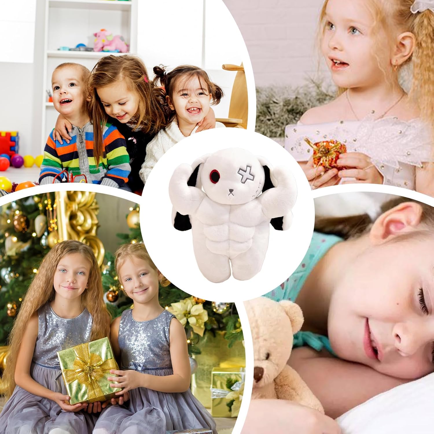 This muscle bunny plush toy combines a humorous and scary design with soft materials, making it a unique and huggable companion for bedtime, car rides, or lounging on the couch animal is perfect for adding warmth to your home decor Designed with exaggerated muscular arms and an intense expression, this rabbit plush adds personality and playful energy to bedrooms, dorm rooms, or setups for kids, boys, girls, men, or women, or as a decorative throw pillow, it blend The plush stands upright and doubles as a soft pillow or desk buddy, perfect for decorating shelves, bedsides, or desktops with a quirky, eye-catching presence seamlessly into bedrooms, living rooms, meeting rooms, and more Soft to the touch yet visually bold, this doll makes a fun surprise gift for kids, teens, or adults during holidays, birthdays, or special occasions like Christmas or Halloween Take it along while traveling, or use it to improv Lightweight and portable, the bunny plush fits easily in backpacks or on travel seats, offering comfort, conversation-starting style, and wherever you go holidays like Christmas, Easter, and Children's Day