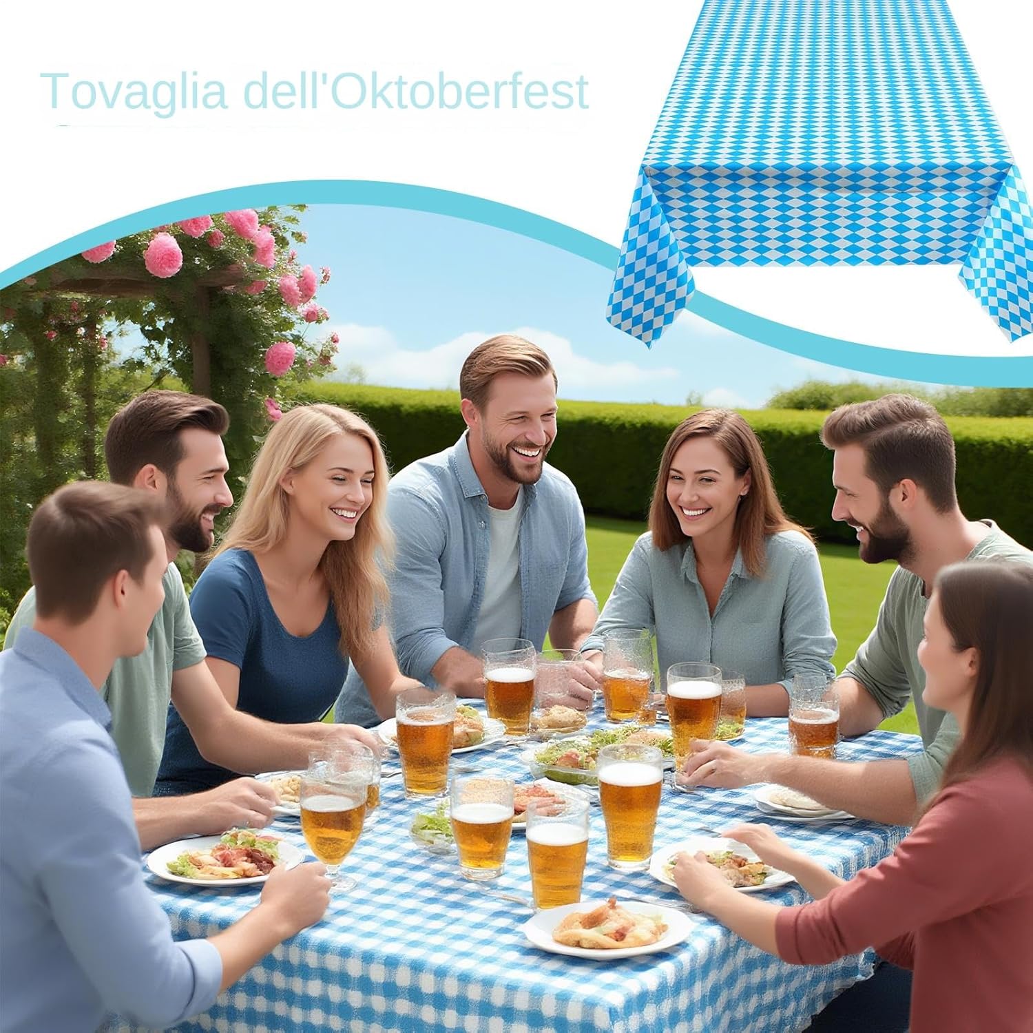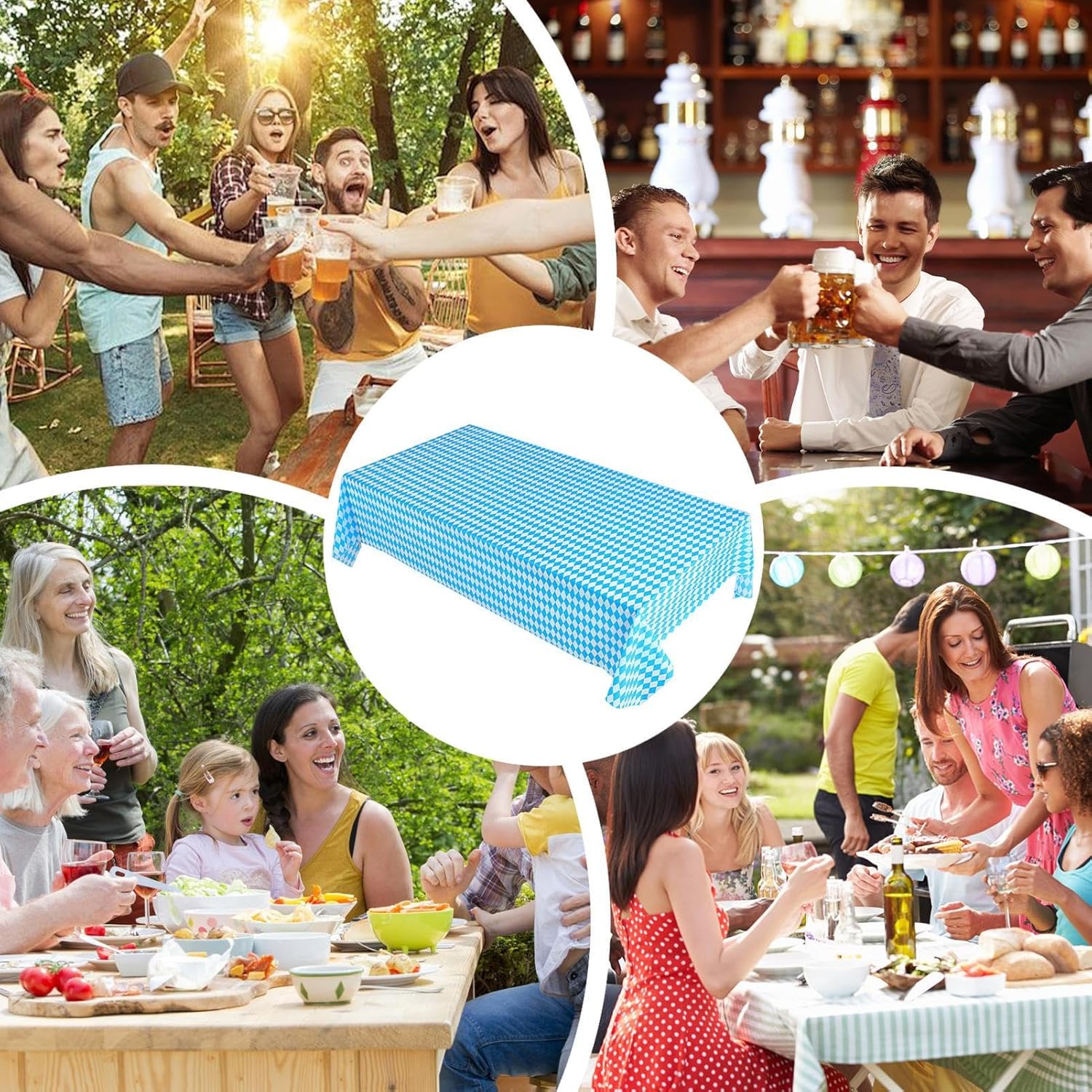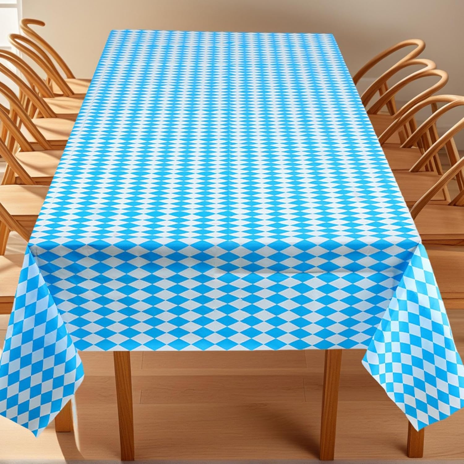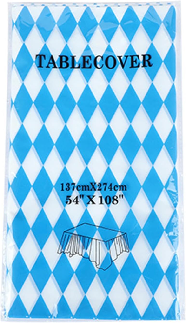 Classic Oktoberfest Style: Designed in the iconic Bavarian blue and white checkered pattern, this Oktoberfest tablecloth brings authentic charm to beer festivals, family gatherings, and German-themed parties held at home or outdoors. Sturdy and Waterproof: Crafted from water-resistant material, this tablecover protects tables from spills, grease, and condensation. Ideal for barbecues, beer gardens, and events where food and drinks are in constant . Easy Cleanup Convenience: No need to worry about post-party —this reusable tablecloth is wipeable and lightweight, making cleanup quick and effortless. Use it for multiple events, both indoors and outdoors, year after year. Perfect for Any Setting: Whether for a backyard cookout, restaurant display, Oktoberfest potluck, or indoor buffet setup, this tablecloth fits standard tables and instantly elevates the festive atmosphere with minimal effort. Versatile for All Occasions: More than just Oktoberfest, this versatile tablecover works for birthdays, fall gatherings, cultural nights, school events, or beer tasting —offering a functional and decorative touch to any celebration.
