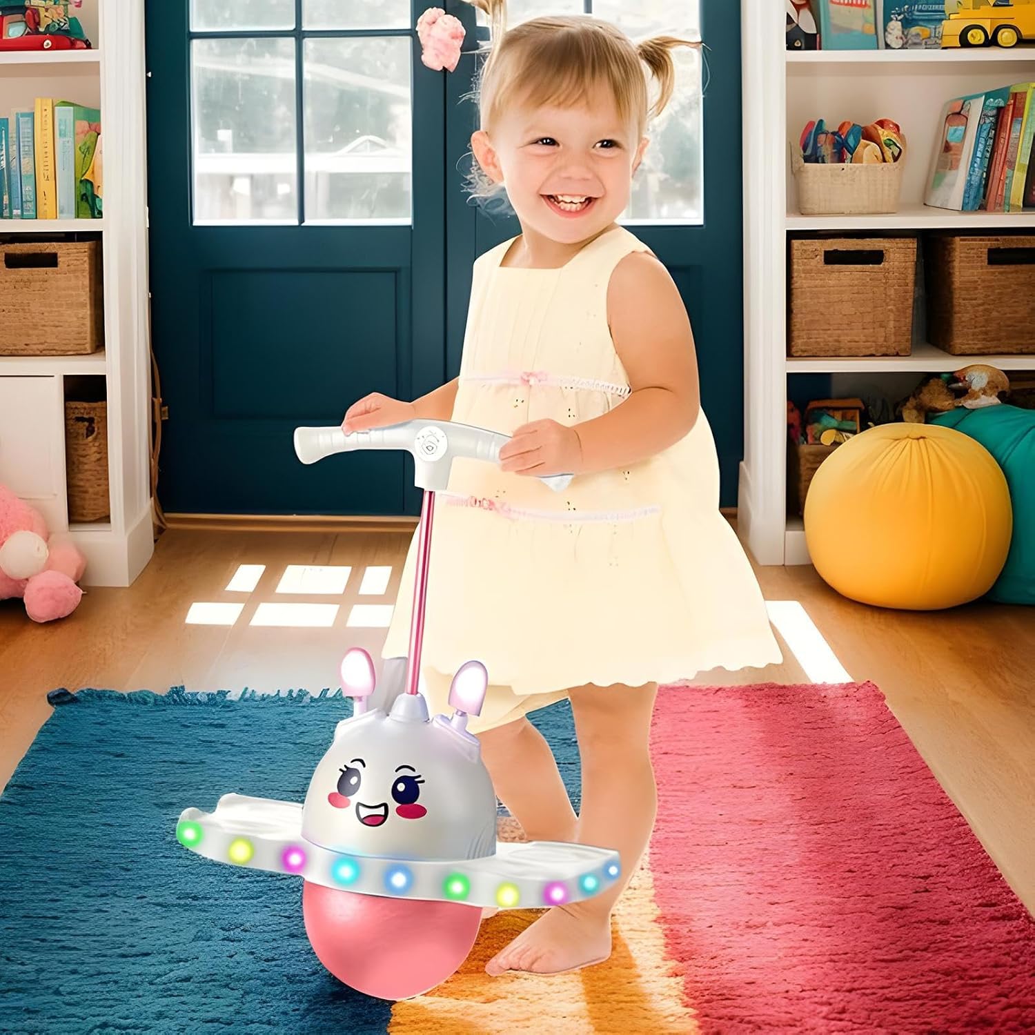 Strumento Multiuso per la Famiglia: Supporta fino a 100kg per attività fisica e gioco, adatta a diverse generazioni. Stimola coordinazione ed equilibrio trasformando l'esercizio in divertimento, sia in casa che in giardino Controllo Corporeo Migliorato: L'utilizzo giornaliero sviluppa l'equilibrio e la coordinazione nei bambini, rafforzando contemporaneamente i muscoli centrali per sostenere una crescita sana e un migliore controllo del corpo. Ricordarsi di gonfiare al momento 'arrivo. Funzione luminosa interattiva: La palla saltellante per bambini include un divertente design illuminato che incoraggia l'attività fisica attraverso il gioco. Il suo effetto luminoso morbido stimola l'interesse all'esplorazione, mentre le orecchie da coniglio si muovono ad ogni salto, aggiungendo gioia e coinvolgimento alle attività di gioco, migliorando naturalmente l'esperienza divertente per i bambini durante i momenti di movimento Designo elastico resistente: Realizzata con materiali elastici e ultraresistenti, la palla saltarella garantisce rimbalzi intensi e duraturi, regalando momenti di divertimento sicuro per bambini e adulti di ogni età grazie alla struttura rinforzata Regolazione precisa:di regolazione personalizzabile per base e corda assicura utilizzo sicuro e confortevole, supportando la postura di salto ideale per bambini durante l'attività fisica