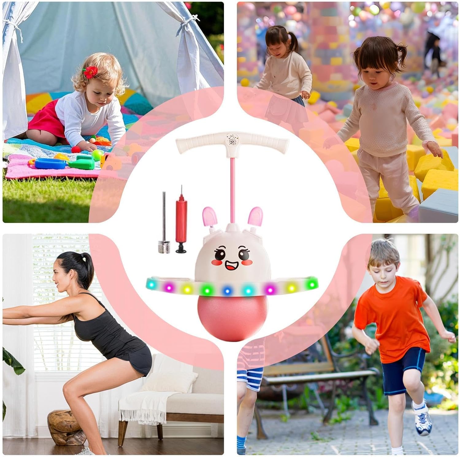 Soluzione di Gioco Completa: Portata 100kg per uso indoor/outdoor, combina sviluppo motorio e divertimento. Ideale per stimolare l'attività fisica dei bambini mentre gli adulti mantengono il tono muscolare con semplici esercizi Rinforzo Muscolare Centrale: Integra la palla saltarella nelle routine quotidiane per potenziare i muscoli del core, migliorare equilibrio e coordinazione, contribuendo allo sviluppo fisico armonioso dei bambini. Assicurarsi di gonfiare correttamente dopo la ricezione. Feedback dinamico del movimento: Dotata di un meccanismo luminoso, questa palla saltellante per bambini si illumina dolcemente durante i , incoraggiando un gioco energico. Le orecchie da coniglio in movimento forniscono un feedback interattivo, stimolando curiosità ed esplorazione, rendendo ogni sessione di gioco più piacevole e coinvolgente, senza compromettere sicurezza o comfort Per tutte le età: Progettata per soddisfare le esigenze motorie di bambini e adulti, la palla saltarella offre sessioni di rimbalzo personalizzabili con diversi livelli di intensità, mantenendo comfort e sicurezza in ogni movimento Comfort Personalizzato: Base adattabile e lunghezza della corda variabile offrono una presa stabile e avvolgente, favorendo il mantenimento della posizione ideale durante i .