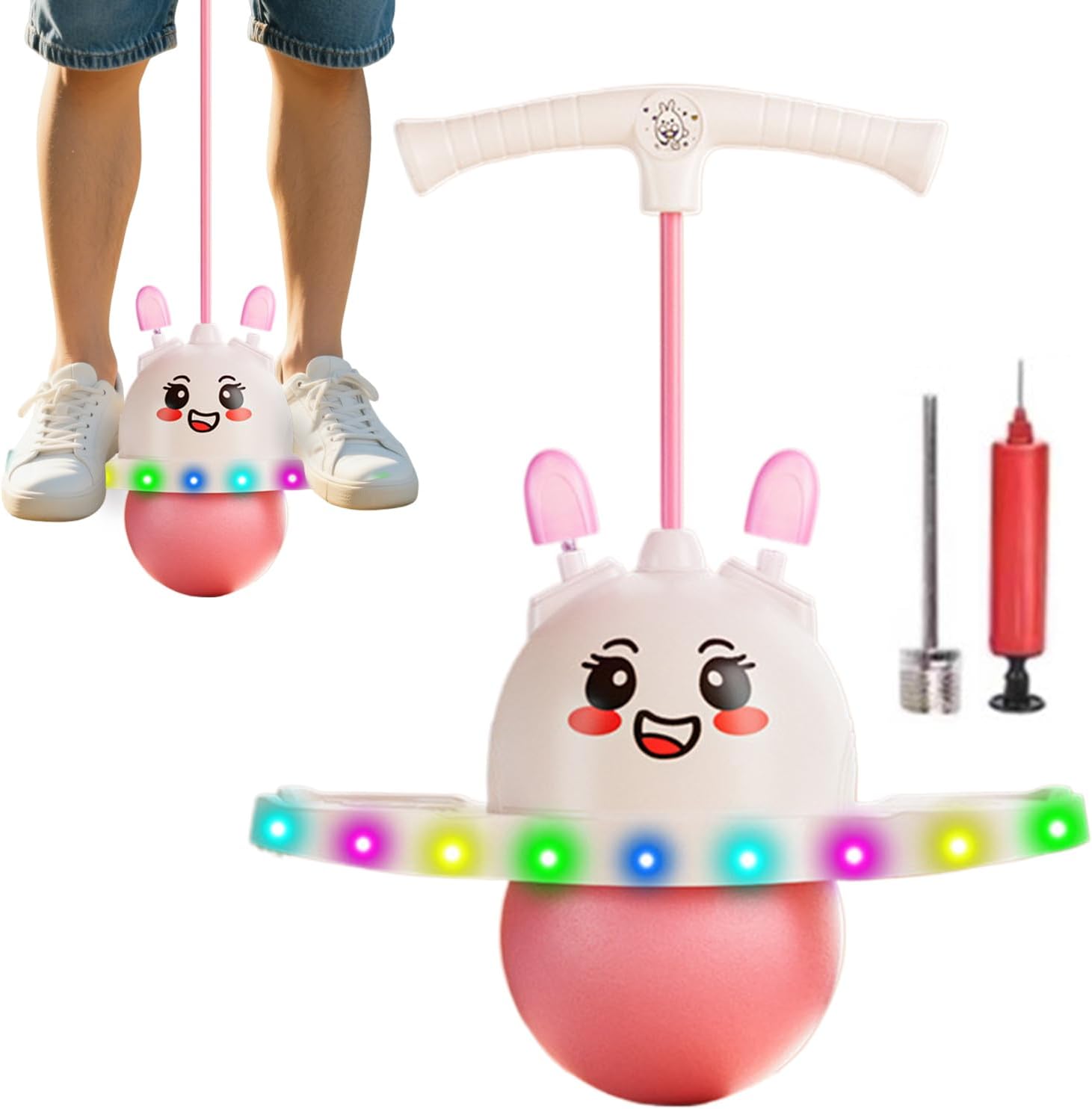 Strumento Multiuso per la Famiglia: Supporta fino a 100kg per attività fisica e gioco, adatta a diverse generazioni. Stimola coordinazione ed equilibrio trasformando l'esercizio in divertimento, sia in casa che in giardino Allenamento Equilibrio-Coordinazione: Ideale per le routine di esercizio regolari, la palla favorisce lo sviluppo infantile migliorando del core, equilibrio e coordinazione motoria. Da gonfiare prima del primo utilizzo. Luce morbida per divertimento attivo: Questa palla saltellante offre una caratteristica luminosa unica che motiva i bambini a rimanere attivi. La sua luce delicata e le orecchie da coniglio animate un'atmosfera giocosa, favorendo l'interesse per l'esplorazione e trasformando semplici in esperienze piacevoli, piene di gioia e intrattenimento continuo per i piccoli utenti Rimbalzi potenziati: Grazie ai materiali premium e alla composizione stratificata, ogni salto genera un'esperienza energizzante e coinvolgente, ideale per condividere momenti attivi tra diverse generazioni senza sforzo Comfort Personalizzato: Base adattabile e lunghezza della corda variabile offrono una presa stabile e avvolgente, favorendo il mantenimento della posizione ideale durante i .