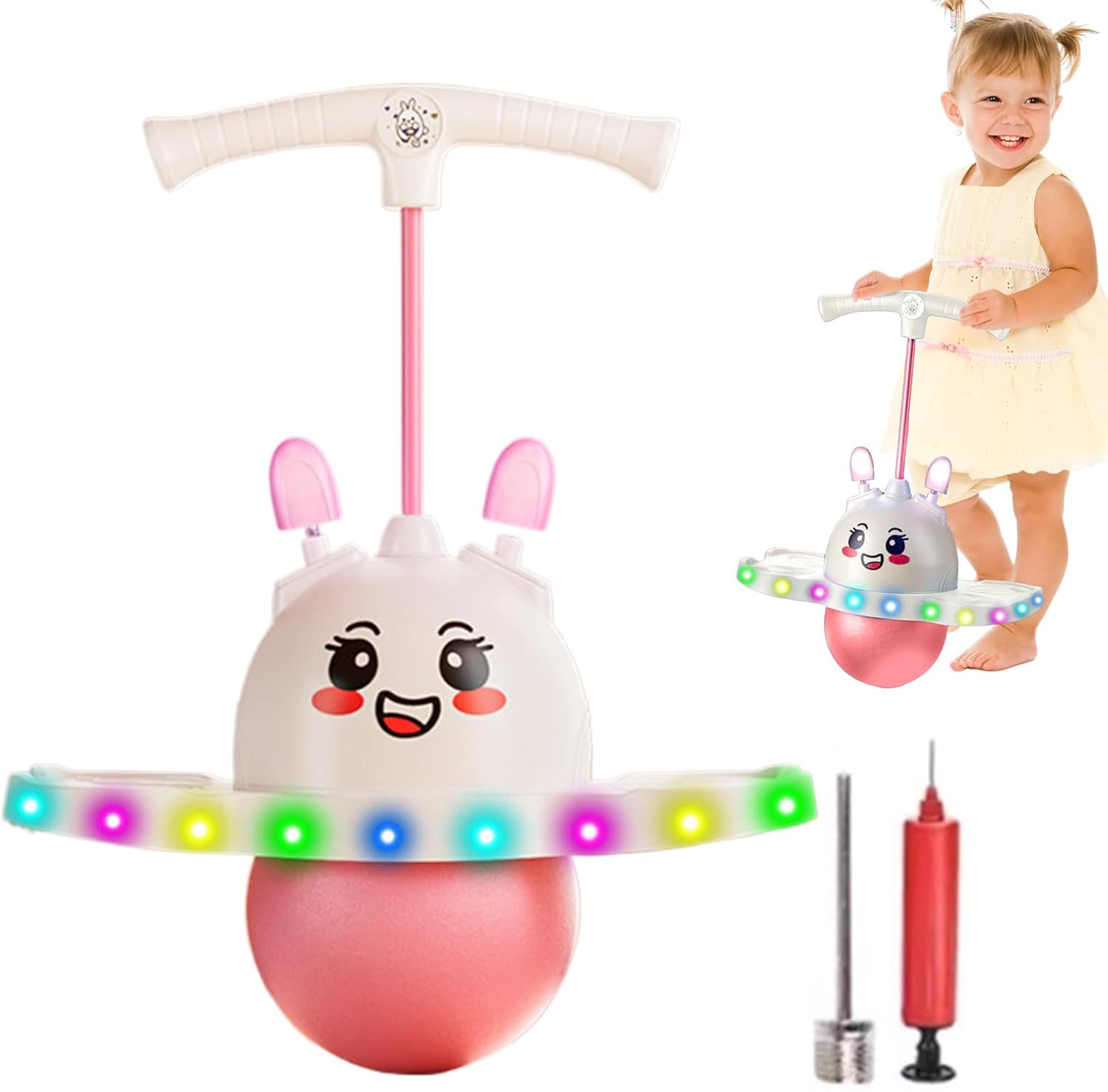 Divertimento Esercizio Multifunzione: La palla saltarella unisce attività fisica e intrattenimento per bambini e adulti, con portata massima 100kg, ideale per giochi dinamici in casa o all'aperto per tutta la famiglia Rinforzo Muscolare Centrale: Integra la palla saltarella nelle routine quotidiane per potenziare i muscoli del core, migliorare equilibrio e coordinazione, contribuendo sviluppo fisico armonioso dei bambini. Assicurarsi di gonfiare correttamente dopo la ricezione. Luci attivate dal movimento: Con illuminazione attivata dal movimento, la palla saltellante promuove l'attività fisica nei bambini combinando divertimento ed esercizio. Il suo effetto luminoso e le orecchie da coniglio reattive incoraggiano il gioco immaginativo, migliorando l'impegno sensoriale durante il gioco, garantendo un'attività emozionante ma sicura per i bambini Divertimento ad alta elasticità: La struttura innovativa unisce flessibilità e stabilità, permettendo sessioni di gioco dinamiche e piacevoli per tutta la famiglia con rimbalzi vigorosi che mantengono intatta la forma del prodotto nel Comfort personalizzato:Base adattabile e lunghezza corda regolabile consentono una presa stabile e piacevole, favorendo il mantenimento della forma di salto perfetta