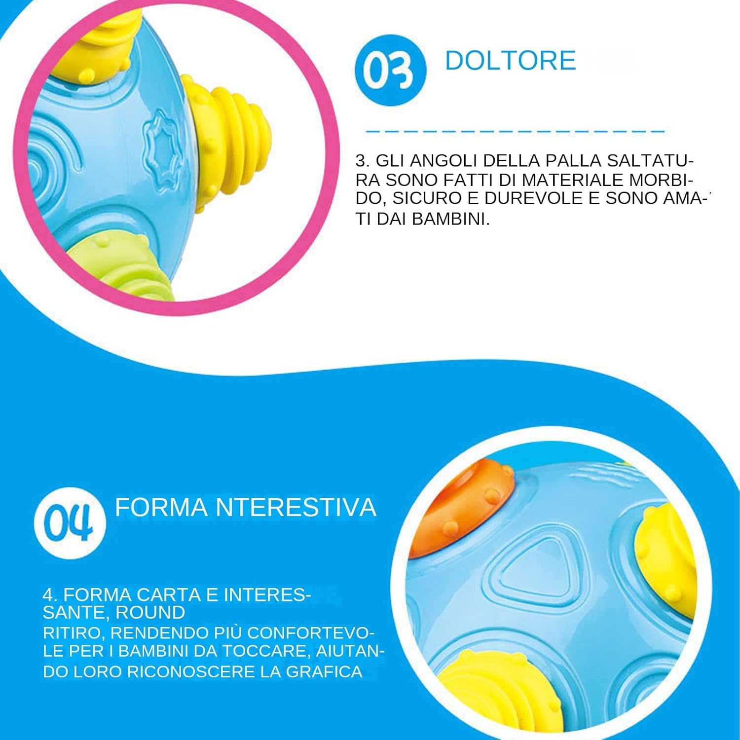 Gioco Interattivo: Aiuta a creare un emotivo e migliorare le capacità cognitive durante il gioco condiviso, offrendo suoni allegri che incoraggiano l'esplorazione e momenti speciali genitore-bambino. Intrattenimento Educativo:Pallina sensoriale a d'ape con movimento rotatorio, effetti vibranti e suoni musicali promuove abilità tattili e incoraggia attività di inseguimento spontaneo per coinvolgere attivamente i bambini nel gioco interattivo. Compagno di Gioco Versatile:Ideale per fasi di gattonamento e in piedi, supporta attività sicure con animali domestici. Leggero e trasportabile, per uso interno/esterno garantendo esperienze sensoriali coinvolgenti in ogni contesto Migliora Coordinazione -Manuale: Con colori vivaci e presa ergonomica, la palla sensoriale aiuta a sviluppare la coordinazione occhio-mano, stimola i movimenti di raggiungimento e gattonamento, contribuendo al delle abilità motorie durante il gioco interattivo Adatto a : Superfici arrotondate evitano rischi di soffocamento, materiale robusto per durabilità estesa e sicurezza durante l'esplorazione orale