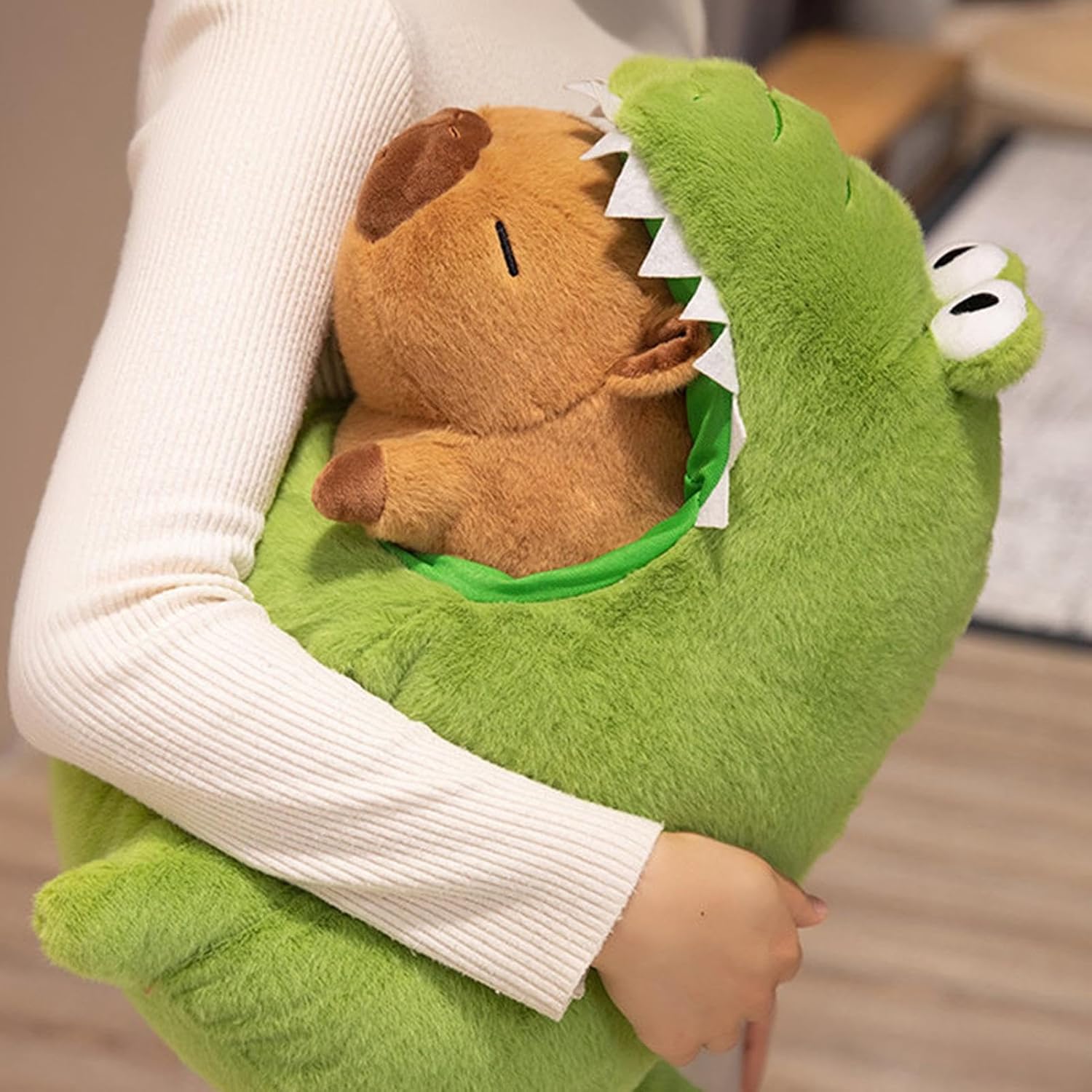 Compagno morbido e avvolgente: con un grazioso design da capibara, questo animale di diventerà sicuramente dei preferiti di bambini e adulti. I suoi grandi occhi, il corpo rotondo e l'espressione ingenua danno vita all'adorabile capibara con colori vivaci e forme vivaci Design divertente e interattivo: il design del guscio staccabile 'animale di peluche Capybara offre ai bambini un modo divertente e coinvolgente di esprimere la propria creatività e immaginare nuove possibilità. Lascia correre l'immaginazione di tuo figlio con questa innovativa funzionalità di gioco Materiale confortevole: dotato di un eccellente materiale peluche e di un'imbottitura interna ecologica e innocua, questo animale di peluche Capybara offre una piacevole esperienza tattile, fornendo un morbido abbraccio per tutte le età Ampiamente applicabile: migliora qualsiasi spazio con il nostro peluche capibara ultra peluche. Ottimo per far coccolare i bambini, nonché un elegante accento decorativo per scrivanie, librerie o qualsiasi stanza a casa Regalo meraviglioso: regala loro una speciale con l'animale di peluche Capybara, ottimo per esprimere cura e amore. Ottimo regalo per compleanni e vacanze, adatto a famiglia e amici