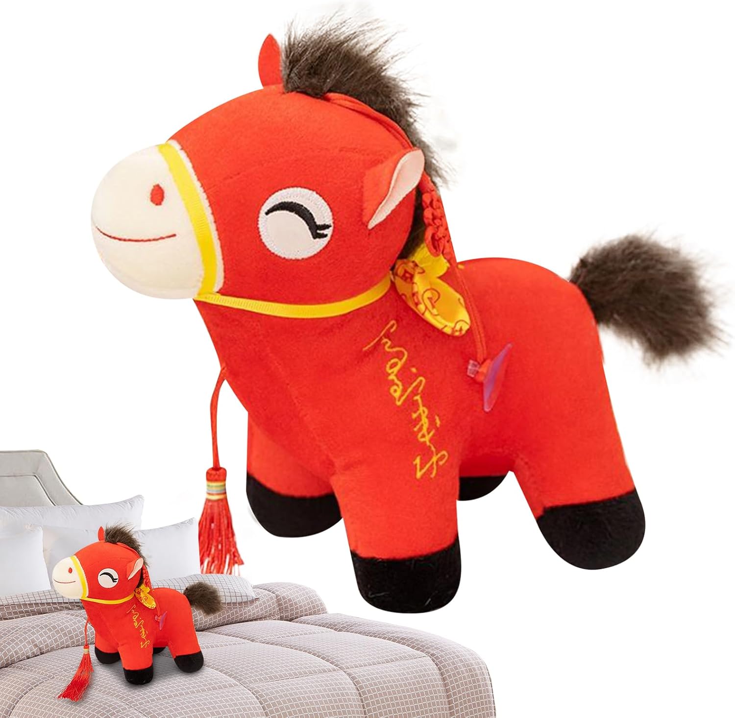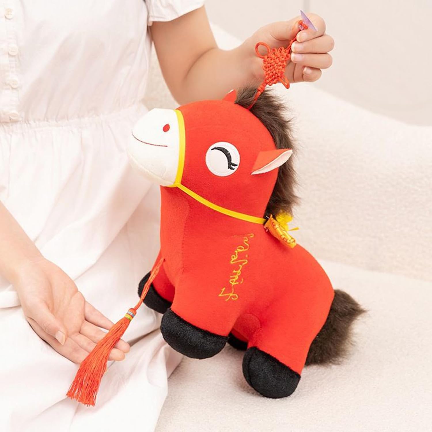 Migliora l'atmosfera domestica: Arricchisci la tua casa con questo cavallo di peluche, realizzato come decorazione festosa ideale per le celebrazioni, diffonde calore e un senso di in modo naturale migliorando l'ambiente domestico con un tocco di gioia e armonia senza sforzo Design Artigianale: Realizzato con tecniche di cucitura raffinate, questo peluche cavallo incarna un'artigianalità eccellente, offrendo un articolo da collezione unico supportato da verifiche qualità rigorose e una presenza distintiva Regalo per Traguardi: Un raffinato peluche cavallo creato per commemorare traguardi di vita, si presenta come significativo condividendo benedizioni e , emergendo come scelta regalo perfetta per ogni occasione Morbidezza Meritata: Progettato con tessuto peluche soffice e imbottitura sicura in cotone PP, assicura una texture rassicurante, rendendolo ideale per momenti calmanti e i migliori abbracci Tocco Artigianale Culturale: Design ispirato alla mascotte cinese del cavallo, rappresenta e benedizioni, pezzo per celebrare l'arte culturale e una lavorazione ricca di premura