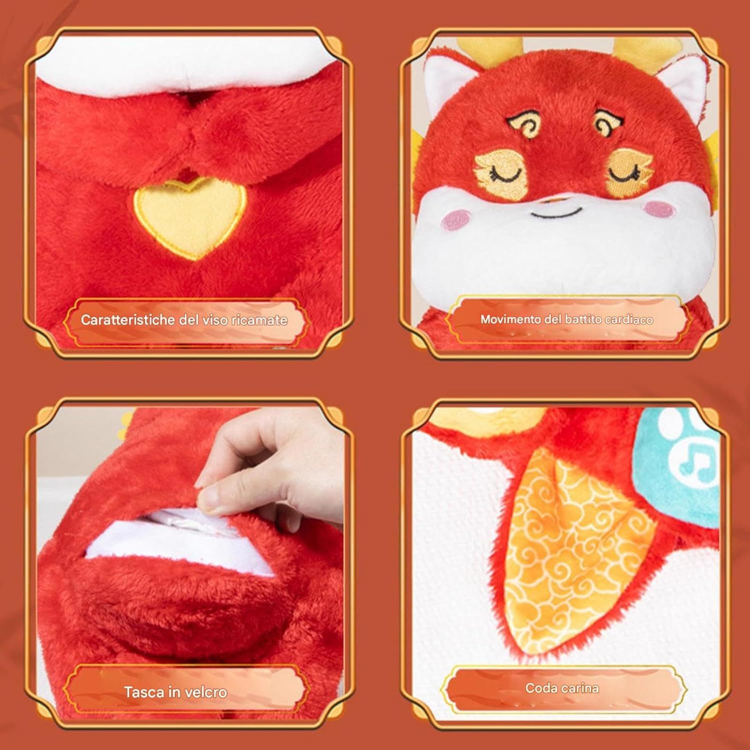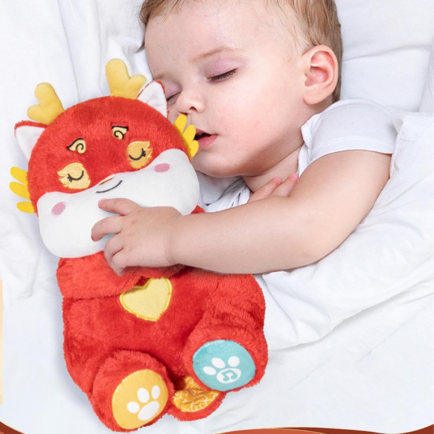 Tessuto morbido: il nostro peluche è progettato per offrire un abbraccio grazie al suo morbido tessuto di cotone e all'eccellente elasticità 'imbottitura interna. Il tuo bambino potrà coccolarlo tutta la notte tra le sue braccia per un sonno tranquillo Design accattivante: il nostro peluche per la respirazione del sonno calma il tuo bambino facendolo dormire con il ritmo del battito cardiaco e una respirazione delicata, grazie a sensori e sistemi motori di precisione Dormi profondamente tutta la notte: dormi profondamente durante la notte con il nostro peluche. Dotato di altoparlanti di alta qualità, riproduce suoni rilassanti per aiutare il tuo bambino ad addormentarsi più velocemente. La qualità del suono chiara garantisce che i tuoi bambini dormano tutta la notte Sviluppo sensoriale: migliorando l'esperienza del sonno, il nostro peluche respiratorio porta con sé una semplice guida melodica per introdurre i bambini a suoni pacifici, favorendo la crescita sensoriale ad ogni utilizzo Cute Buddy: offre comfort senza sforzo e un senso di sicurezza, rendendolo la scelta ideale per la routine a buonanotte di tuo figlio. Un ricordo rilassante di interiore e positività, ogni notte