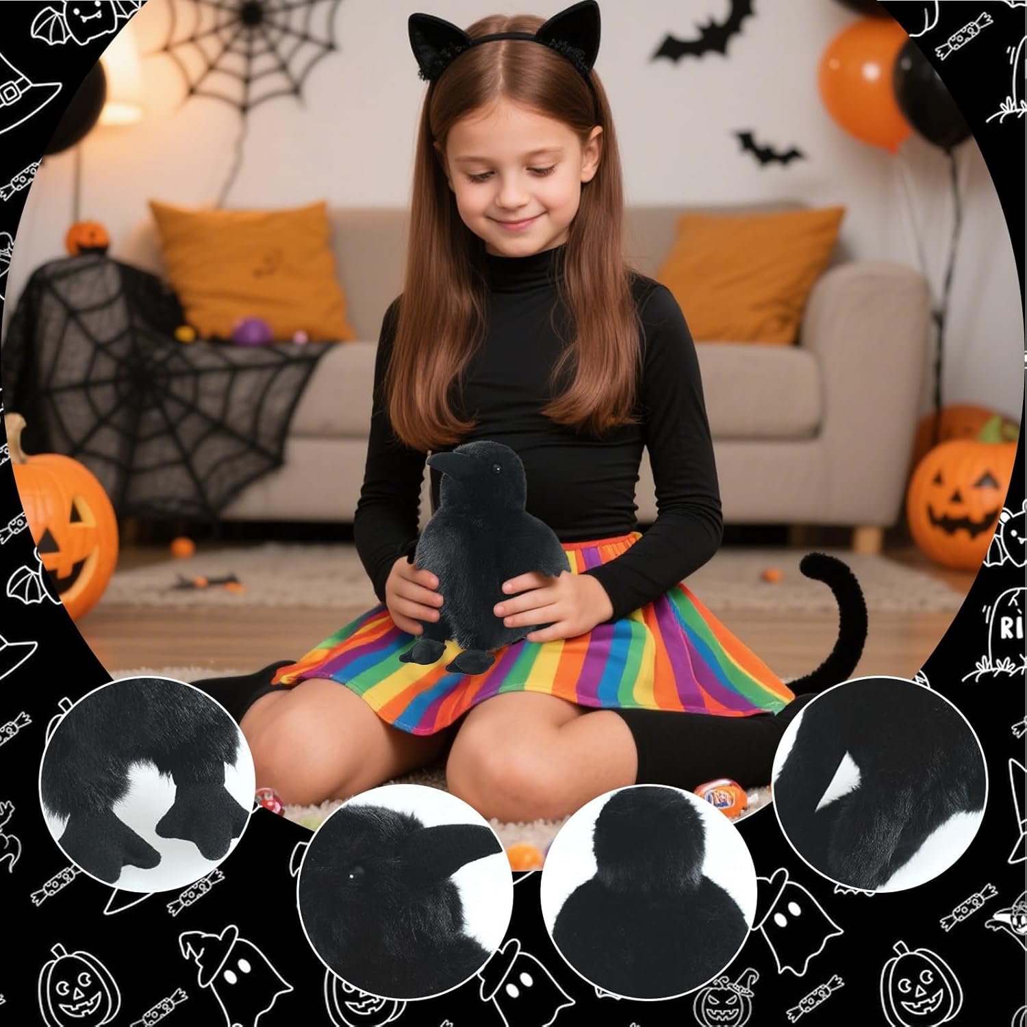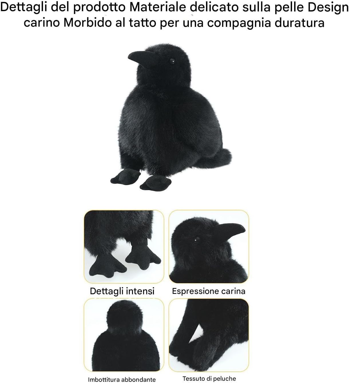 Il design realistico e ispirato al corvo e il fascino a tema scuro rendono questo adorabile peluche una scelta ideale per creare decorazioni accattivanti e migliorare le atmosfere festive per il display da tavolo per feste e decorazioni a tema Halloween, aggiungendo fascino alla decorazione del soggiorno, allo stile di divani e al posizionamento 'accento per la camera da letto con il suo fascino di design unico Concediti la consistenza morbida e liscia di questo tessuto lussuoso, con superfici adatte alla pelle e una generosa densità di riempimento, progettata per fornire comfort tattile senza pari e accogliente Combinando un design compatto con una portabilità perfetta, fornisce facilità all'aria aperta e una silhouette che salva spazio, rendendolo ideale per i viaggi o le avventure quotidiane Delizia i bambini nei loro compleanni e rendilo una scelta di famiglia memorabile, perfetta come una di Halloween ideale o un regalo di vacanza speciale per la amata