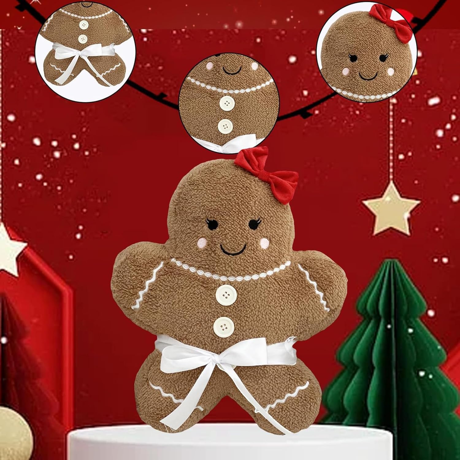 Comfort e charme: Unisce funzionalità ed estetica come complemento d'arredo. Morbido decorativo per divano o comodino, dona un tocco festoso e piacevole comfort alla tua casa in ogni stagione. Condividi in Famiglia: Eccellente scelta come per eventi o idea regalo festivo. Funge anche da ricordo natalizio e per feste, portando allegria in celebrazioni e momenti di festa. Decorazione Completa: Ideale come addobbo natalizio e peluche 3D, per infondere calore in ogni ambiente fungendo anche da comodo decorativo per un'atmosfera festosa Tattilità Avvolgente: Morbido peluche pan di con esterno in velluto e tessuto ipoallergenico. Design ergonomico con imbottitura ad alta resilienza garantisce comfort prolungato ed esperienza tattile eccezionale. Giocattolo Longevo: Grazie a cuciture rinforzate e dettagli a punti stretti, questo peluche robusto mantiene la forma e resiste all'uso ripetuto nel