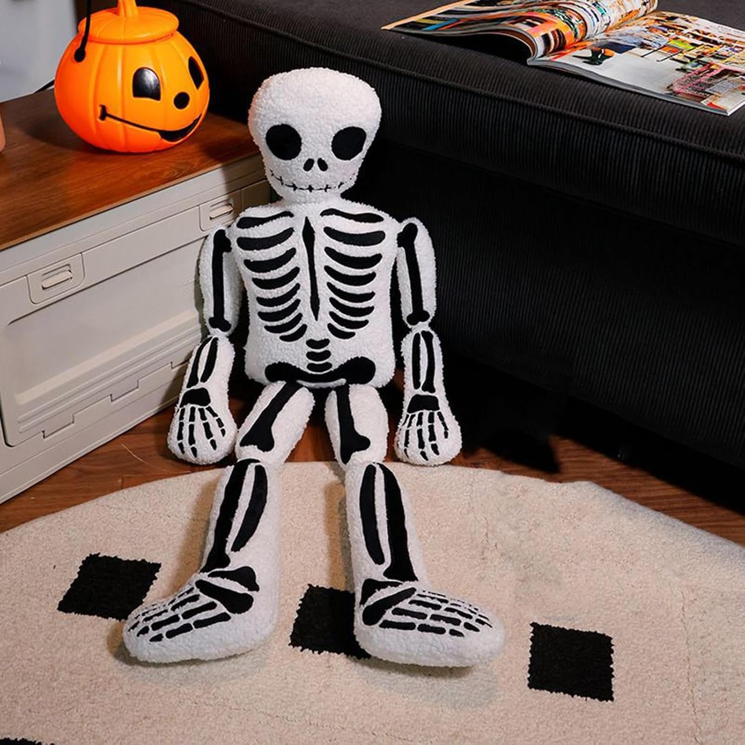 Manutenzione Semplice: Struttura a compressione e recupero rapido con superfici resistenti sporco, mantenimento semplificato tramite semplice pulizia con panno umido preservando a lungo la morbidezza e l'aspetto invitante del peluche decorativo Morbidezza premium: Peluche ultra-fine con densità 300gr/m² garantisce una sensazione avvolgente e piacevole al . L'imbottitura con fibre siliconate elastiche si adatta alla perfezione alla forma del corpo, evitando compattazioni mantenendo a lungo la sofficità originale del prodotto Peluche interattivo dinamico: Progettato con snodi mobili per creare pose sempre diverse, diventa compagno di giochi educativo durante le festività. Soluzione innovativa per arricchire l'intrattenimento e realizzare originali servizi fotografici a tema festivo Magia : Decorazione teschio sorridente con design semiserio adatta a tutte le età. La combinazione di elementi horror stilizzati e colori allegri lo rende per creare atmosfere tematiche dinamiche in camerette, salotti o durante eventi speciali, con facili abbinamenti ad altre decorazioni Utilizzo polivalente: Progettato come decorativo per tutto l'anno, il design compatto si integra in braccioli, davanzali e interni auto, fornendo soluzioni decorative adattabili per diversi ambienti con facilità e efficienza