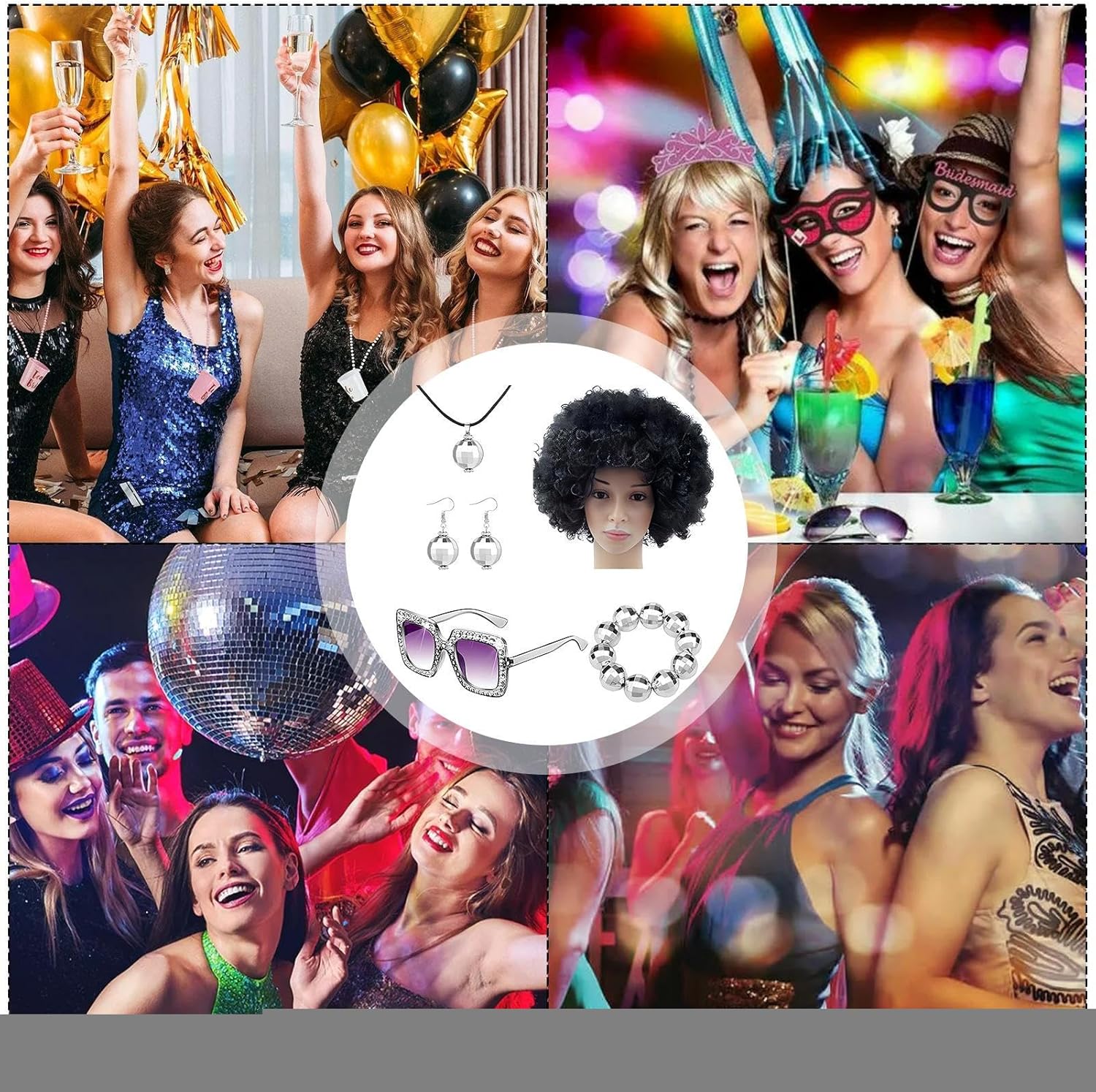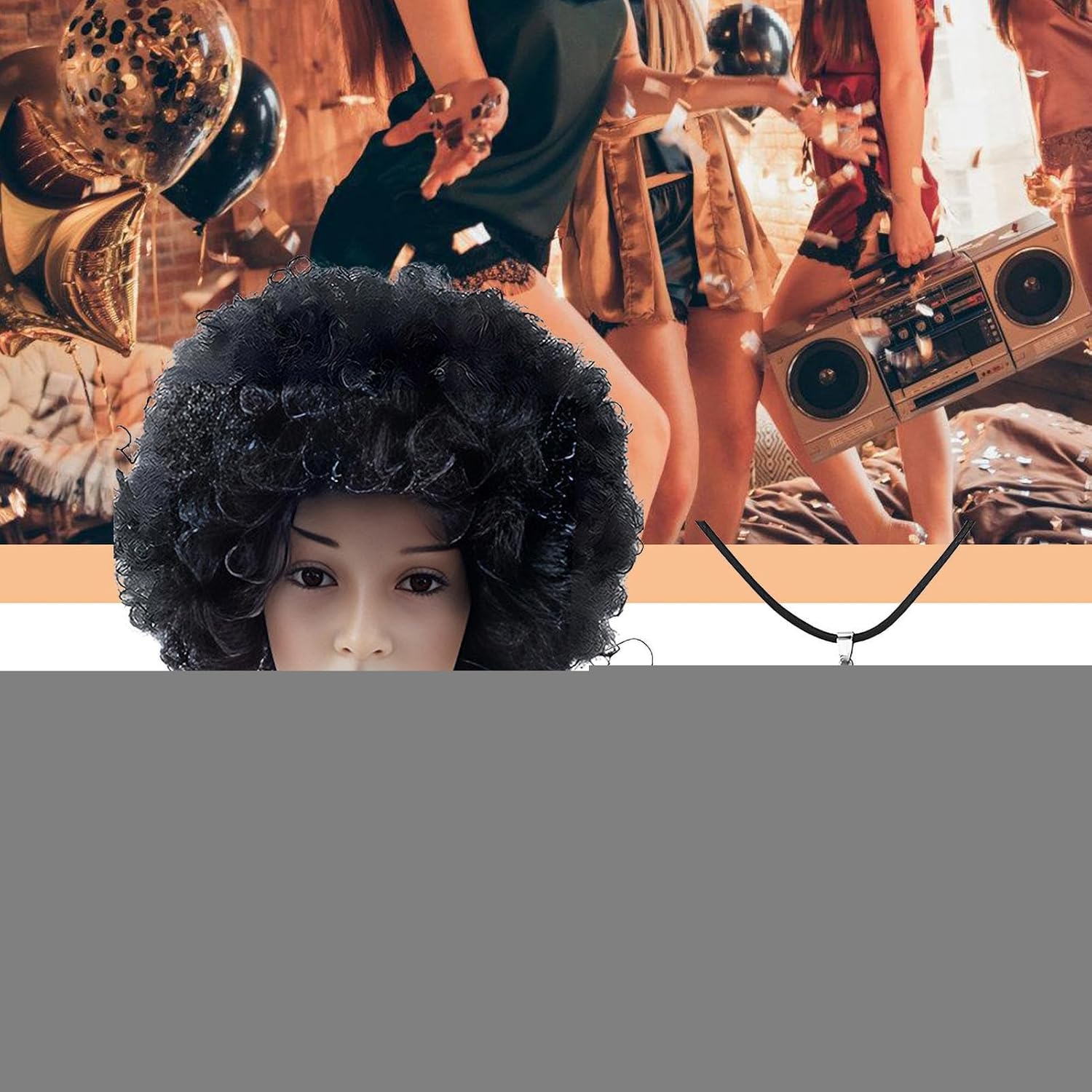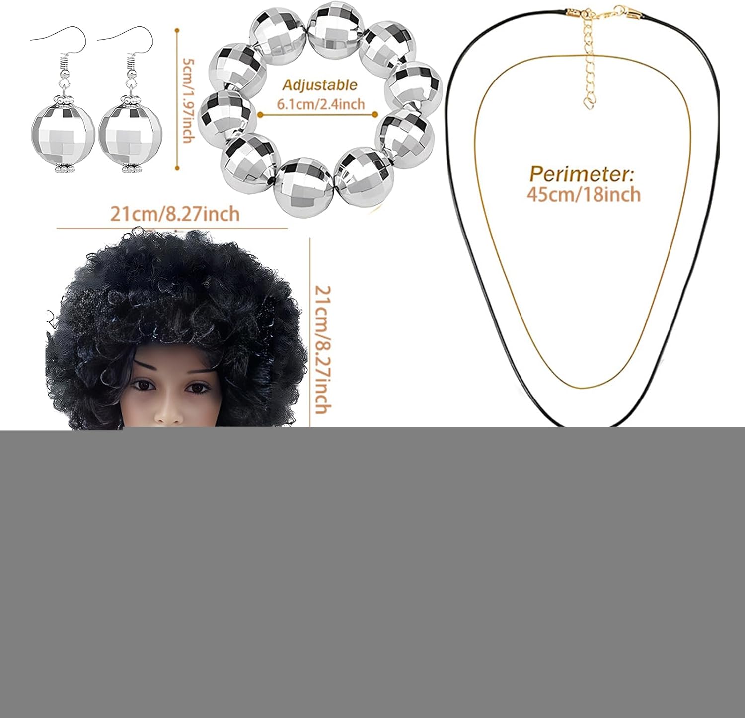 Descrizione prodotto Diventa alla moda con i nostri da discoteca anni '70 da donna! Questa collana con sfera da discoteca in 1 pezzo è perfetta per qualsiasi festa in discoteca. Fai brillare i tuoi orecchini sulla pista da ballo con la loro forte lucentezza e la luce brillante. È un regalo squisito per ogni diva della discoteca! Specifica: Nome: set di da discoteca da donna degli anni '70 Materiale: fibra sintetica + PP Dimensioni del prodotto: come mostrato nell'immagine Peso: circa 230 g Lista imballaggio: Capelli corti e ricci anni '70 x1 Orecchini con sfera da discoteca x1 paio Collana con palla da discoteca x1 Bracciale con palla da discoteca x1 Occhiali da sole con montatura x1 Nota: 1. A causa dei diversi effetti di visualizzazione e di illuminazione, il colore effettivo del prodotto potrebbe essere leggermente diverso dal colore mostrato nell'immagine. Grazie! 2. A causa della misurazione manuale, è consentita una deviazione di misurazione di 1-3 cm. Avviso di sicurezza Non applicabile