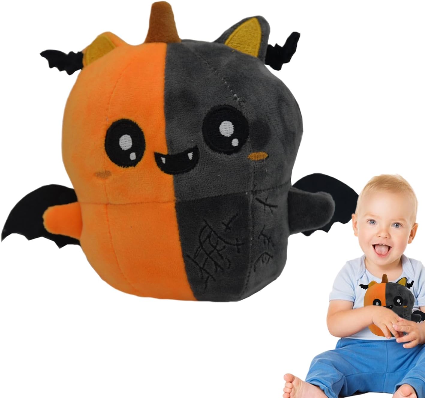 Adorable Color Design: Showcasing exquisite double stitching for perfect durability, this bat stuffed animal boasts a unique color design that perfectly blends with classic Halloween elements like pumpkin, devil horns, and bat wings Soft Feeling: Made from high-quality plush material and stuffed with PP cotton, this bat stuffed animal provides a experience, keeping its shape intact Multiple Purposes: Measuring approximately 11*14cm/4.3*5.5 inches, this Bat Stuffed Animal adds a horror touch that's perfect for placing on your sofa, bedside table, bookshelf, or in your car Good for Present Giving: Impress your loved person with this charming bat stuffed animal. Perfect for friends, family, and classmates, its soft texture and charming design make it an exquisite present Create a Festival Atmosphere: Our Bat Stuffed Animal with cute and terrifying elements is a must-have for Halloween enthusiasts. Its unique design adds terrible and cute elements, creating a festival atmosphere that'll delight both kids and adults