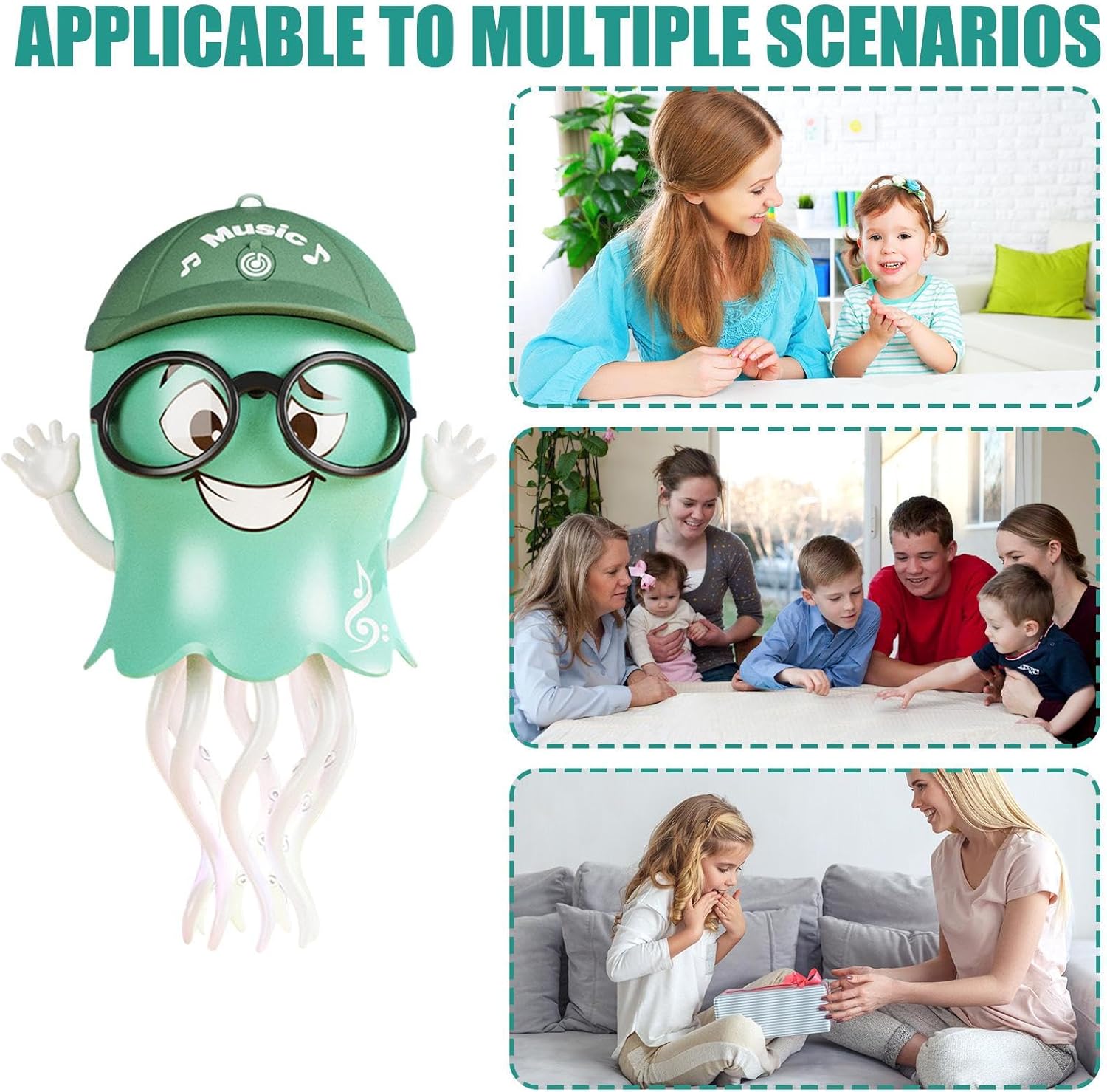 Pratico da Portare: Con le sue dimensioni portatili e la struttura leggera, il giocattolo per bambini polpo fornisce intrattenimento immediato in movimento. Adatto per viaggi, visite alla spiaggia o esperienze di campeggio, crea sorrisi in ambienti dinamici, assicurando gioia continua per i più piccoli. Il design compatto e leggero lo rende facile da trasportare ovunque, offrendo divertimento istantaneo senza sforzo durante le avventure all'aperto, e migliorando l'esperienza di gioco in Design Accattivante: Questo giocattolo polpo offre un design accattivante grazie al suo di sensori intelligenti che spruzza una fresca, ideale per il gioco acquatico e per favorire le interazioni genitore-figlio in ambienti interni o esterni. Aumenta il piacere condiviso attraverso momenti di divertimento spontaneo, perfezionando l'esperienza ludica con una rinfrescante che stimola il gioco attivo e la connessione familiare. Luce Rilassante e Soffusa: Questo piovra emette luci gradient a sette colori con transizioni delicate, fornendo un'illuminazione soffusa e non abbagliante per stimolare la crescita sensoriale e migliorare le visuali notturne oniriche. La luce rilassante aiuta a creare un ambiente durante le serate, favorendo il relax dei bambini e supportando sviluppo sensoriale naturale attraverso effetti visivi morbidi e costanti, ideale per accompagnare il momento della nanna. Simulazione di Movimento: Dotato di otto tentacoli flessibili, il si muove con un pattern ondulatorio, imitando la vita marina per ispirare creatività e concentrazione osservativa, offrendo divertimento infinito in scenari di gioco di finzione o ambienti educativi, i bambini possono imparare sui movimenti marini attraverso un'esperienza interattiva che sviluppa abilità sociali e cognitive in modo coinvolgente. Divertimento Sicuro e Innocuo: Caratterizzato da un evitamento ostacoli intelligente, il polpo assicura movimenti fluidi in varie impostazioni, adattandosi facilmente a layout affollati come soggiorno o camerette dei bambini, offrendo divertimento ininterrotto mentre priorizza la sicurezza e le interazioni durante il gioco.