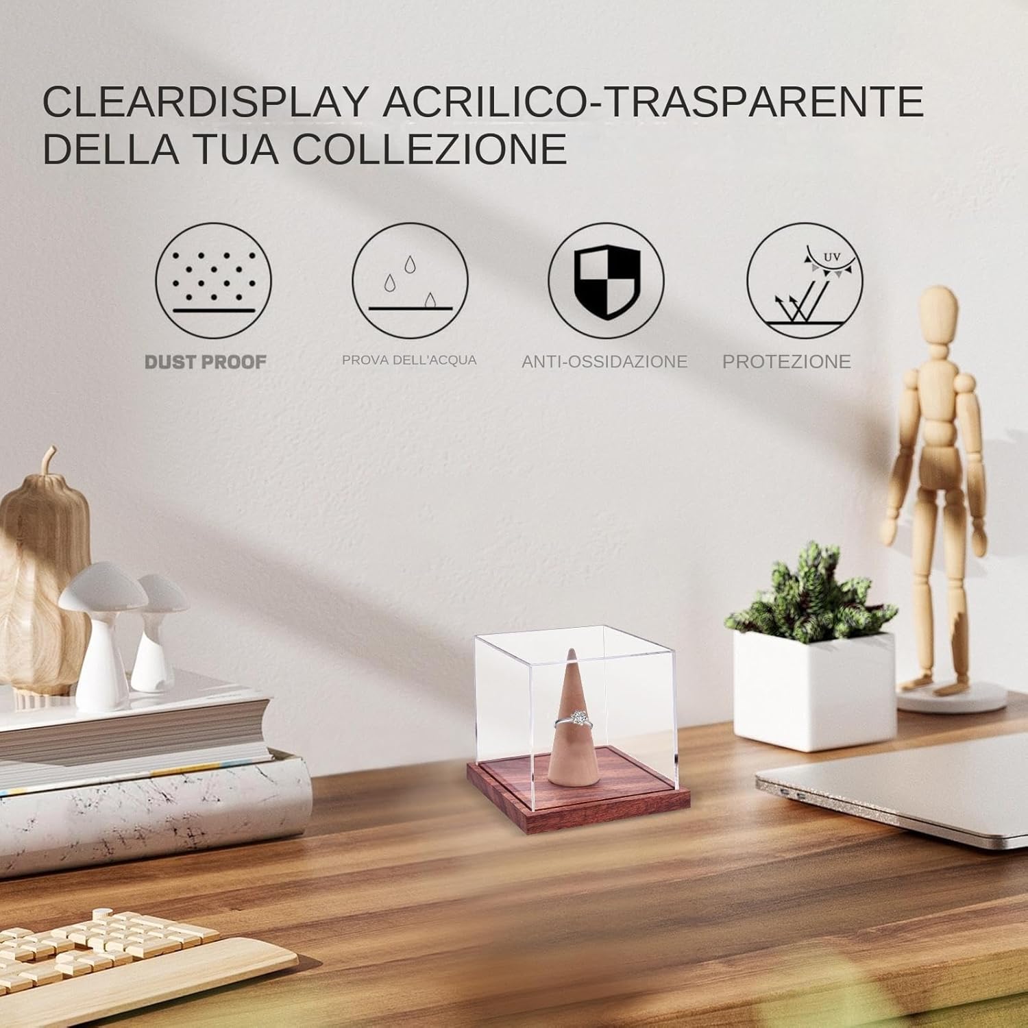 Soluzione Espositiva Raffinata: Realizzato in legno massello, offre posizionamento stabile e un tocco di eleganza, assicurando che gli anelli siano esposti in modo sicuro e attraente Cofanetto sicuro: Realizzato per sostenere stabilmente anelli da campionato, scelta intelligente per club sportivi che cercano valore estetico e praticità nelle occasioni di regalo Custodisci il Successo: Progettato per festeggiare i traguardi, offre un ottimo modo per mostrare le vittorie, mantenerne il significato e creare un duraturo dedicato al successo personale Montaggio Rapido: Protezione efficace da polvere e per articoli di valore, design intuitivo che assicura la conservazione sicura e assemblaggio veloce per utilizzo immediato Visibilità Ottimale: Vetrina esposizione anelli in cubo acrilico trasparente garantisce visione nitida dei dettagli, esaltando la bellezza degli anelli con design elegante e superficie lucida perfetta per ogni ambiente espositivo