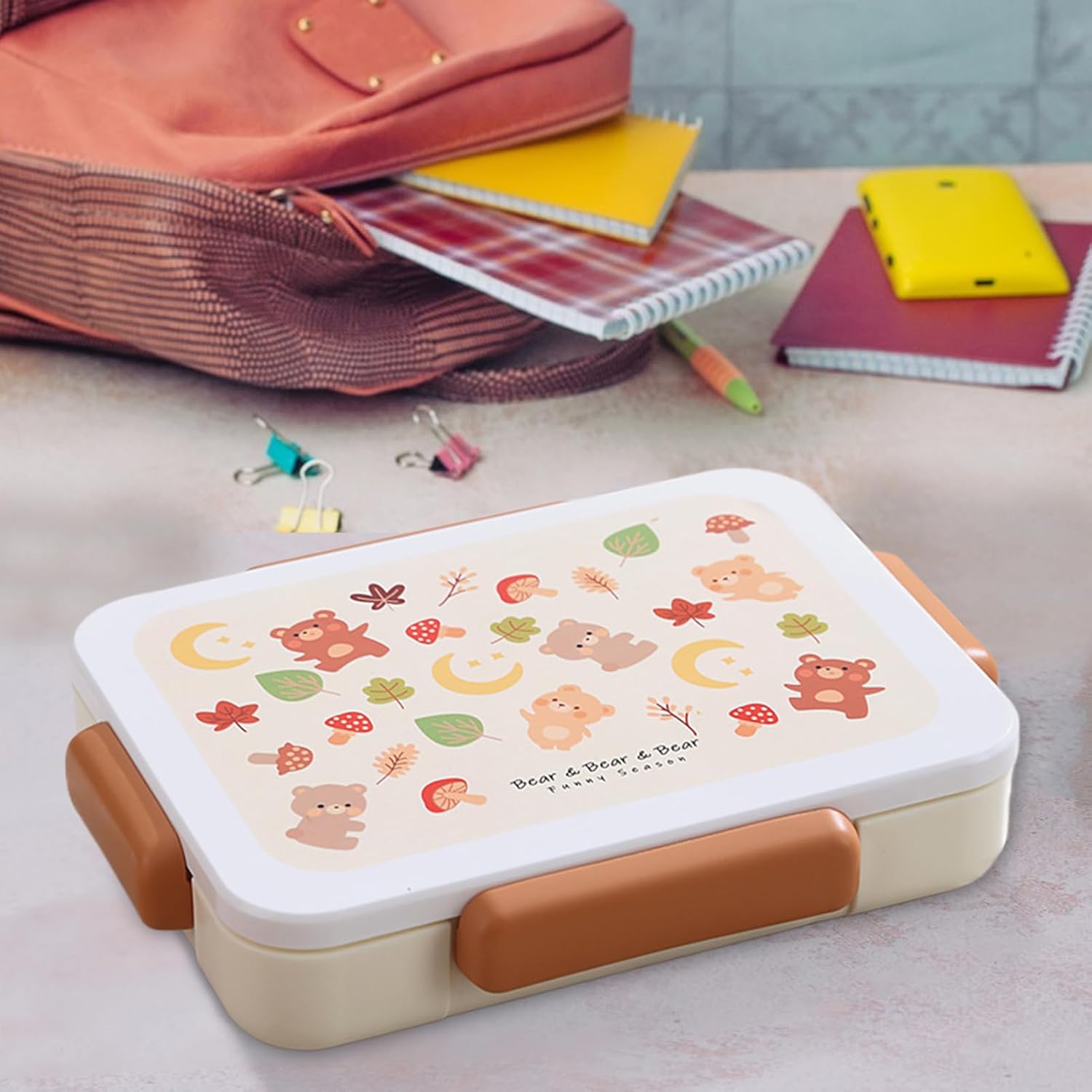 Arte Funzionale: Pratica scatola pranzo con allegri disegni di cartoni animati unisce gioco e utilità per promuovere buone abitudini alimentari Sicuro nello Zaino: Realizzato specificamente per il trasporto in zaini scolastici grazie alla chiusura a tenuta stagna, previene fuoriuscite durante spostamenti, rendendo i pasti semplici in gite o giornate a scuola. Organizzatore Pasti: Promuove un'alimentazione bilanciata con scomparti multipli che contengono ordinatamente diverse porzioni di cibo, aiutando a mantenere la freschezza degli alimenti Companion Pasti Antiperdite: Dotato di barattolo salse staccabile e posate per bambini, questo kit garantisce comodità senza fuoriuscite. Scelta perfetta per gite scolastiche e picnic all'aperto. Organizzazione Efficiente: Set bambini con scatola pranzo 1.2L e contenitore formato , ottimizzato per pasti scolastici. La borsa leggera assicura mobilità facile, mantenendo il pranzo pronto per ogni attività giornaliera.
