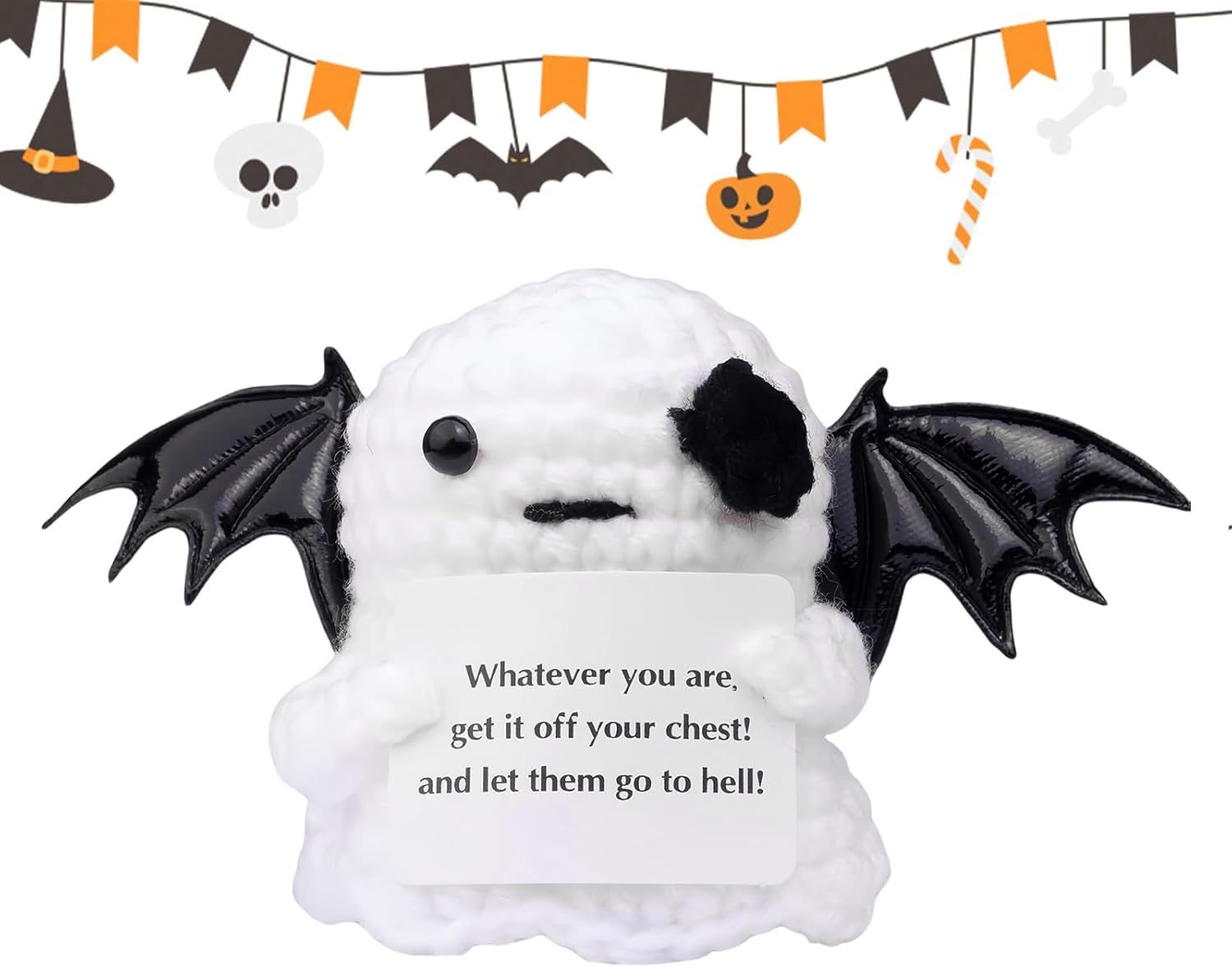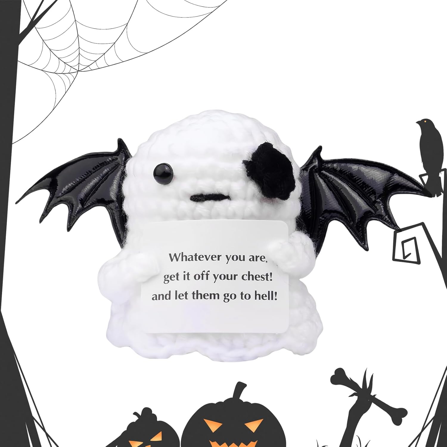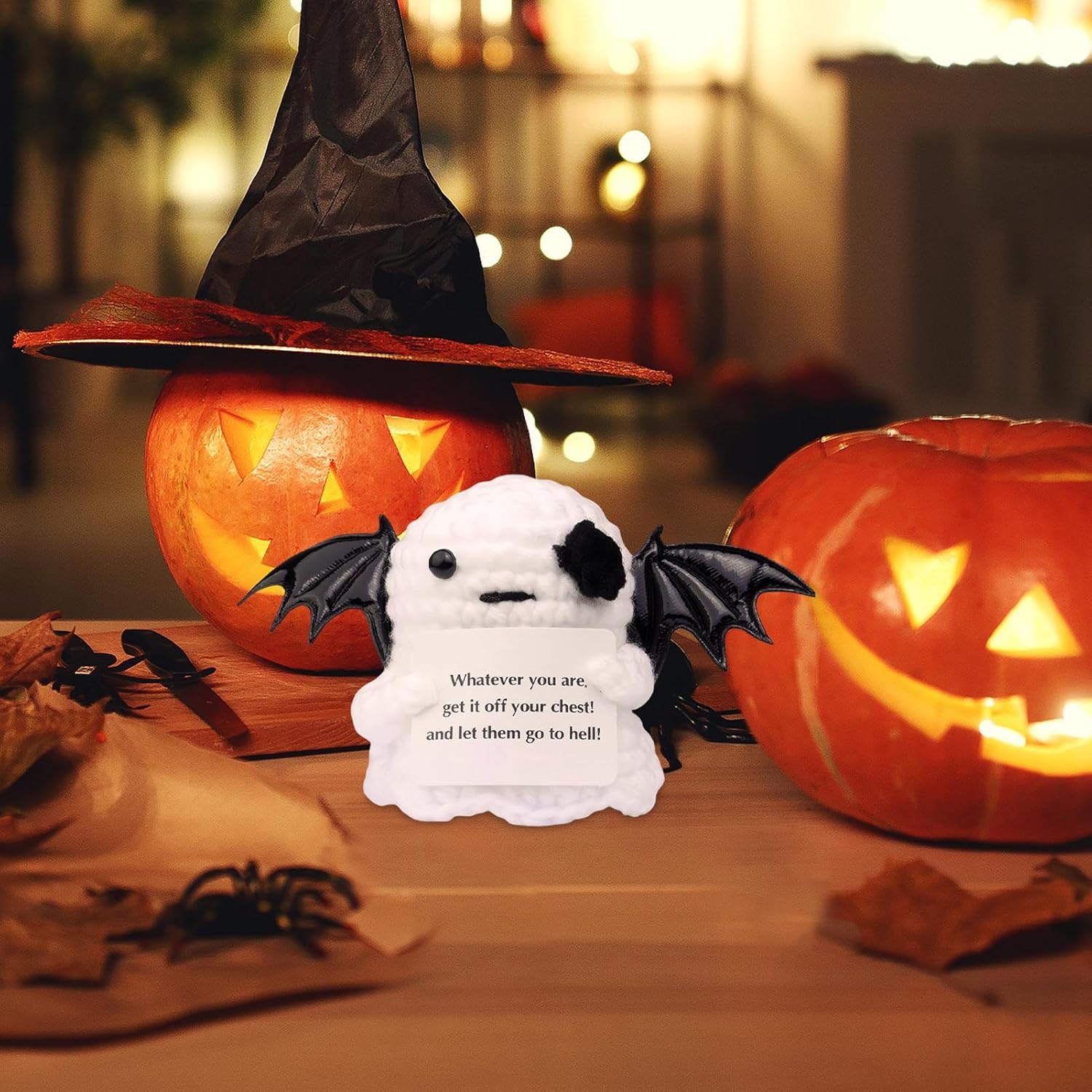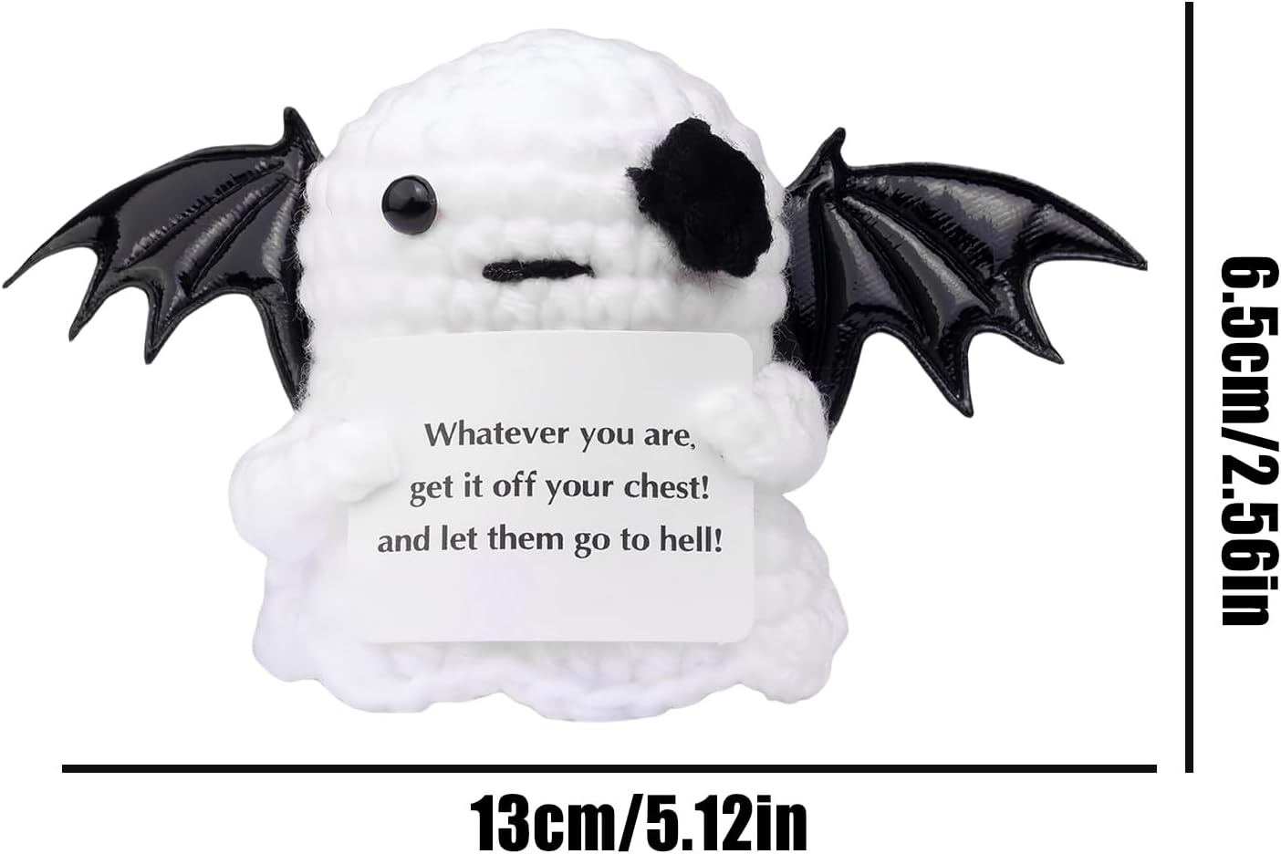 Playful Knitting Artist: Delivers a warm, and healing ambiance through its cute, and playful ghost design, while showcasing flexible knitting artist that adds decorative charm, and atmospheres to your home, or festive decor effortlessly Optimism-Inspiring Design: Encourages self-confidence and optimism, with carefully selected positive sentences, displayed in a warm, handwritten style card, to deliver best encouragement and motivation naturally Gentle and Long-Lasting Build: Featuring skin-friendly yarn and hand-woven details, it combines rounded edges with a delicate touch, ensuring flexibility and resistant to shape distortion over time Scope of Application: Enhance schoolbags, desks, or keys with this adaptable crochet ghost, perfect for Halloween parties, daily inspiration, or exam motivation, featuring effortless portability and a design suited for versatile occasions Meaningful Present: Designed to deliver caring emotions, this crochet ghost serves as a creative present for relatives and friends, ideal for birthdays or inspiring loved person to study hard during special family moments