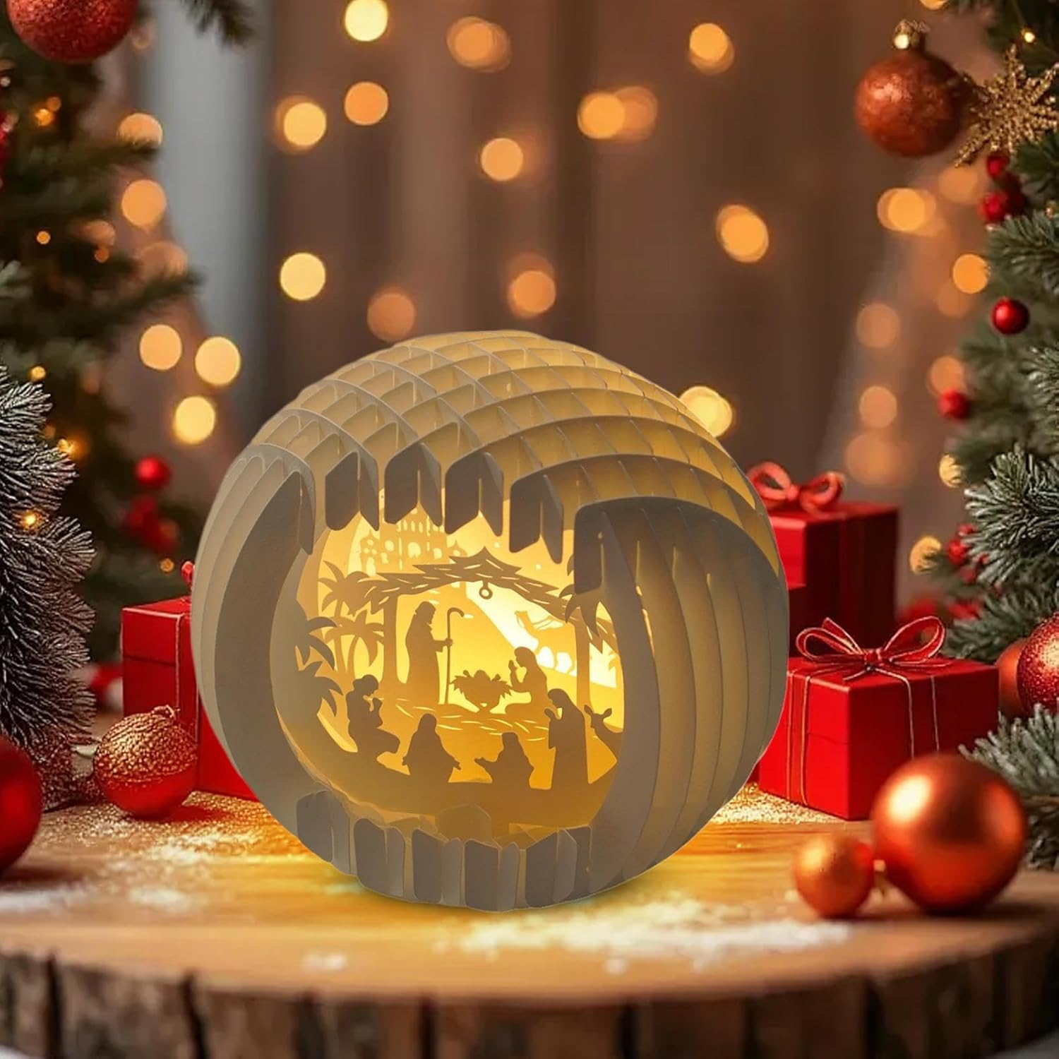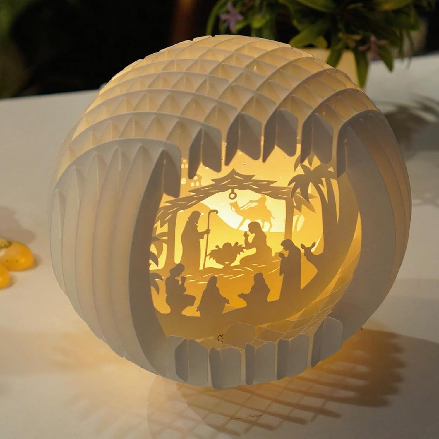 Lavorazione LED Calorosa: Realizzato con tecniche di paper-cut 3D, questo presepe incorpora luci LED delicate che producono un effetto a strati soffusi, evocando un'atmosfera sacra e accogliente ideale per esposizioni significative e festive Regalo Significativo e Simbolico: Questo Presepe rappresenta un carico di significato, in di trasmettere calore spirituale e bellezza artigianale, simboleggiando al stesso tradizioni antiche e un profondo valore culturale per occasioni indimenticabili Adattabilità Decorativa: Completa l'albero di Natale con versatilità multi-scena per chiese e abitazioni, caratterizzato da un design sferico traforato ideale per l'uso sospeso o da tavolo, arricchendo in modo naturale le decorazioni festive Dettagli Fatii a Mano: Il Presepe combina l'intaglio a rilievo multistrato con figure 3D vivide, tutto tagliato e assemblato a mano, per fornire un oggetto da collezione di bellezza duratura, mostrando dedizione alla lavorazione raffinata e alla cura dei particolari Atmosfera Rilassante: La luce calda e soffusa dei LED crea un effetto calmante, ottimale per ambienti serali e notturni. Mantiene prestazioni sicure con minimo calore, migliorando il comfort visivo e aggiungendo un tocco di serenità alla decorazione.