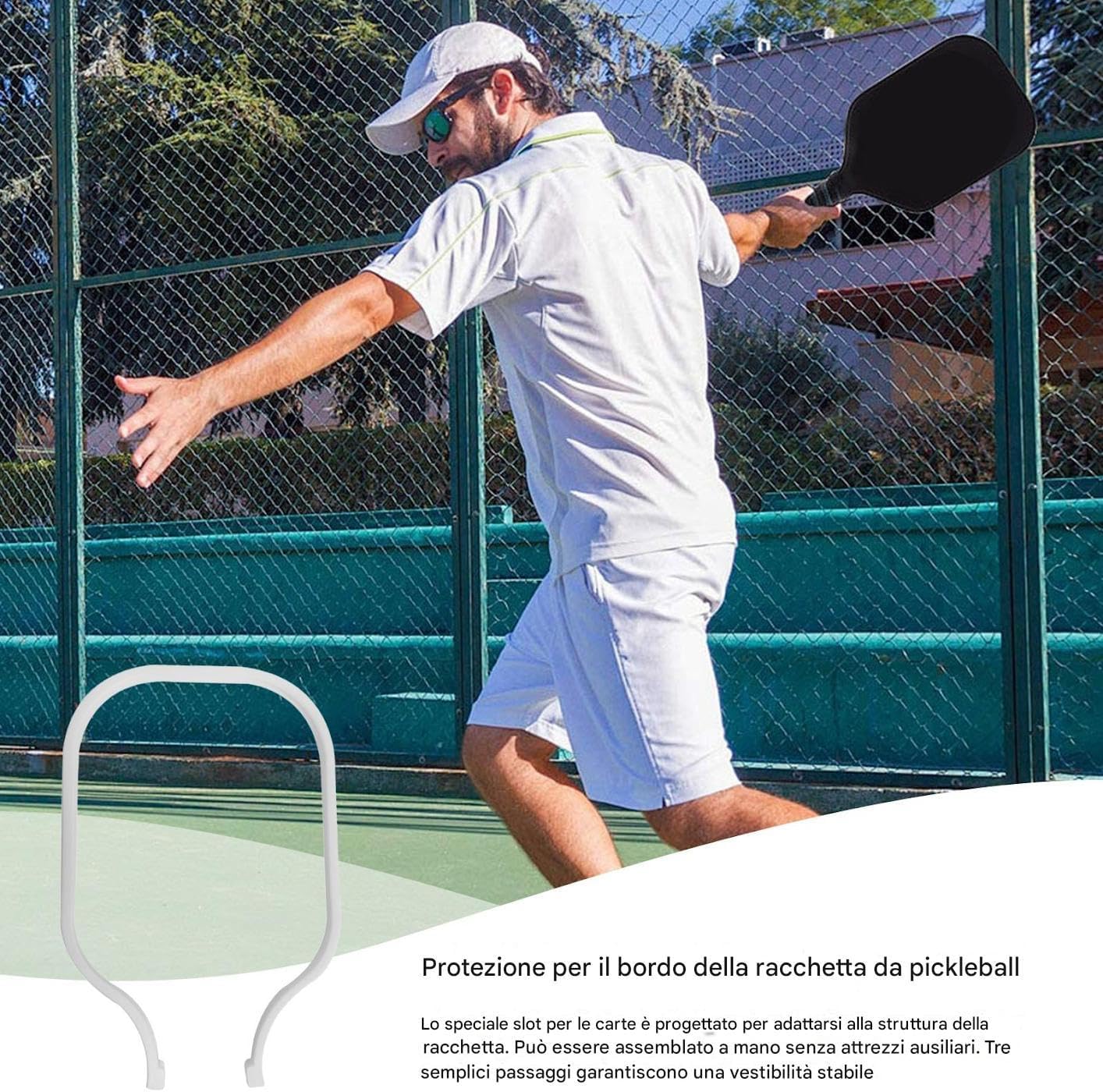 Dinamiche Gioco Migliorate: Design sottile e sicuro si integra perfettamente per aumentare l'accuratezza del tiro, ottimizzare il trasferimento di potenza e perfezionare la coordinazione dello swing in ogni . Vantaggio Montaggio Senza Attrezzi:Meccanismo a scanalatura speciale assicura un adattamento caloroso, semplifica l'assemblaggio manuale senza utensili e facilita la sostituzione, ottimizzando i processi di cura per protezione prolungata e funzionalità costante della pala Bordatura Robusta: Resiste all'esposizione UV e alle variazioni termiche, mantiene flessibilità in ambienti caldi e fornisce protezione sicura con maltempo, prolungando la durata della paddle. Contiene 201 caratteri. Prevenzione Usura Affidabile: Costruito con robusto materiale anti-usura, riduce gli urti e protegge dall'abrasione della cornice, aumentando significativamente la longevità della vostra attrezzatura da pickleball Resistenza Racchetta Migliorata: Conferma prestazioni costanti per aumentare la longevità delle palette e favorire lo sviluppo delle abilità, integrandosi perfettamente con i marchi affidabili di attrezzatura da picchetto