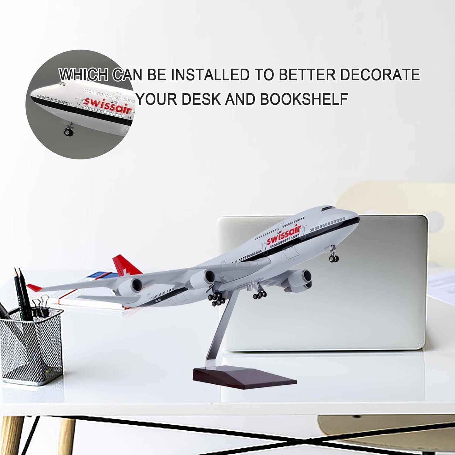 【Design ultra realistico e lavorazione di precisione】 - Realizzato con maestria in lega pressofusa e serbatoio, questo modello in scala 1:150 riproduce l'iconico prototipo B747 con carrello di atterraggio retrattile, pale del motore autentiche e interni Swiss Air. Ogni rivetto, linea del pannello e decalcomania è meticolosamente verniciato for evitare sbiadimenti o scheggiature. 【Effetti sonori di illuminazione dinamici】 – Le luci della cabina attivate tramite comando vocale e i suoni del motore danno vita al modello, mentre le ruote scorrevoli e il supporto espositivo staccabile consentono un gioco interattivo o un'elegante esposizione statica. 【Dettagli di qualità museale】 – Presenta la tecnologia di spruzzatura elettrostatica for colori vivaci e resistenti ai graffi, tra cui il numero preciso di turbine del motore (4 turbofan ad alto bypass), i finestrini della cabina di pilotaggio e le marcature alari che rispecchiano l'aereo originale. 【Resistente e pronto for l'esposizione】 - Il corpo in lega metallica garantisce un'elevata resistenza e stabilità, abbinato a una finitura antiossidante for una facile rimozione della polvere. Perfetto for scrivanie, scaffali o espositori a tema aeronautico. 【Il sogno del collezionista】 – Una replica fedele all'originale, senza scorciatoie in plastica: il corpo in resina e la stampa ad alta definizione riproducono persino il carattere del logo Swiss Air e i dettagli delle estremità alari, rendendolo un regalo eccezionale for piloti, appassionati di storia o clienti aziendali.