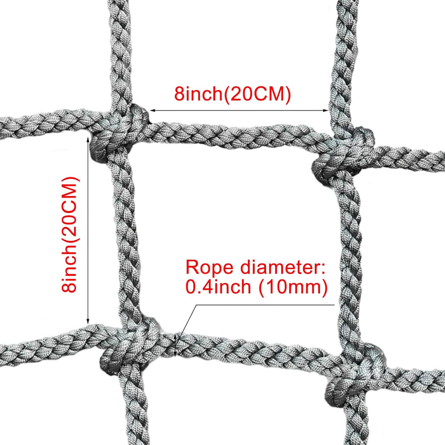 La nostra rete da arrampicata include 1 rete in corda e 1 corda di fissaggio per un utilizzo sicuro. Con un diametro della maglia di 20 cm e un diametro della corda di 10 mm, questa rete resistente supporta fino a 400 kg (881 libbre). Ideale per diverse attività, offre opzioni personalizzabili di lunghezza e larghezza, garantendo la massima soddisfazione per le vostre esigenze specifiche nelle avventure all'aria aperta o nei progetti di arrampicata. Rete da arrampicata leggera e altamente elastica: progettata per una facile installazione e conservazione, questa rete protettiva presenta un'eccellente elasticità, garantendo un rapido recupero della forma originale dopo piegature o allungamenti. Ideale per migliorare la sicurezza durante le attività all'aperto dei bambini, offre una protezione affidabile senza compromettere la praticità. Perfetta per case e parchi giochi. Utilizzo multiuso: ideale per proteggere balconi e ringhiere di casa, migliorare la sicurezza delle scale e fissare i corrimano. Perfetto per pareti di cortili, feste a tema, hotel, bar, librerie e ristoranti. Ottimo per decorazioni a soffitto e recinzioni di locali, così come per recinzioni di campi di allenamento di calcio e coperture isolanti per camion. Versatile e pratico per vari ambienti! Caratteristiche del cambio di colore: la corda da arrampicata che hai appena ricevuto è rosa o grigia, oppure rosa mescolata al grigio. Quando la rete viene esposta all'aria o alla luce solare, il suo colore cambia in grigio scuro. Più lungo è il tempo di esposizione, più scuro sarà il grigio. Scenari multiuso: possono essere utilizzati per proteggere balconi e ringhiere di casa, sicurezza delle scale, corrimano delle scale, balconi delle scale, muri del cortile, feste a tema in casa, hotel, bar, librerie, ristoranti, decorazioni per soffitti; recinzioni di locali; recinzioni di basi di allenamento di calcio; coperture isolanti per il carico di camion, ecc.