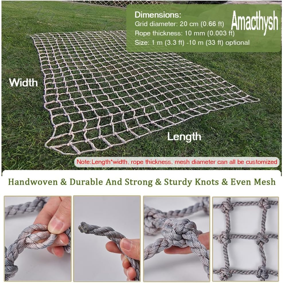 Dimensioni della rete in corda: diametro della corda in poliammide 10 mm, maglia 20x20 cm. Disponibile in vari spessori e lunghezze. Questa versatile rete in corda è ideale per attività all'aperto, barriere di sicurezza e uso in giardino. Personalizza lunghezza x larghezza, diametro della maglia e diametro della corda in base alle tue esigenze. Perfetta per casa, parchi giochi e altro ancora! Rete di protezione di sicurezza: la nostra rete in corda di poliammide è progettata per integrarsi perfettamente in qualsiasi ambiente, offrendo colori e stili versatili. Progettata per garantire durata e resistenza, questa rete protettiva eccelle nel salvaguardare il tuo spazio garantendoti la massima tranquillità. Ideale per diverse applicazioni, è una scelta affidabile per migliorare la sicurezza sia in ambienti interni che esterni. Prova l'esclusiva rete da arrampicata cangiante che si trasforma con l'esposizione alla luce solare. Inizialmente, la troverai nelle tonalità del rosa, del grigio o in una splendida miscela rosa-grigio. Col tempo, si evolve in un sorprendente grigio scuro, aggiungendo un tocco incantevole alla tua area giochi. Perfetta per le attrezzature da gioco all'aperto, questa rete resistente promuove il gioco attivo, valorizzando al contempo l'estetica del tuo giardino. Decorazione portaoggetti: i colori naturali e la raffinata tessitura della rete di sicurezza da arrampicata mostrano una bellezza semplice che si adatta a vari stili di ambiente. Puoi appenderla alla parete o al soffitto per riporre oggetti vari, aggiungendo anche un elemento personalizzato alla stanza. Nota: una delle caratteristiche principali della rete da arrampicata per parchi giochi è il cambio di colore. Il colore della rete in corda cambia con il variare del tempo di esposizione alla luce solare. Quando si riceve la rete in corda, è rosa o grigia o rosa mescolata al grigio, e alla fine virerà in grigio scuro alla luce del sole.