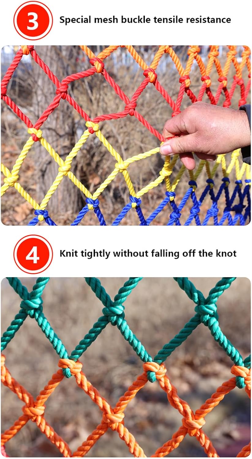 Materiale ad alta resistenza: la nostra rete da carico è realizzata in poliestere resistente, offrendo una soluzione leggera e resistente per un trasporto sicuro. Il vivace colore verde e il design esagonale migliorano la visibilità. Con uno spessore della corda di 6 mm e un diametro della maglia di 4,5 cm, sono disponibili diverse misure per la personalizzazione in base alle vostre esigenze. Perfetta per avventure all'aria aperta e per il trasporto. Corda rinforzata: la nostra rete di sicurezza è dotata di una corda spessa che aumenta la resistenza alla trazione, riduce il rischio di crepe sui bordi e migliora la resistenza all'usura. Questo design semplifica il collegamento della rete di sicurezza al palo di supporto, garantendo un'installazione sicura e affidabile per la tua area giochi all'aperto. Perfetta per migliorare la sicurezza e la durata del tuo giardino. Installazione semplice: questa rete di sicurezza per balconi è progettata per un'installazione semplice su balconi o ringhiere delle scale. Basta infilare la corda attraverso gli appositi fori nella rete resistente e avvolgerla attorno al corrimano o direttamente attorno alla ringhiera per una maggiore sicurezza. Assicurarsi che la corda della rete da arrampicata rimanga intatta per prestazioni ottimali. Ideale per migliorare la sicurezza mantenendo la visibilità. Ampia applicazione: la rete protettiva è adatta per scale, balconi, finestre, ringhiere, gabbie per animali domestici, terrazze esterne, recinzioni da giardino, asili nido, protegge i bambini, le piante, il pollame, ecc. Può anche essere utilizzata nei camion per evitare che il carico cada Facile installazione: la rete da balcone può essere installata su balconi o ringhiere per scale. Infilare la corda attraverso gli appositi fori nella rete e avvolgerla attorno al corrimano, oppure attraverso la robusta rete e avvolgerla direttamente attorno alla ringhiera. Non tagliare la corda della rete da arrampicata.