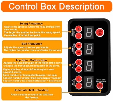 【Rete di raccolta palline integrata】: il robot da ping pong è una macchina da ping pong con una rete, dotata di una rete di raccolta palline e può contenere circa 300 palline da ping pong. Quando ti alleni da solo, puoi anche risparmiarti la fatica di raccogliere le palline 【Scatola di controllo】: il robot da ping-pong con rete ha una scatola di controllo regolabile, che può regolare la frequenza dello swing, la frequenza della palla e la velocità/forza del volo del servizio. In base alle tue esigenze, puoi dare alla palla un metodo di rotazione adatto a te 【9 tipi di impostazioni di rotazione】: il design multifunzionale della macchina per palline, è possibile impostare la rotazione e il punto di atterraggio. Il robot da ping pong può servire topspin, backspin, no spin, left spin, right spin, mixed spin, 9 tipi di palline rotanti con diverse frequenze e velocità 【Punto di atterraggio completo】: impostando i parametri e gli angoli della macchina automatica per il servizio da ping pong, puoi ottenere servizi con diverse velocità, angoli e direzioni di rotazione. La macchina per l'allenamento da ping pong ha una gamma di velocità della palla di 4-40 m/s 【Facile da installare】: posizionare il robot nell'area centrale vicino al bordo del tavolo o in qualsiasi punto dell'area del tavolo, allinearlo con la fessura di posizionamento, inserire il contenitore della sfera e assicurarsi che tutti e quattro i lati siano correttamente bloccati. Regolare la posizione