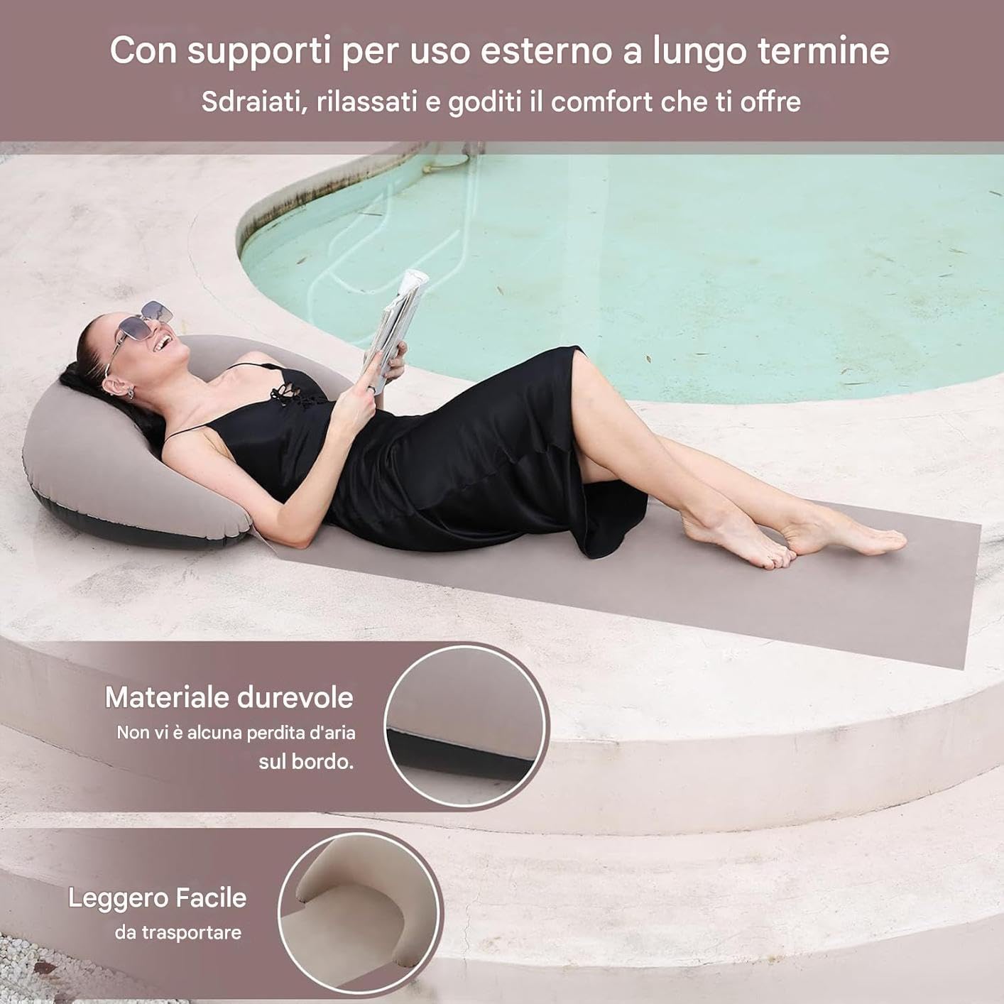 Relax Naturale: Ampie dimensioni offrono comodità perfetta per pic-nic e libero mantenendo praticità di trasporto per gite giornaliere o passeggiate nella natura senza rinunce Design Compatto: Forma minimizzata da ripiegato lo rende ideale per attività esterne, massimizzando la portabilità senza sacrificare spazio per le tue avventure in spiaggia Supporto Cervicale: Profilo sagomato sostiene naturalmente la curva del collo, trasformando ogni momento di pausa in un'esperienza confortevole ovunque all'aperto Tocco Vellutato Relax: Il materiale in PVC floccato garantisce una texture soffice che migliora il comfort durante lunghe permanenze all'aperto, per giornate in spiaggia con affidabile protezione da elementi esterni Comfort Ottimale all'Aperto: Tappeto progettato per piscina e spiaggia, adatto anche a campeggio e relax. Offre un comfort superiore per esperienze outdoor pratiche e funzionali, essenziale per chi cerca comodità in attività all'aria aperta.