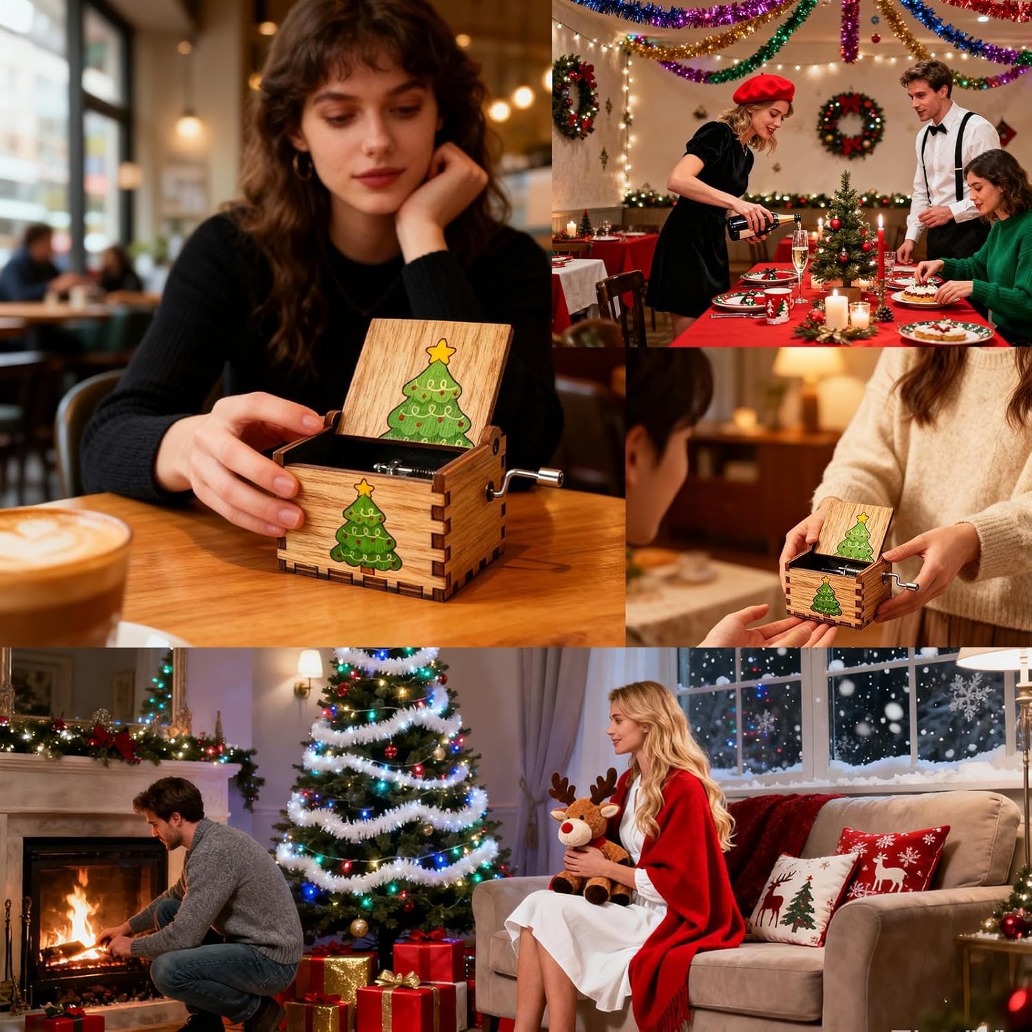 Uso Decorativo Flessibile: Questa Scatola Musicale Natalizia si adatta con precisione a tavoli da trucco, caminetti, scrivanie e librerie, diffondendo una calda vibrazione natalizia in ogni ambiente attraverso un design versatile che soddisfa esigenze decorative diversificate, assicurando una facile integrazione in spazi personali o professionali per elevare lo spirito delle feste con un tocco di magia e tradizione, senza richiedere installazioni complesse. Gioco Interattivo Festivo: La scatola musicale natalizia presenta la rotazione manuale e un attuatore laterale, offrendo un'esperienza audiovisiva coinvolgente che incoraggia il divertimento interattivo. È un'aggiunta perfetta per le attività gioiose delle feste per bambini, favorendo momenti di spensieratezza e partecipazione attiva in famiglia. Il design intuitivo invita i piccoli a immergersi nel gioco, rendendo ogni celebrazione un ricordo speciale e magico, senza bisogno di comples Rifinitura Multifase: La scatola musicale natalizia subisce multiple fasi di lavorazione per ottenere una finitura levigata e un aspetto raffinato, garantendo godimento a lungo termine. Si integra con le tradizioni natalizie grazie al suo charme senza e alla maestria artigianale, arricchendo le decorazioni festive con eleganza e stile, per un'esperienza d'uso piacevole e duratura. Creazione Gioia Natalizia: La scatola musicale di Natale vanta un'estetica tradizionale natalizia che aumenta l'eccitazione e la gioia del Natale, generando un ambiente festivo caldo e vivace. Ideale per decorare la casa o per regalare ai propri , questa scatola musicale crea un'atmosfera accogliente e festosa che rende ogni momento speciale e memorabile, diffondendo felicità in ogni angolo con il suo design natalizio. Il Regalo Incantevole: Caratterizzata da melodie deliziose, la Scatola Musicale Decorativa per Natale migliora le occasioni festive come le feste e i compleanni, offrendo un modo significativo per connettersi con le persone care attraverso il , aggiungendo eleganza a qualsiasi ambiente celebrativo e creando ricordi preziosi che enfatizzano la gioia e la condivisione in ogni momento speciale.
