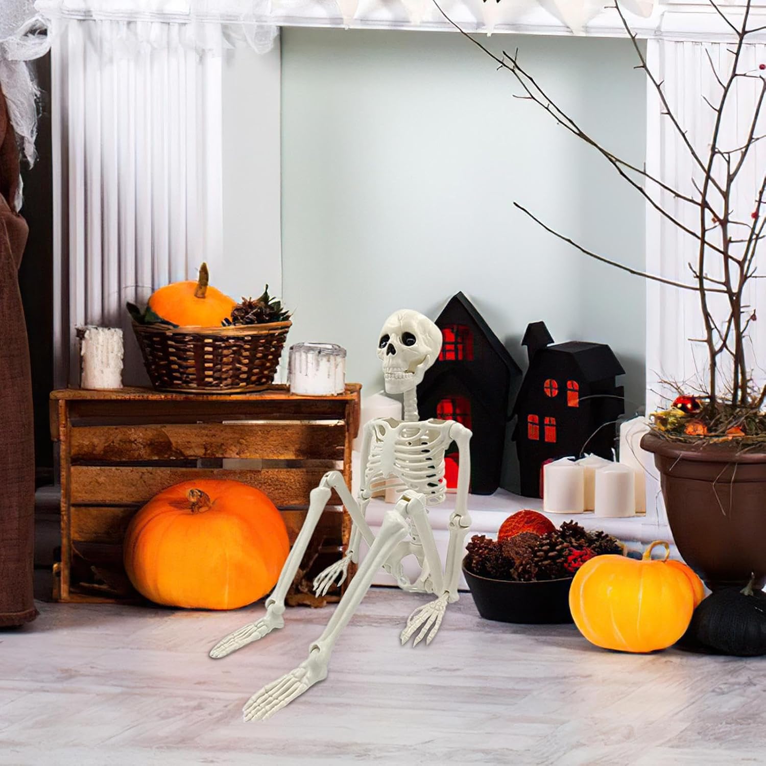 Design creativo della scena: supporta la personalizzazione dello stile della stanza e l'uso multiplo, perfettamente compatibile con set cinematografici, arrangiamenti fotografici e vetrine di vendita al dettaglio Immagini dettagliate: ottieni effetti realistici con questo scheletro. Ottimizzato per le mostre horror grazie alla silhouette inquietante e alla compatibilità con altre azioni. Migliora autenticamente l'atmosfera in qualsiasi ambiente. Resistenza ambientale: garantisce resistenza a lungo termine agli influssi ambientali e perfetta resistenza ai graffi con un vantaggio di peso simultaneo per un utilizzo versatile in diversi ambienti. Struttura ossea realistica: la lavorazione anatomicamente accurata e la struttura superficiale realistica evidenziano motivi spaventosi, l'attenta scultura ossea ricrea un vero aspetto scheletrico. 5. Giunti mobili: con giunti regolabili, questo scheletro offre libertà di movimento e regolazione dinamica per visualizzazioni straordinariamente versatili in qualsiasi scena spettrale