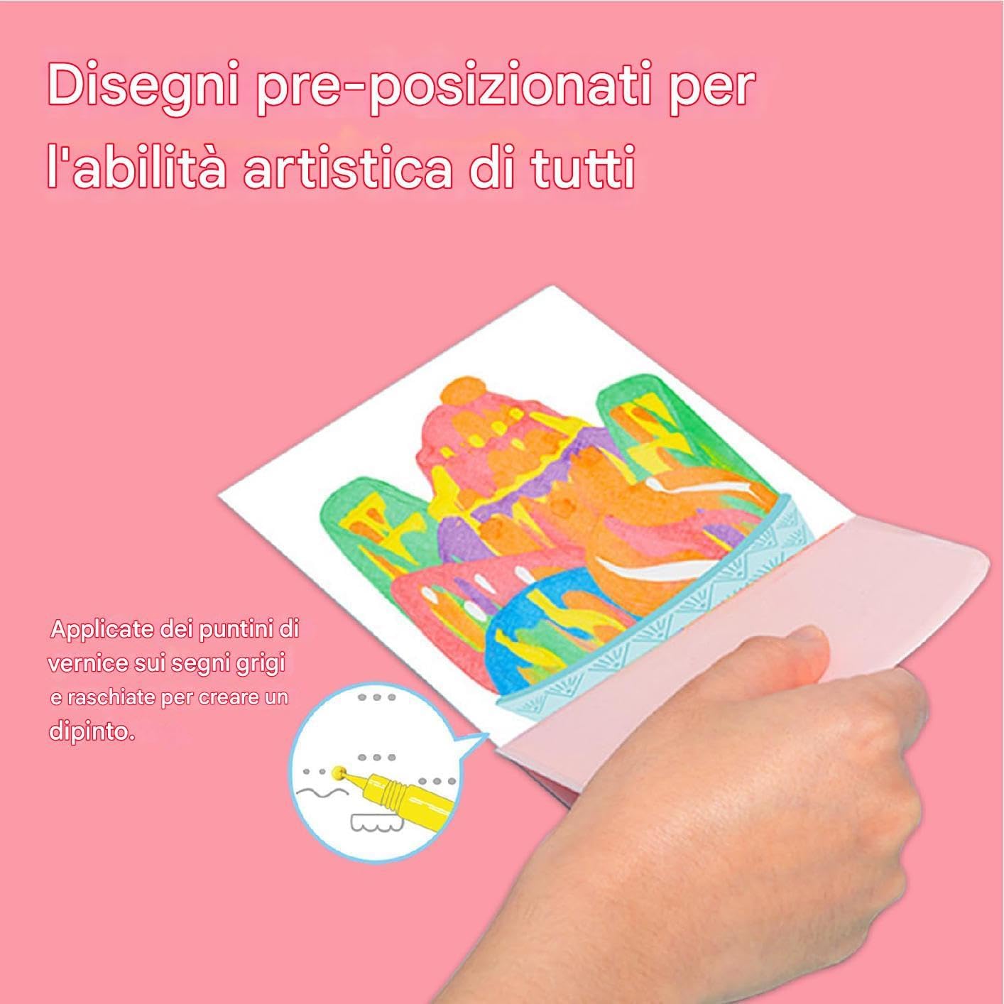Ideal Educational Gift Choice: A wonderful gift for birthdays holidays or classroom rewards this scratch painting set inspires creative learning and hands-on artistic play promoting focus artistic expression and fine motor skills in kids Perfect for Kids Ages 6 and Up: Designed for young artists this art set age-appropriate creative exploration making it suitable for school projects home crafts party favors or quiet indoor fun during weekends and holidays Includes Squeegee Painting Tools: Comes with practical squeegee and scratch tools designed for smooth easy use by small hands allowing children to create unique textures shapes and color blends for each art piece they design Easy and -Free Activity: Each sheet features a special coating that reveals bright colors underneath when scratched making it a clean and enjoyable activity that keeps kids engaged without the need for paint or water cleanup Creative Fun: This painting paper set encourages children to explore colors and patterns through scratching and dot painting helping develop imagination hand-eye coordination and creativity while producing beautiful postcard-style artwork