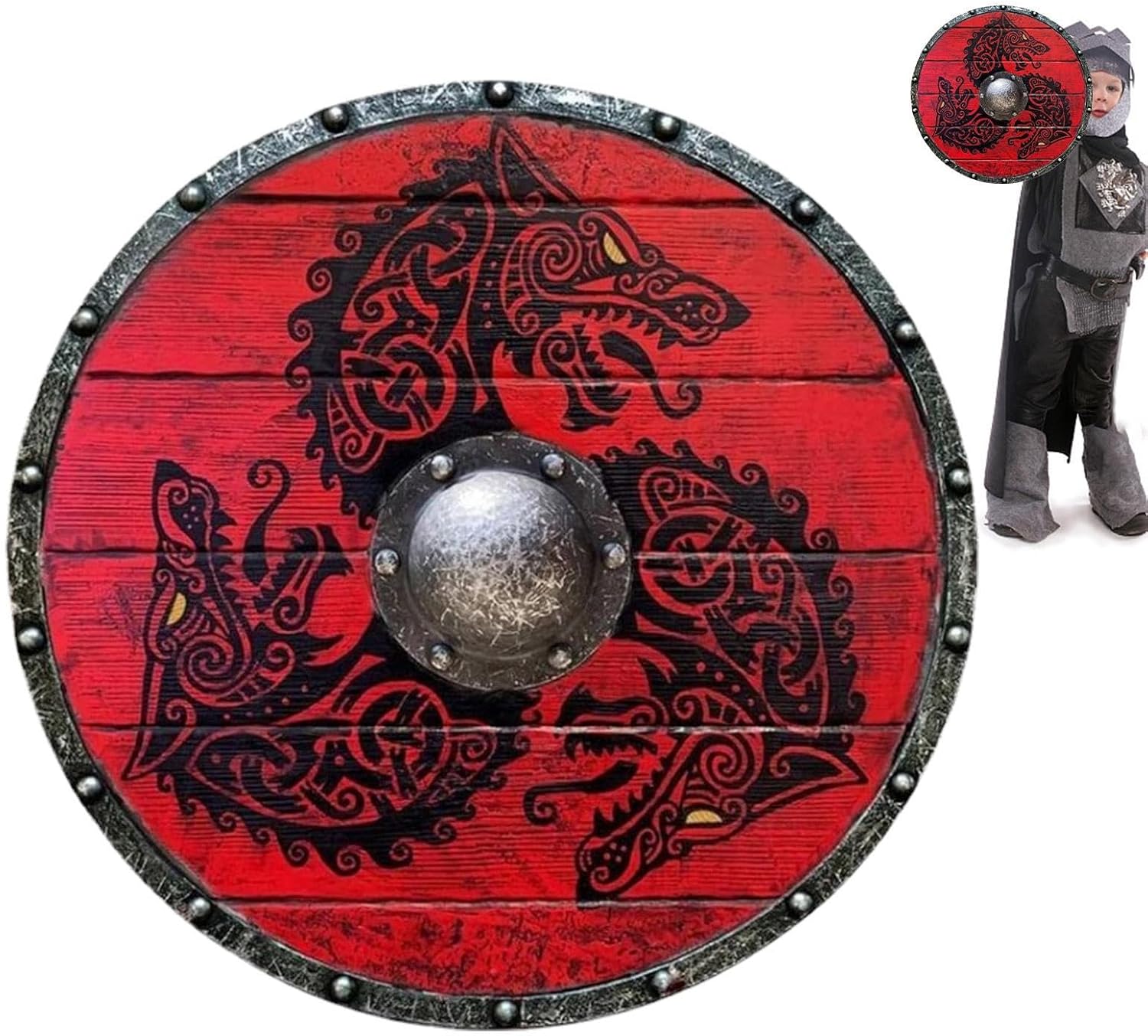 Design autentico: realizzato in legno di qualità eccellente, questo antico scudo per cosplay mette in mostra un design autentico con antichi emblemi decorativi medievali. La sua robusta costruzione assicura la durata, rendendola duratura e pratica per gli appassionati di cosplay. Ottima fattura: concediti il regno medievale con il nostro antico scudo artigianale per il cosplay, con piena funzionalità e grande comfort. Fatto a mano con la squisita lavorazione, trasuda un'autentica aura del vecchio mondo creando una classica atmosfera medievale per elevare il tuo gioco di ruolo. Design multifunzionale: trasformare qualsiasi spazio insipido in un paradiso a tema antico con questo scudo versatile. Migliora le pareti, le recinzioni, le stanze o le imprese o utilizzalo come accessorio cosplay indispensabile per una serie di eventi in maschera. Cosplay Must-Have: sapientemente realizzato con materiali eccellenti, il suo design realistico e la consistenza lo rendono indispensabile per l'abbigliamento o la collezione di giochi di ruolo. L'ottimo per uomini e ragazzi che adorano la e la storia norrene; Un'idea regalo perfetta. Facile da trasportare: questo antico scudo per il cosplay è progettato per essere leggero e portatile, in modo da poterlo trasportare facilmente in e goderti le tue avventure di gioco. Ha anche eccellenti prestazioni ammortizzate, rendendolo sopportabile