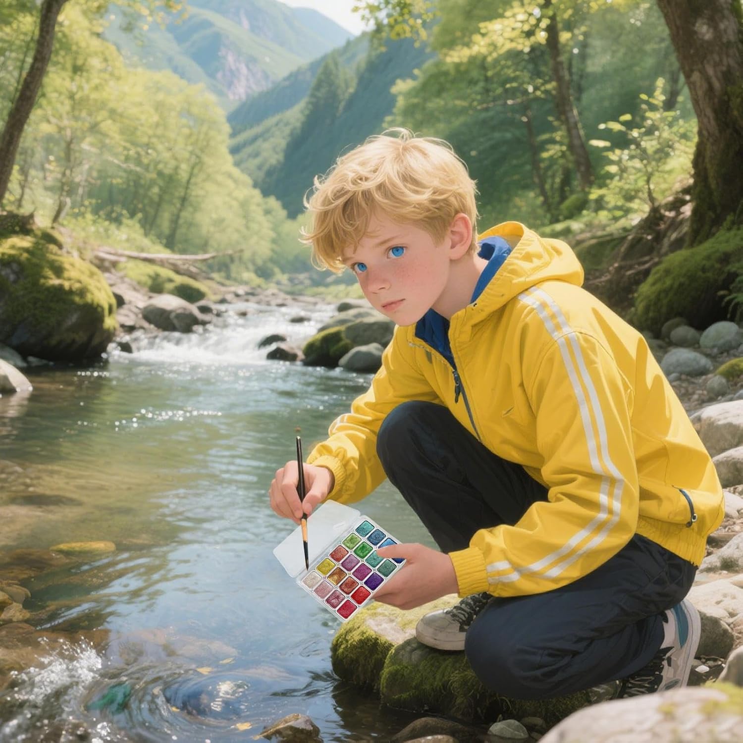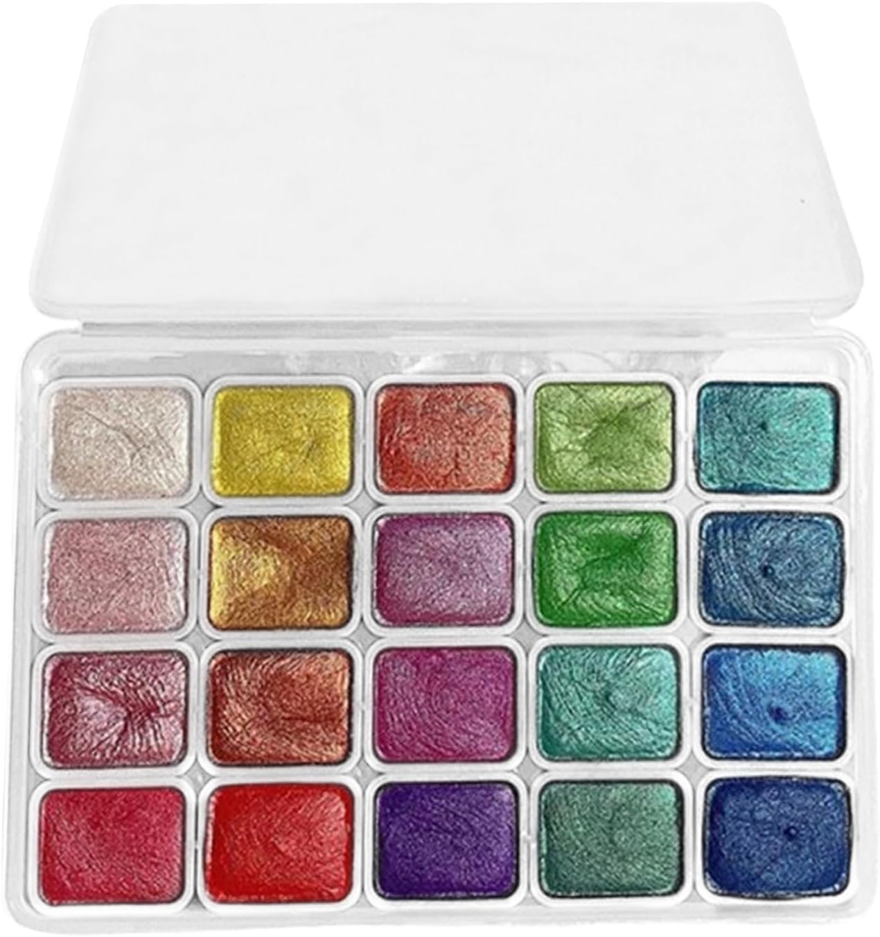 Diversità Cromatica: Combinazione bilanciata di 20 pigmenti standard e speciali per creazioni illustrative, decorazioni artistiche e espressione creativa illimitata Dinamica Creativa Potenziata: Migliora la tua arte con colori intensi e vivaci arricchiti da effetti glitter, garantendo resa cromatica affidabile e supporto per complessa profondità multilivello per risultati pittorici ottimizzati in ogni realizzazione. Collezione Ispirazionale: Tutto l'occorrente per realizzare opere ad acquarello fin dal primo utilizzo, soluzione pratica per organizzare momenti creativi condivisi con risultati soddisfacenti Set da viaggio: Concepito per la massima portabilità, questo set acquarelli unisce forma leggera a scomparti interni sicuri e design antiperdite, garantendo facilità d'uso e conservazione durante gli spostamenti Adattabilità Creativa: Soluzione perfetta per progetti di journaling e biglietti fatti a mano, compatibile con mezzi secchi e ad acqua su molteplici materiali come carta e tessuti per massima flessibilità creativa