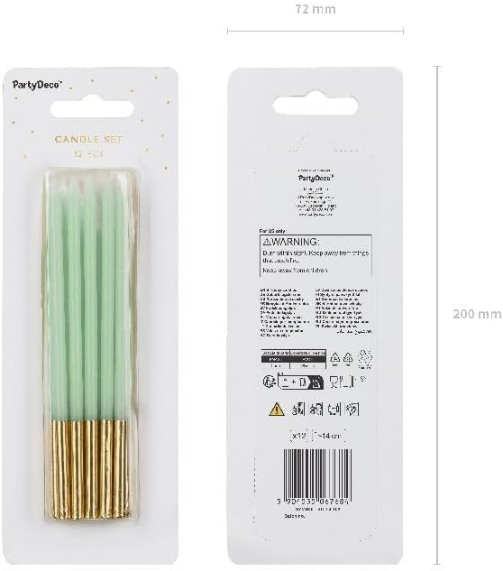 Set da 12 Candele Candeline compleanno colore VERDE CHIARO E ORO - 14 cm