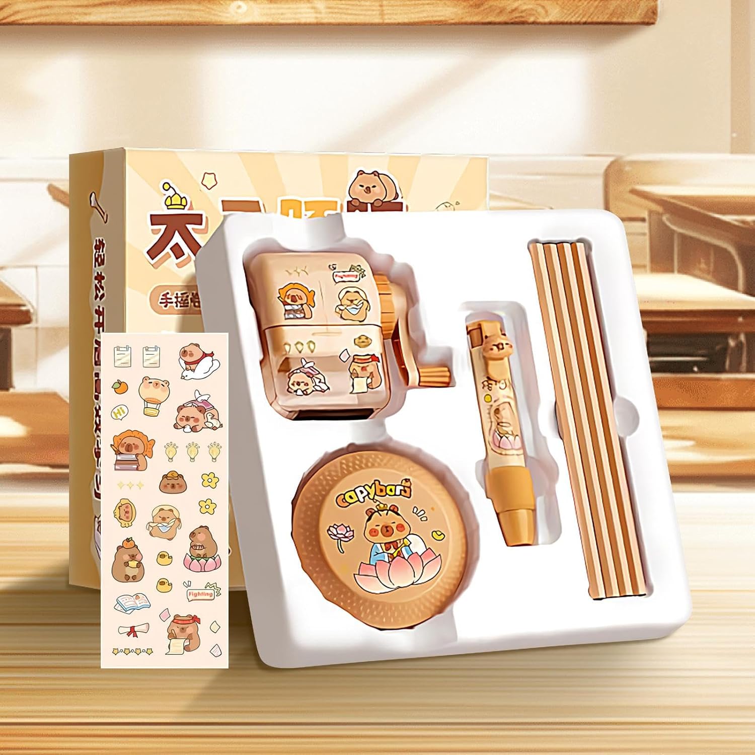 Organizzatore Scrivania Funzionale: Dotato di aspirabriciole elettrico per mantenere l'ordine, temperamatite manuale a manovella per matite affilate e gomme dalla presa comoda per svolgere attività di scrittura in modo efficiente Compagno Ideale: Questo set di cancelleria include accessori come un aspiratore elettrico e temperamatite che migliorano l'efficienza nello studio mantenendo l'ordine e supportando vari tipi di matite senza sforzo Materiali Robusti: La struttura in PP ad alta resistenza assicura durabilità prolungata anche con utilizzo intensivo, soluzione responsabile per esigenze quotidiane sicure Divertimento Assicurato: Porta sorrisi a bambini e ragazzi con questo set cancelleria , creato per esprimere cura in occasioni come compleanni, festività stagionali o celebrazioni di Capodanno Tema Cartone Adorabile: Design accattivanti di capibara e panda un tema divertente che cattura l'attenzione e incoraggia la curiosità nelle attività educative per l'infanzia