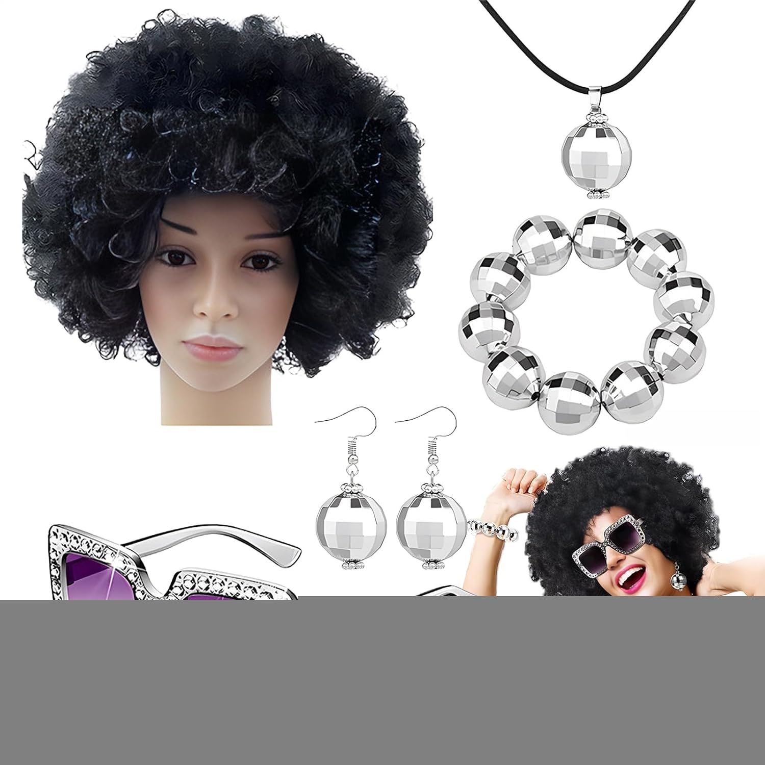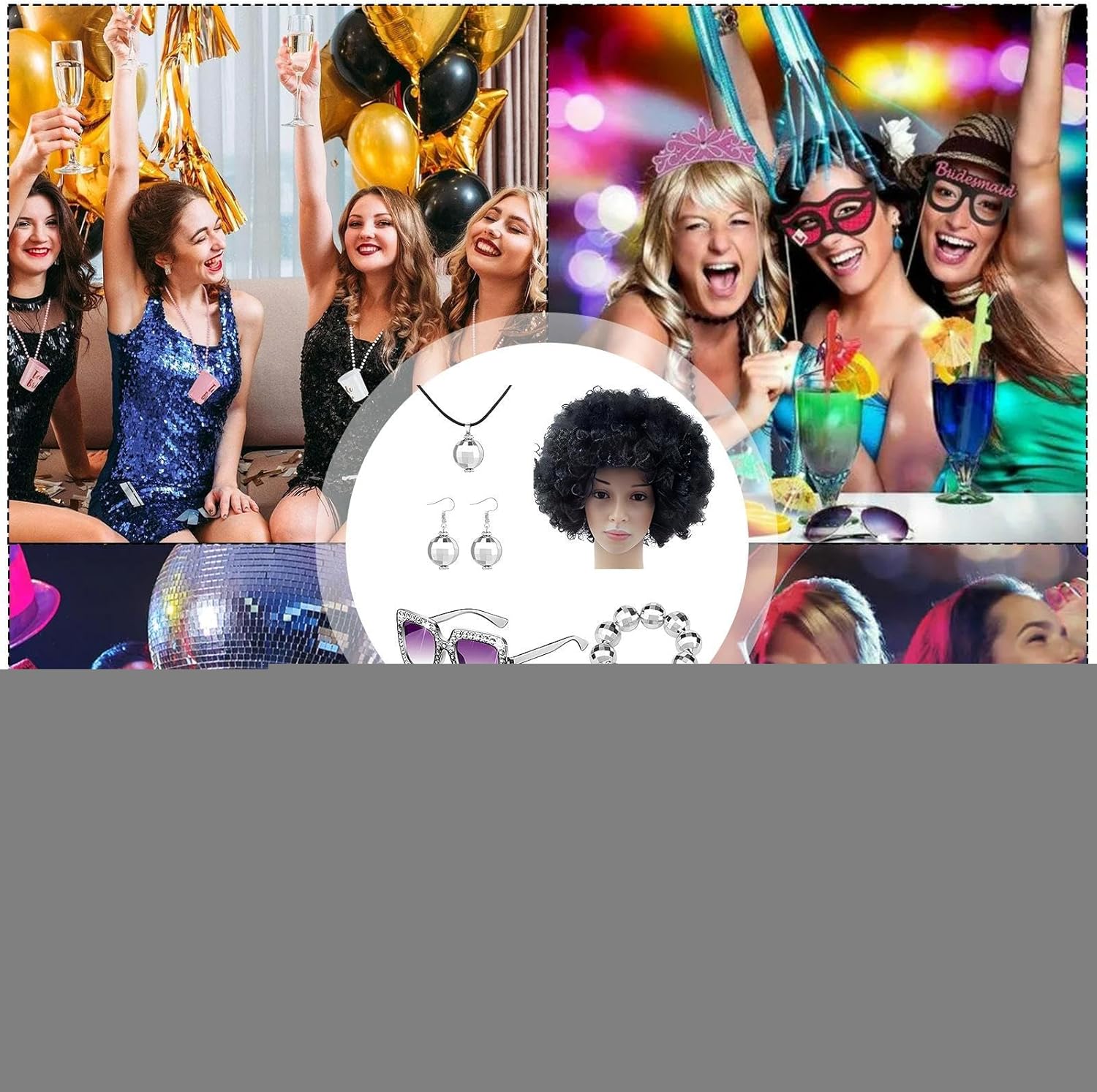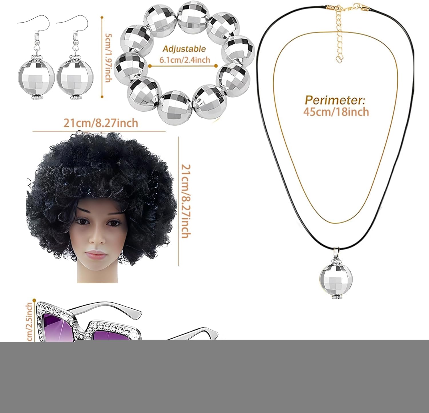 Descrizione prodotto Questo set include una splendida collana con palla da discoteca e 1 paio di orecchini che sicuramente brilleranno sotto qualsiasi palla da discoteca. Perfetti per qualsiasi festa in discoteca, i nostri gioielli sono caratterizzati da una forte lucentezza e una luce brillante che attireranno l'attenzione di tutti. Inoltre, è un regalo squisito per l'amante degli anni '70 nella tua vita. Specifica: Nome: set di da discoteca da donna degli anni '70 Materiale: fibra sintetica + PP Dimensioni del prodotto: come mostrato nell'immagine Peso: circa 230 g Lista imballaggio: Capelli corti e ricci anni '70 x1 Orecchini con sfera da discoteca x1 paio Collana con palla da discoteca x1 Bracciale con palla da discoteca x1 Occhiali da sole con montatura x1 Nota: 1. A causa dei diversi effetti di visualizzazione e di illuminazione, il colore effettivo del prodotto potrebbe essere leggermente diverso dal colore mostrato nell'immagine. Grazie! 2. A causa della misurazione manuale, è consentita una deviazione di misurazione di 1-3 cm. Avviso di sicurezza Non applicabile