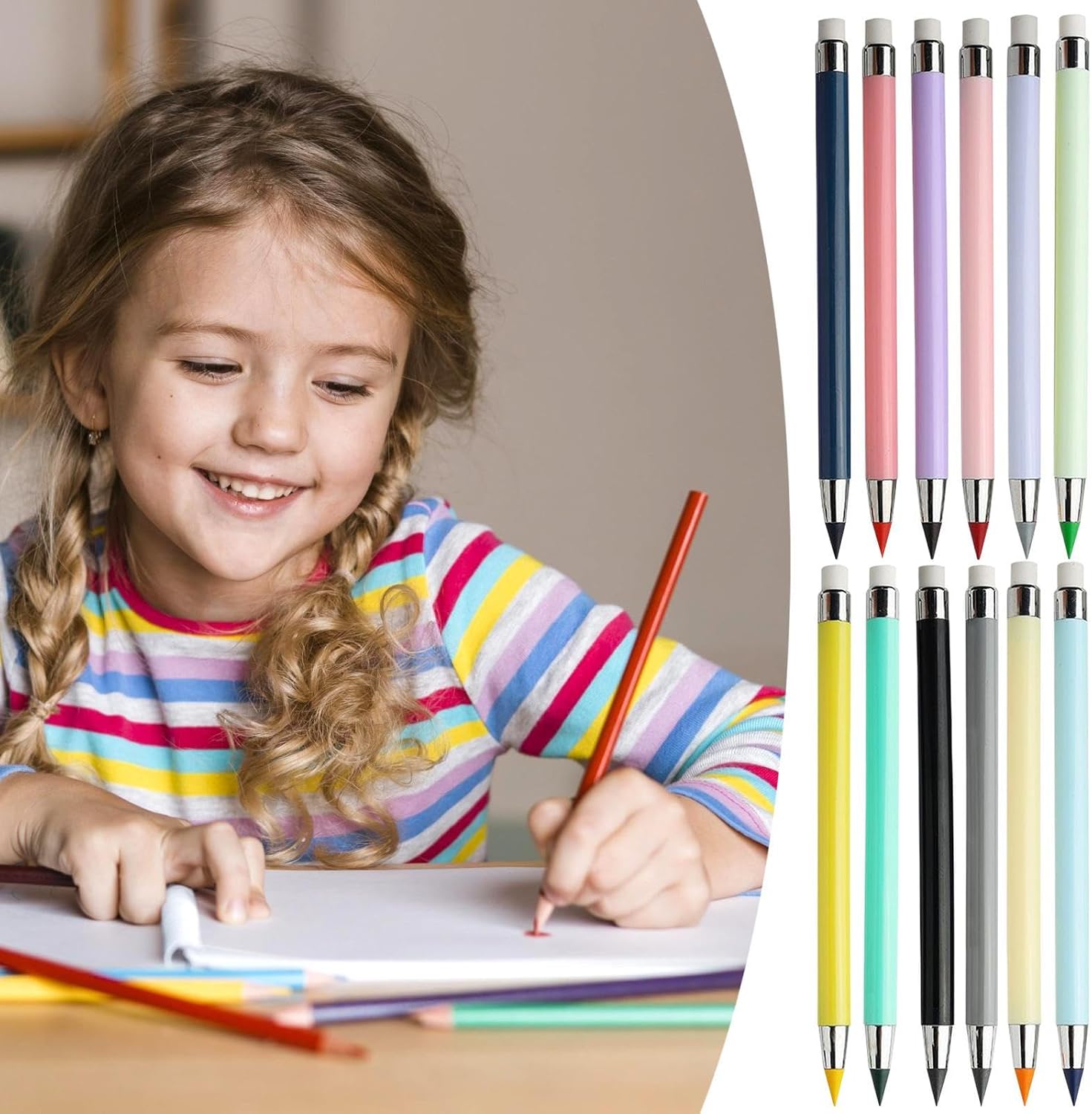 Nessuna Temperatura Necessaria: Offre scrittura uniformemente senza bisogno di temperare, riducendo la manutenzione e permettendoti di dedicarti completamente alla tua espressione creativa Mani Sempre Pulite: Grazie a componenti sicuri e inodori, riducono il trasferimento di polvere di grafite durante l'uso senza impurità o odori indesiderati Effetto Calmante: Combinazione di 12 nuance soffici offre un'esperienza visiva serena, ideali per tecniche creative che richiedono colori tenui e naturalmente ispiratori per l'espressione artistica Utensile multiuso: Adatte a molteplici attività creative, queste matite colorate garantiscono prestazioni costanti per annotazioni, disegni e idee artistiche con adattabilità a varie applicazioni Resistenza Affidabile: Costruite per resistere all'uso quotidiano, la minera di queste matite colorate resiste all'usura, garantendo un utilizzo prolungato e riducendo la necessità di sostituzioni frequenti durante le sessioni creative